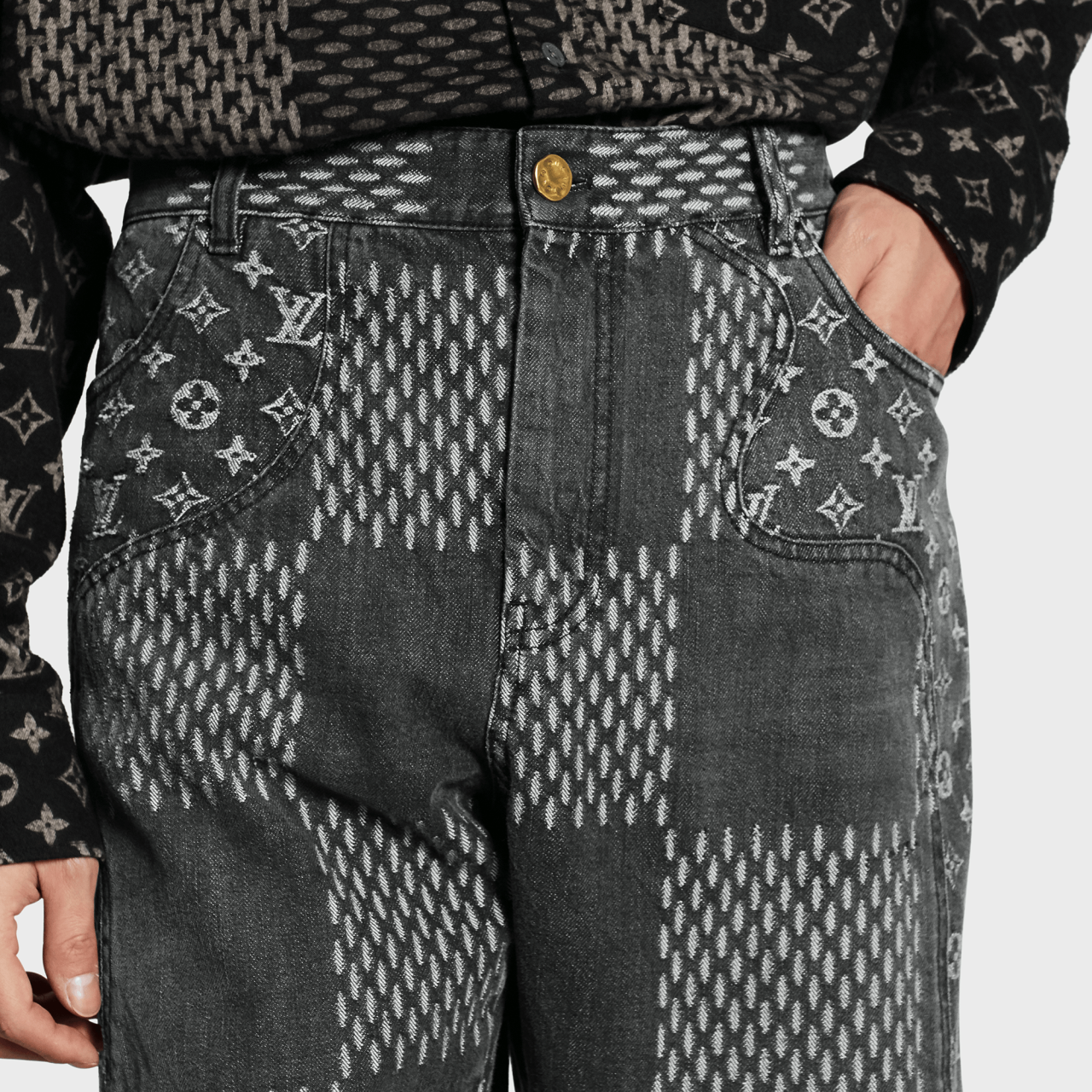 プレタポルテにも、「旅」という Louis Vuitton の伝統的なテーマをもとにデニムウェアを中心としたルックを披露。モノグラム・モチーフとダミエ・パターンが、カットアウト、刺繍、プリントなど様々な手法でシャツ、ジャケット、パンツ、財布などのアイテムに落とし込まれている。