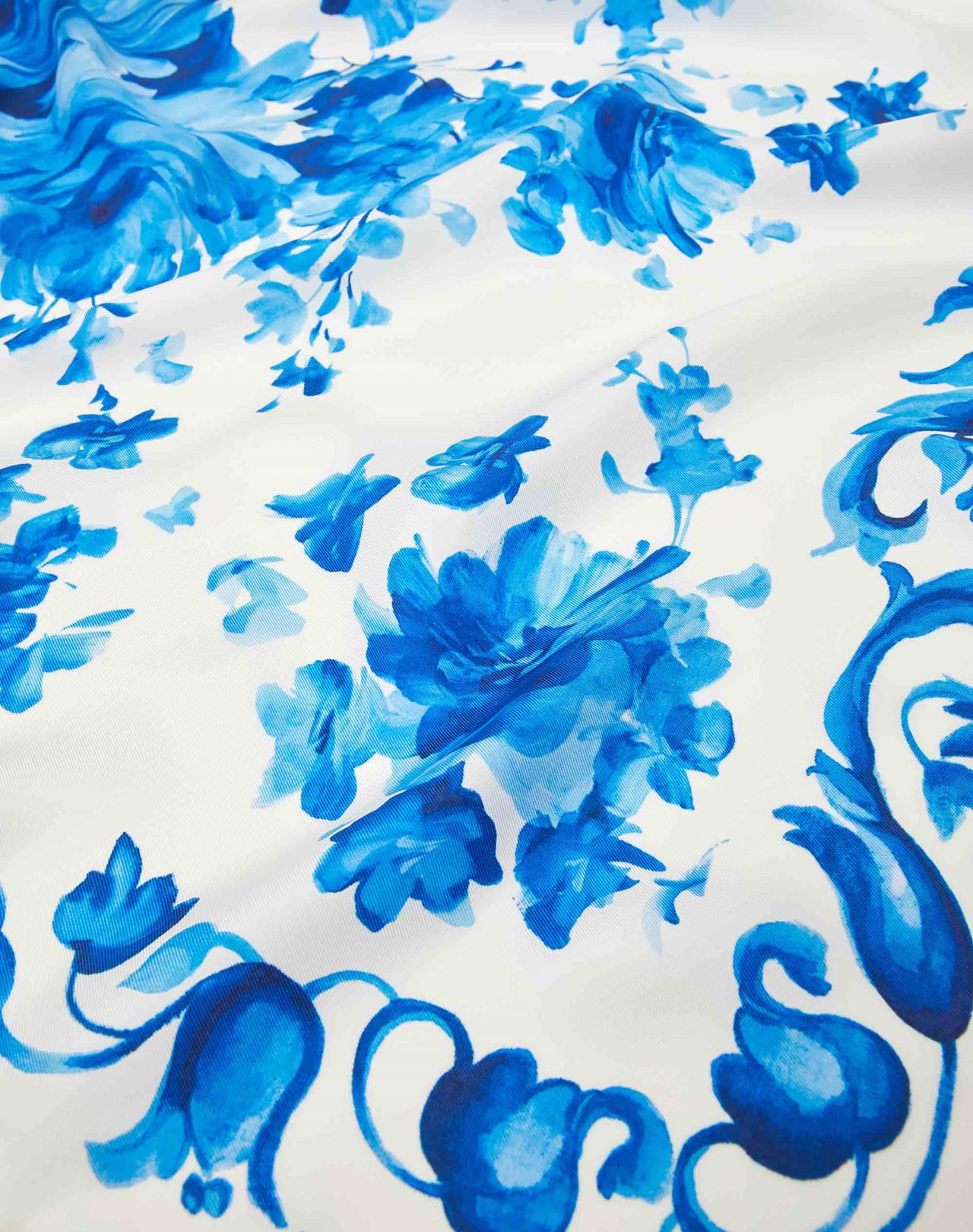 「Valentino Bluegrace」は、16世紀に起源を持つ「デルフト」と呼ばれるオランダの陶器からインスピレーションを得たシリーズ。陶器を彩るそのネイビーブルーのモチーフとメゾンの関係は長く、最初に登場したのは1968-69年秋冬オートクチュールコレクションまで遡る。その後、2013-14年秋冬コレクションでも再解釈されて登場している。