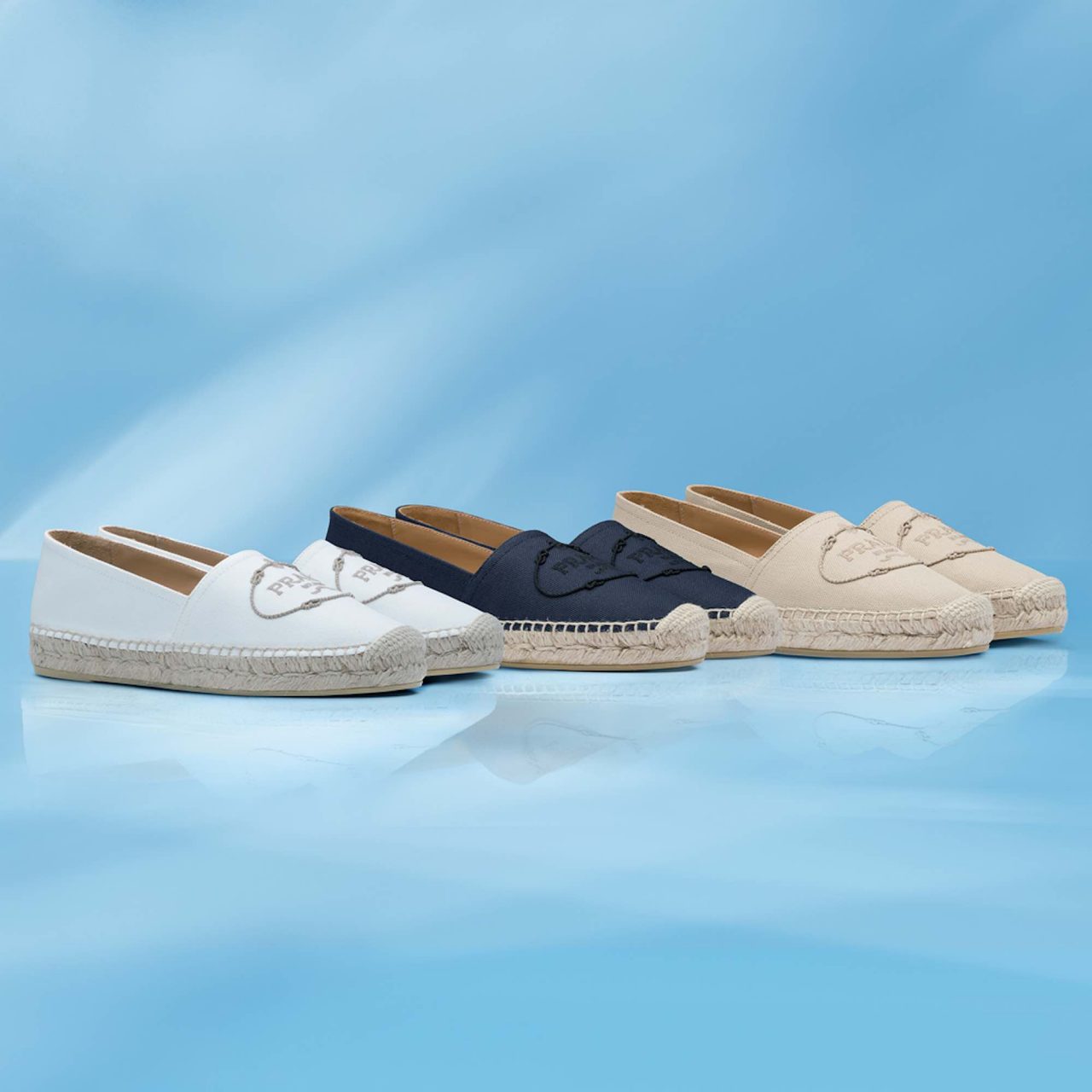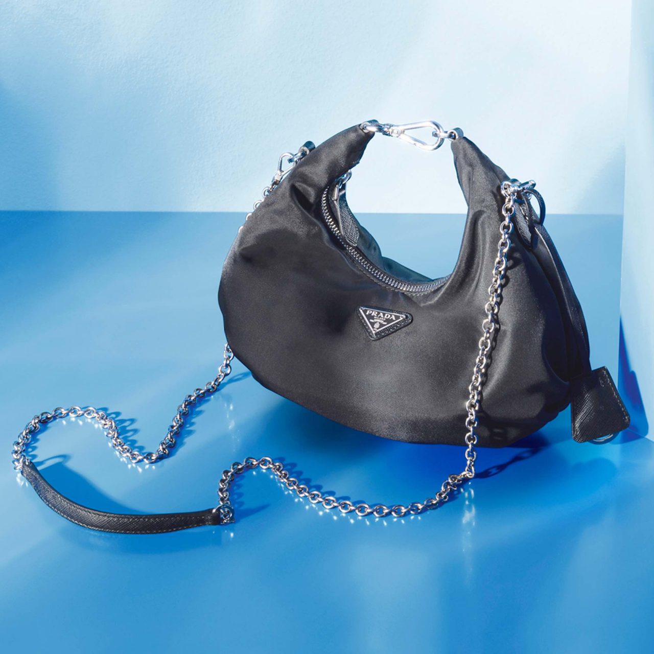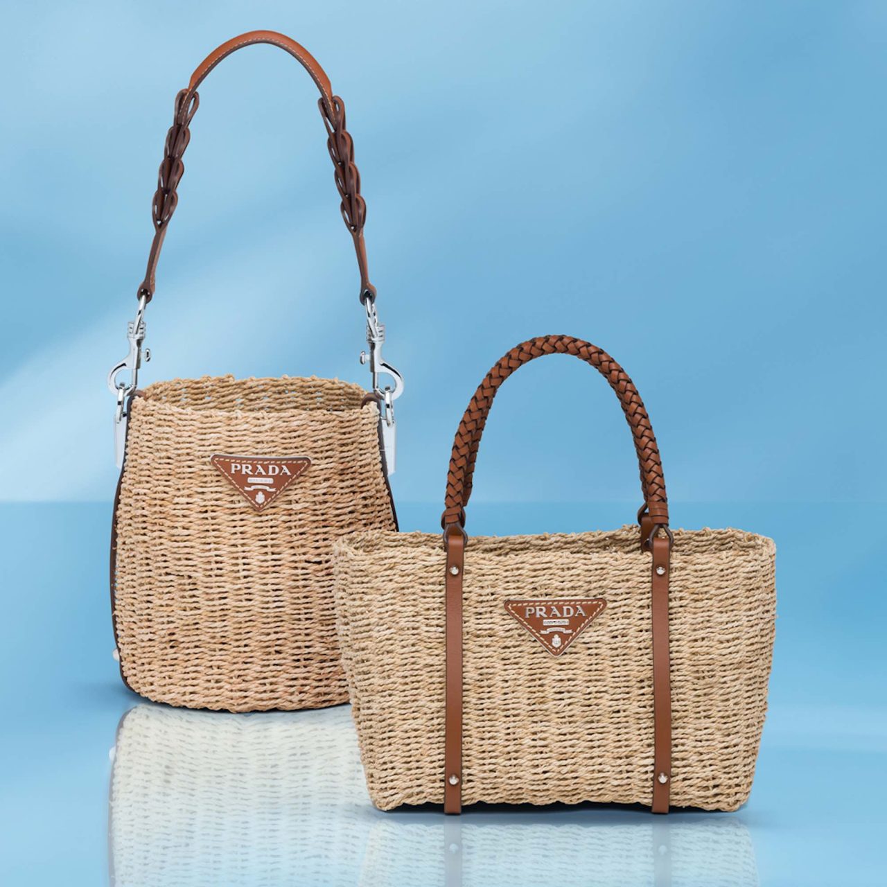 ポップアップストアでは、Prada レディスプレフォールコレクションより厳選されたアイテムがお目見え。注目したいのが国内先行で発売される「プラダ リエディション」バッグの新作。Prada のアイコニックなナイロン素材を用いて過去のアーカイブから着想を得てデザインされたバッグで、丸みのあるシルエットとトライアングルロゴが特徴的。両端をフックで繋ぐとハンドルバッグに、付属のチェーンストラップを取り付けるとショルダーバッグとして2WAYで楽しむことができるのも嬉しい。他にもストローバッグやスニーカー、エスパドリーユなど夏らしいアイテムが揃う。