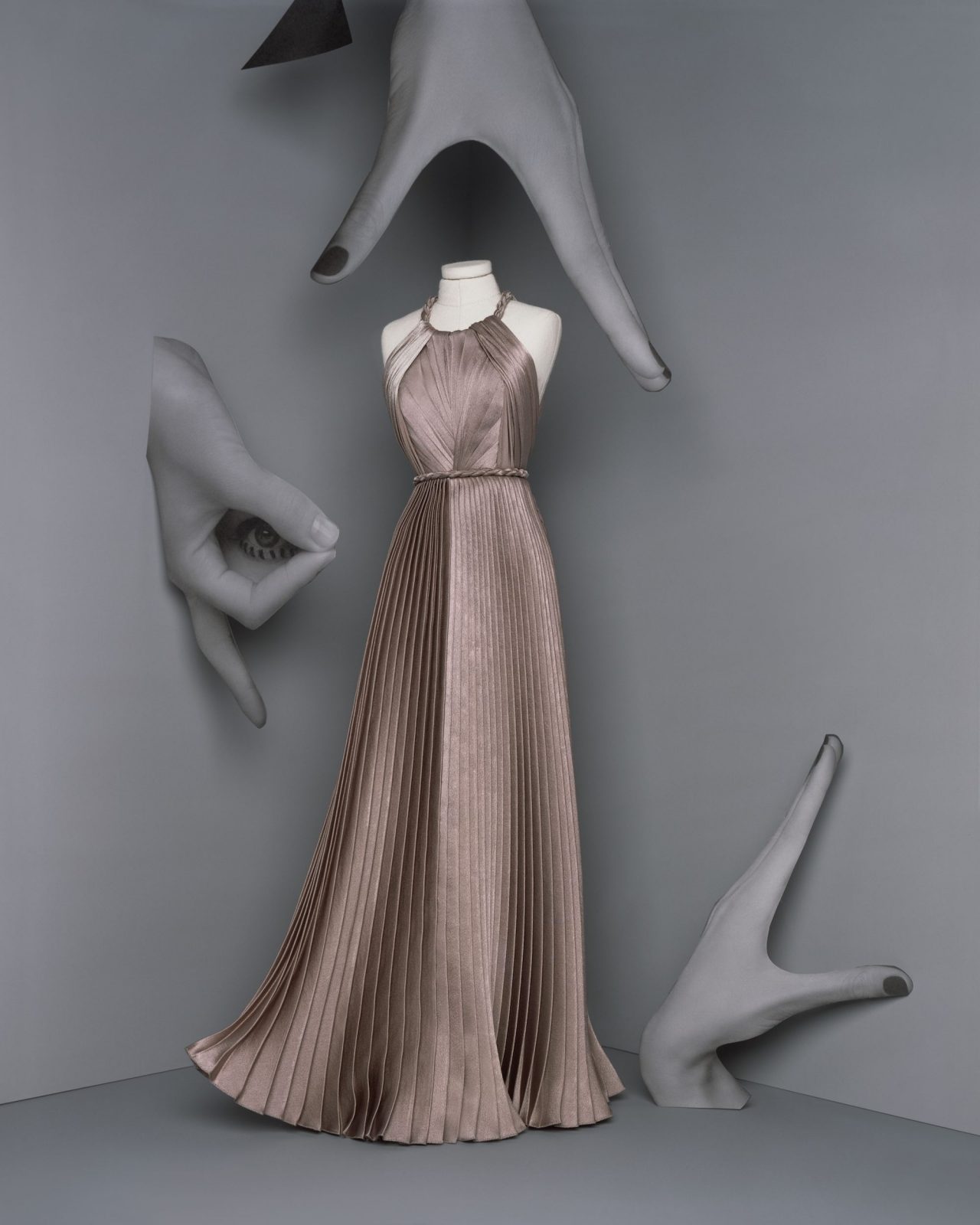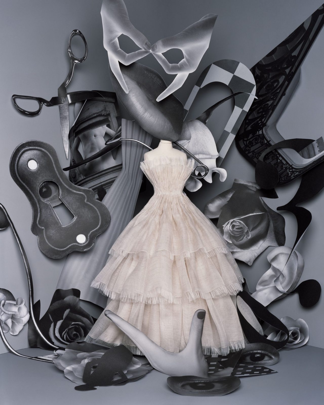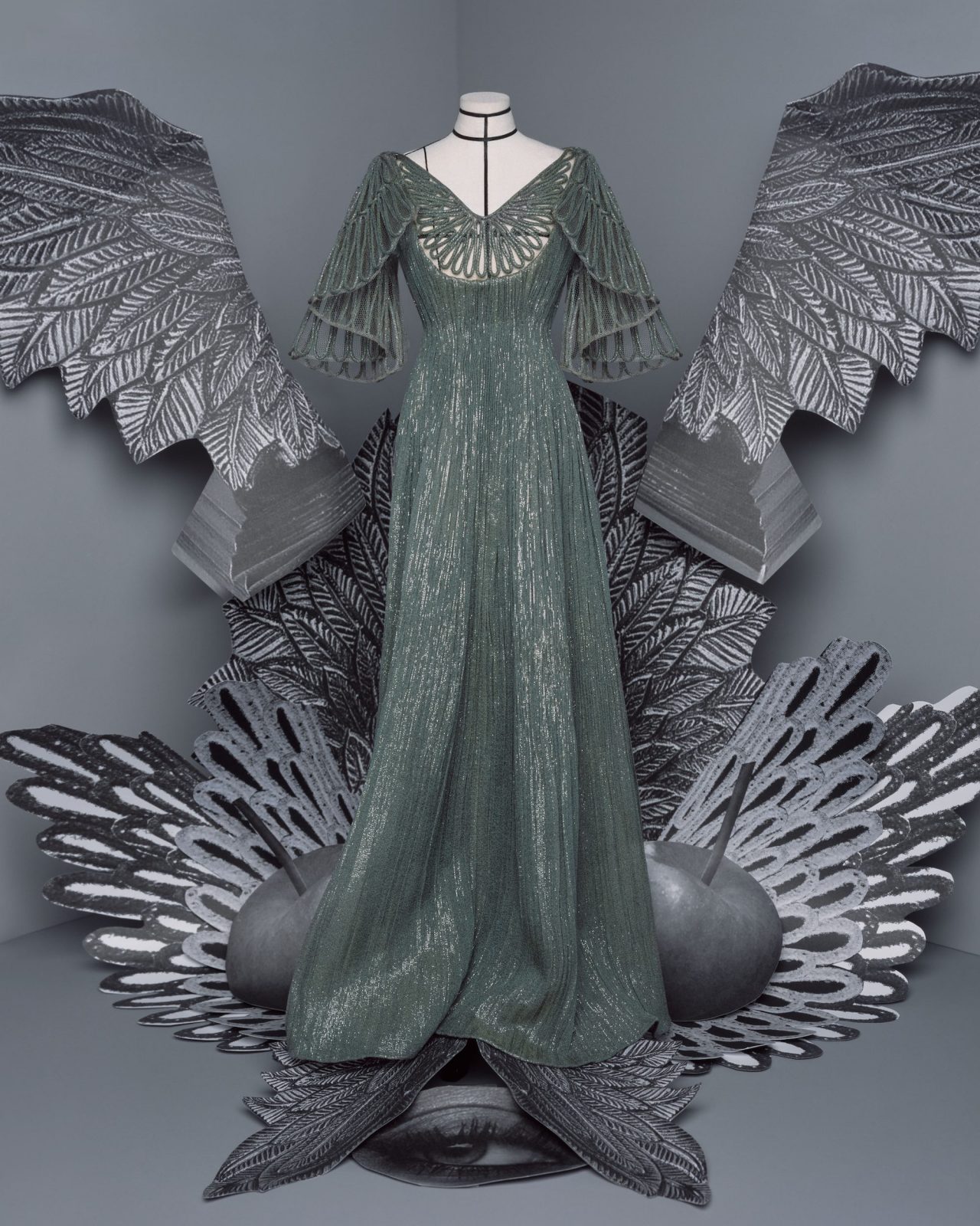 本コレクションで Maria Grazia Chiuri が目を向けたのは、Lee Miller (リー・ミラー) や Dora Maar (ドラ・マール)、Jacqueline Lamba (ジャクリーヌ・ランバ) といったアーティストたちの作品。いずれもその美しさで「ミューズ」とたとえられながら、それぞれのシュールレアリスムの作品によってその役割から脱却した力強い女性たちだ。そうした姿勢を反映させたコレクションもまた、神々しいほどの美しさをたたえたドレスの数々にシュールレアリスティックなタッチが加えられている。