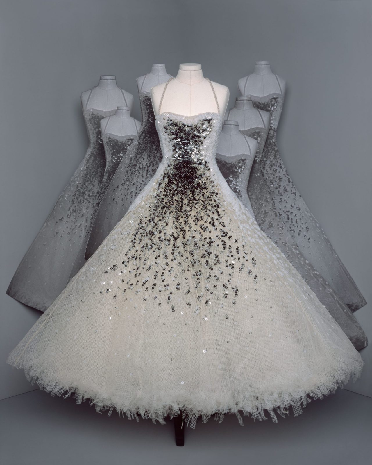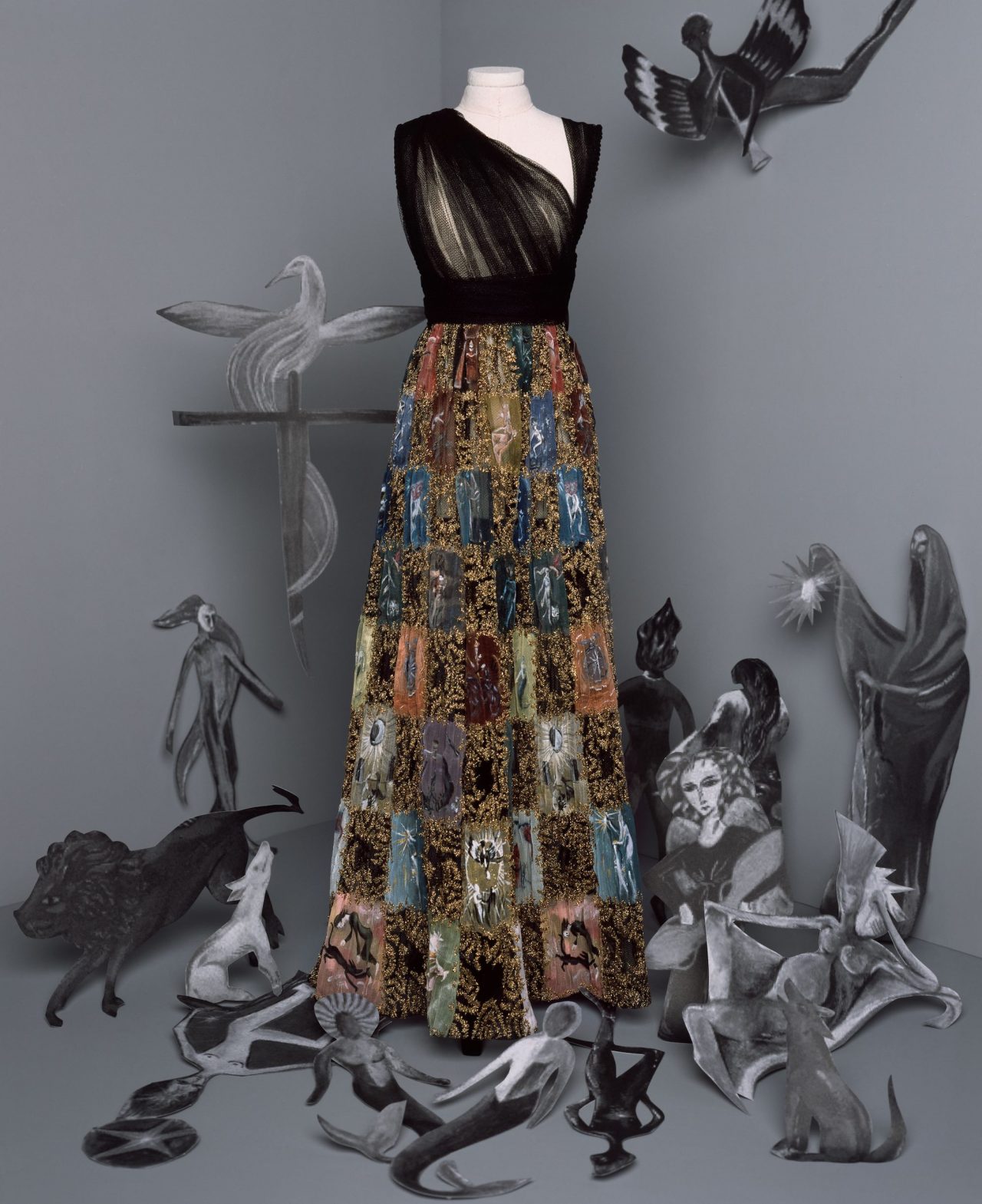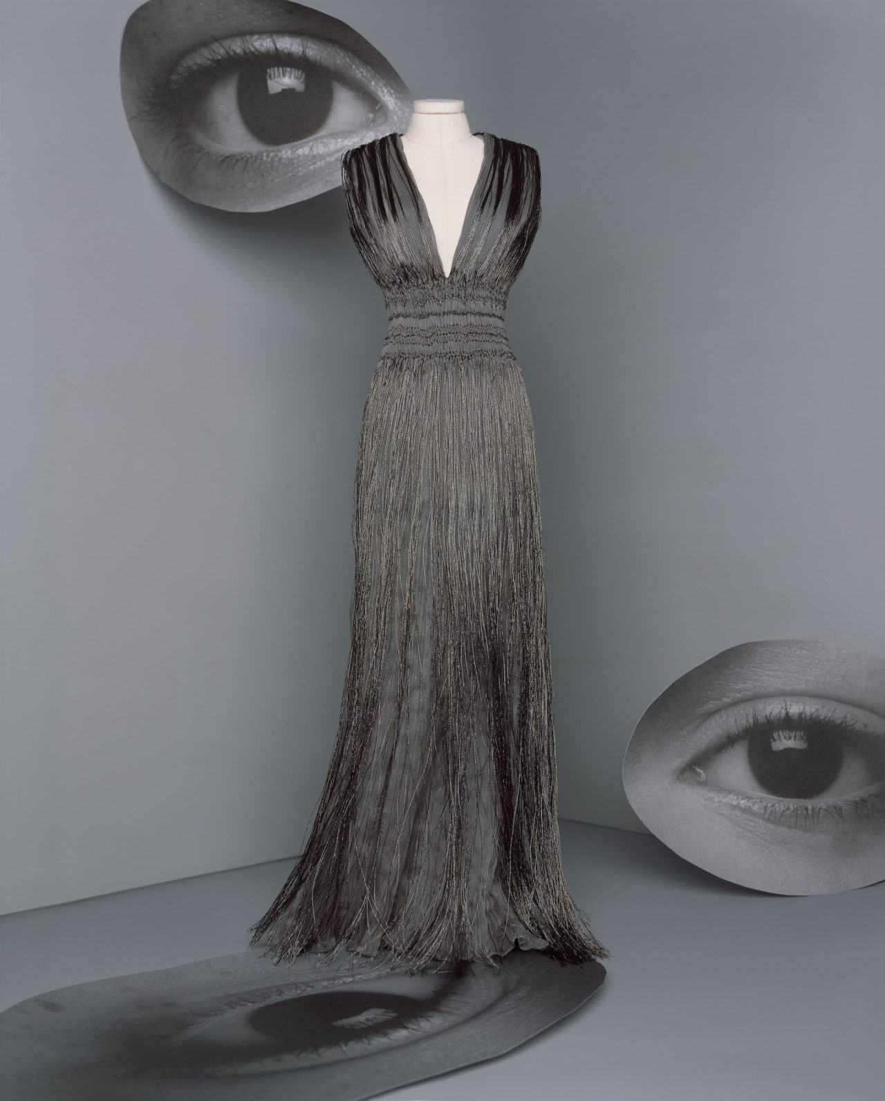 本コレクションで Maria Grazia Chiuri が目を向けたのは、Lee Miller (リー・ミラー) や Dora Maar (ドラ・マール)、Jacqueline Lamba (ジャクリーヌ・ランバ) といったアーティストたちの作品。いずれもその美しさで「ミューズ」とたとえられながら、それぞれのシュールレアリスムの作品によってその役割から脱却した力強い女性たちだ。そうした姿勢を反映させたコレクションもまた、神々しいほどの美しさをたたえたドレスの数々にシュールレアリスティックなタッチが加えられている。