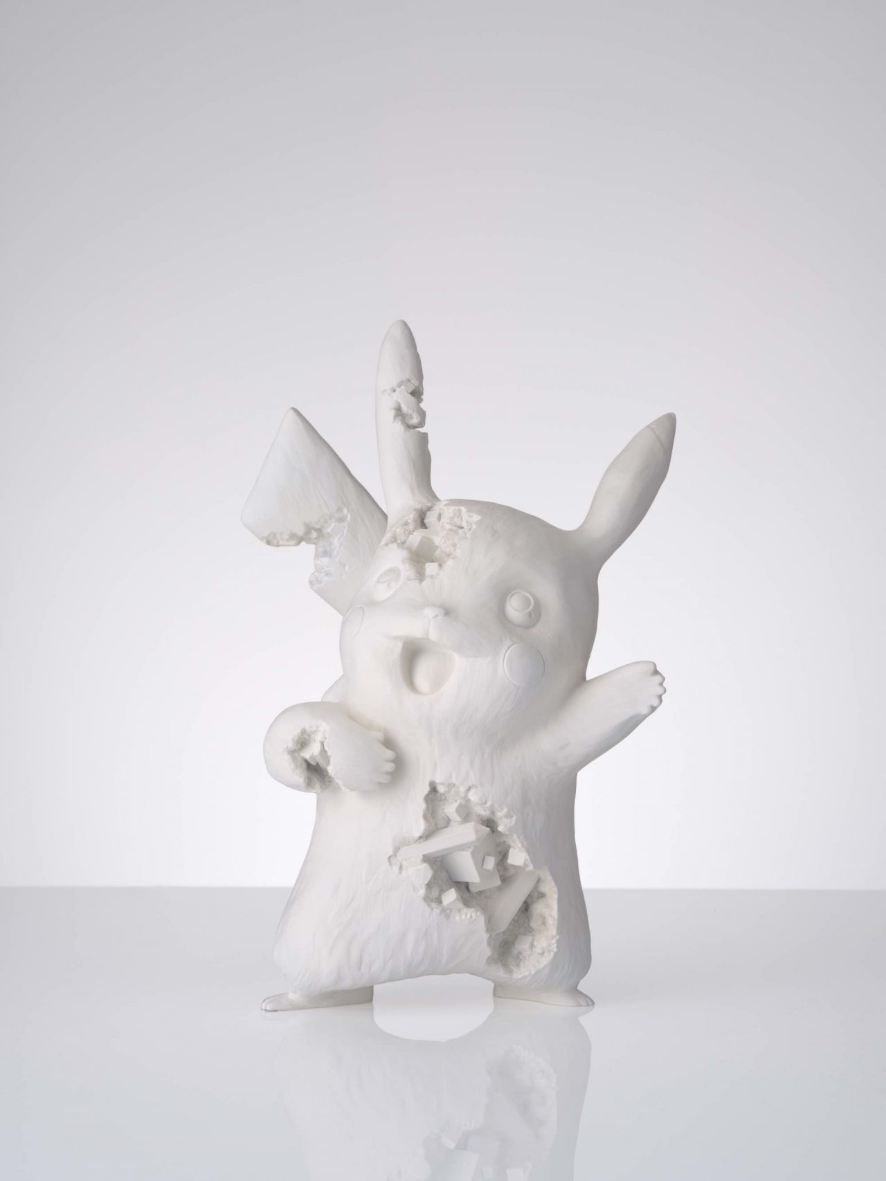 Daniel Arsham は「Fictional Archeology (フィクションとしての考古学)」をコンセプトに掲げ、現在の世界を未来から観るような作品で鑑賞者の想像力を刺激してきた。そんな彼が目を向けたのが、かねてより思いを寄せていた Pokémon。これから1000年後、⻄暦3020年にポケモンを発掘してみたら、という考えから、これまでに見たことのないピカチュウが生まれた。