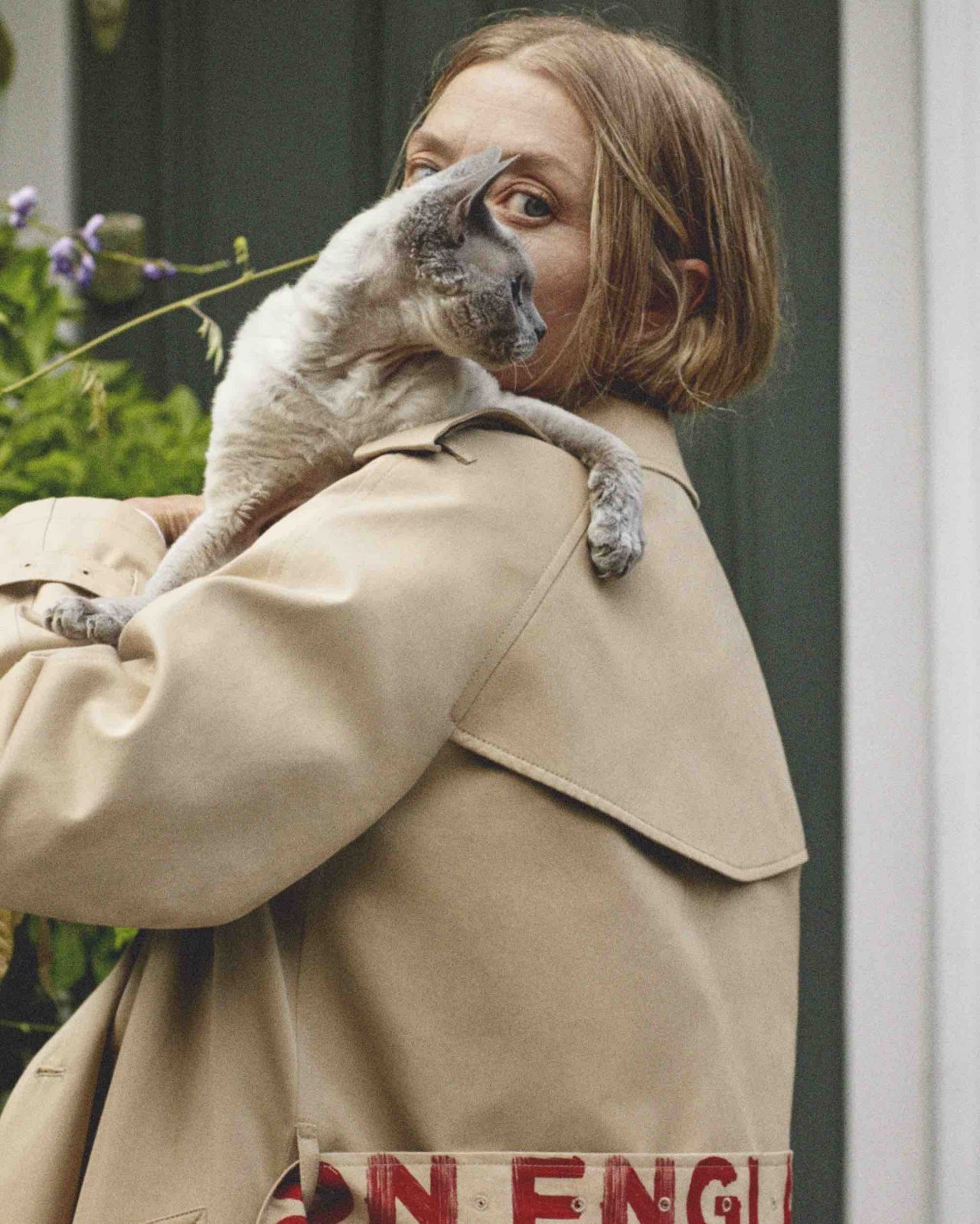 「このコレクションで私は基本に立ち返り、心地よく自分に力を与えてくれるものを作りたいと考えました。バーバリーで最初にインスピレーションを受けた、チェック、アイコンストライプやユニコーンのエンブレムなど、バーバリーのヘリテージのハウスコードを改めて振り返りました。今回はそこにアウトドアというレンズを通して、洗練とストリートの両方の要素を組み込んだのです。イギリスには世界で最も美しい数々のアンティークガーデンがあります。そこに咲く薔薇をコレクションのアイテムにプリントしたかったのです。ルックブックでは、バーバリーの有能なスタッフを集め、それぞれの個性でコレクションを体現してもらいました。ブランドの唯一無二のハウスコードだけではなく、我々のバーバリー・コミュニティーが持つダイバーシティーを表現し、その世界観にマジックをかけ生を与えているかのようなこのコレクションに私は誇りを持っています」