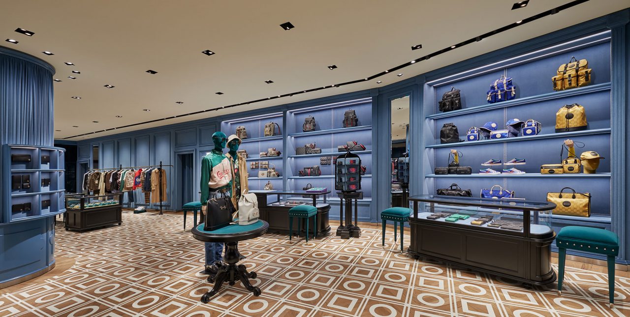 店内はさりげないながらも、Alessandro Michele (アレッサンドロ・ミケーレ) のエレガントかつコンテンポラリーな折衷主義と共鳴した内装に。伝統とモダン、インダストリアルとロマンティックなエレメントを融合させ、Gucci ならではの世界観を体現している。