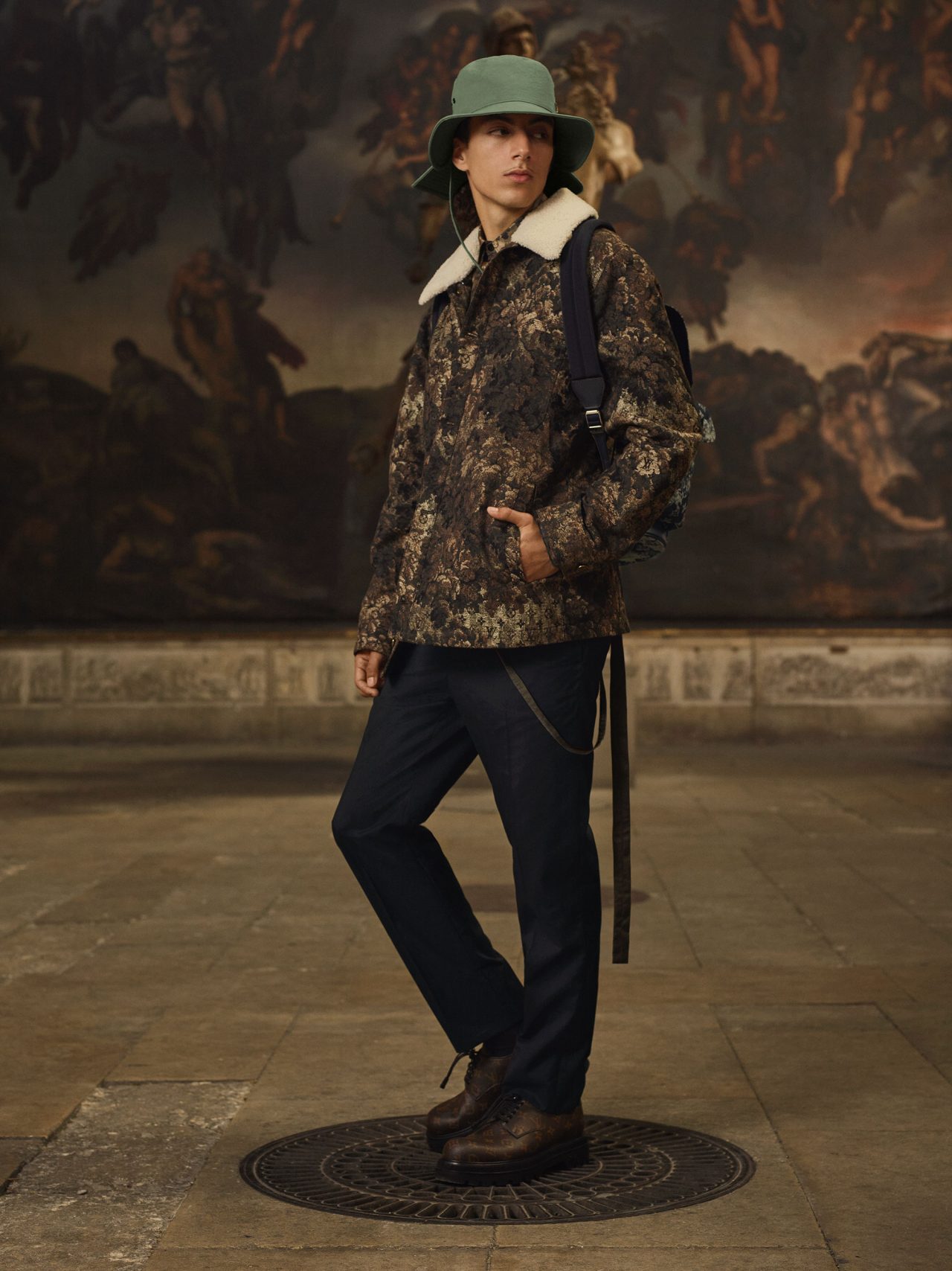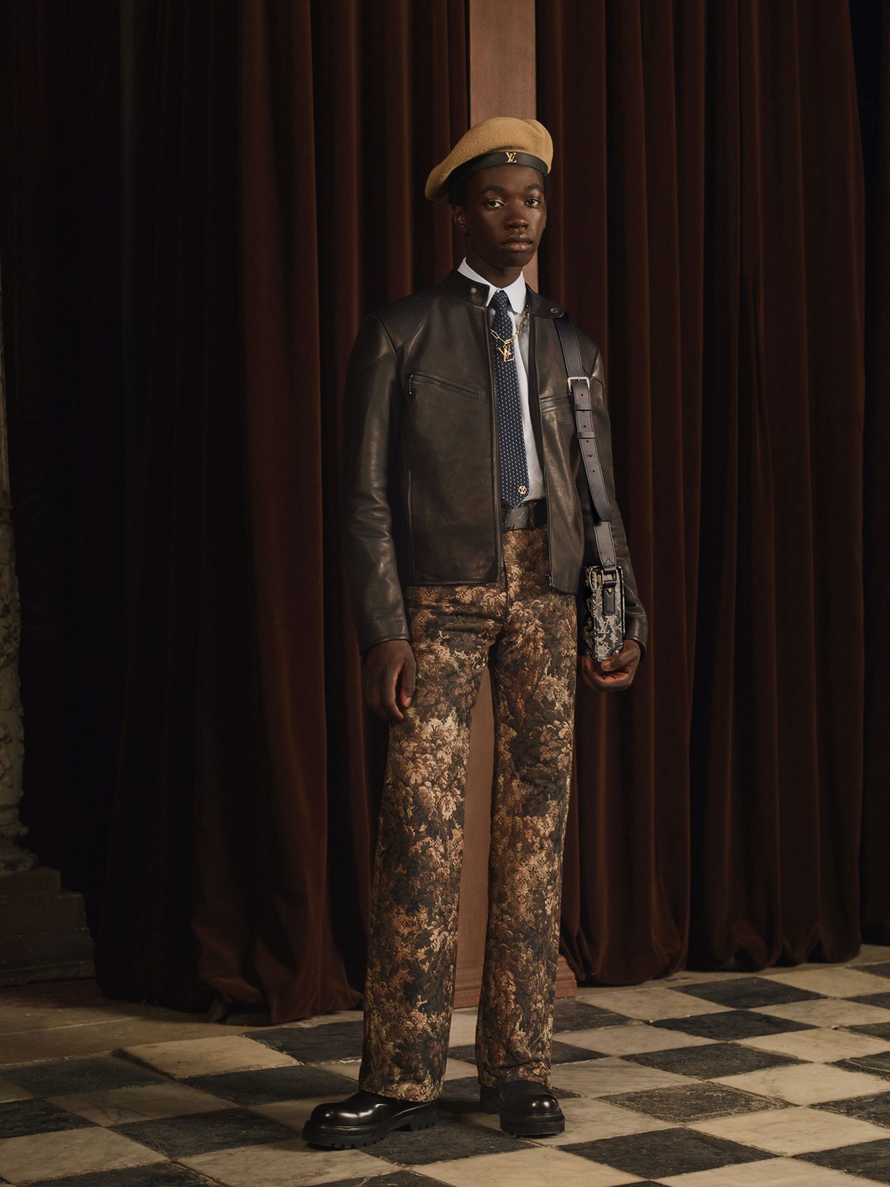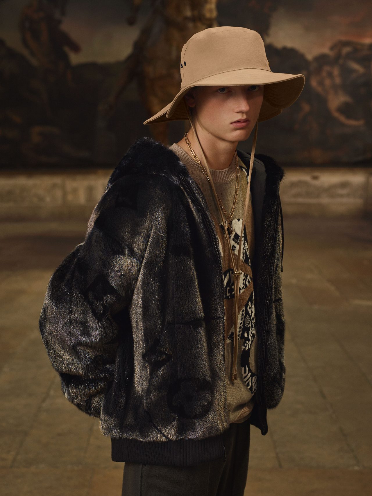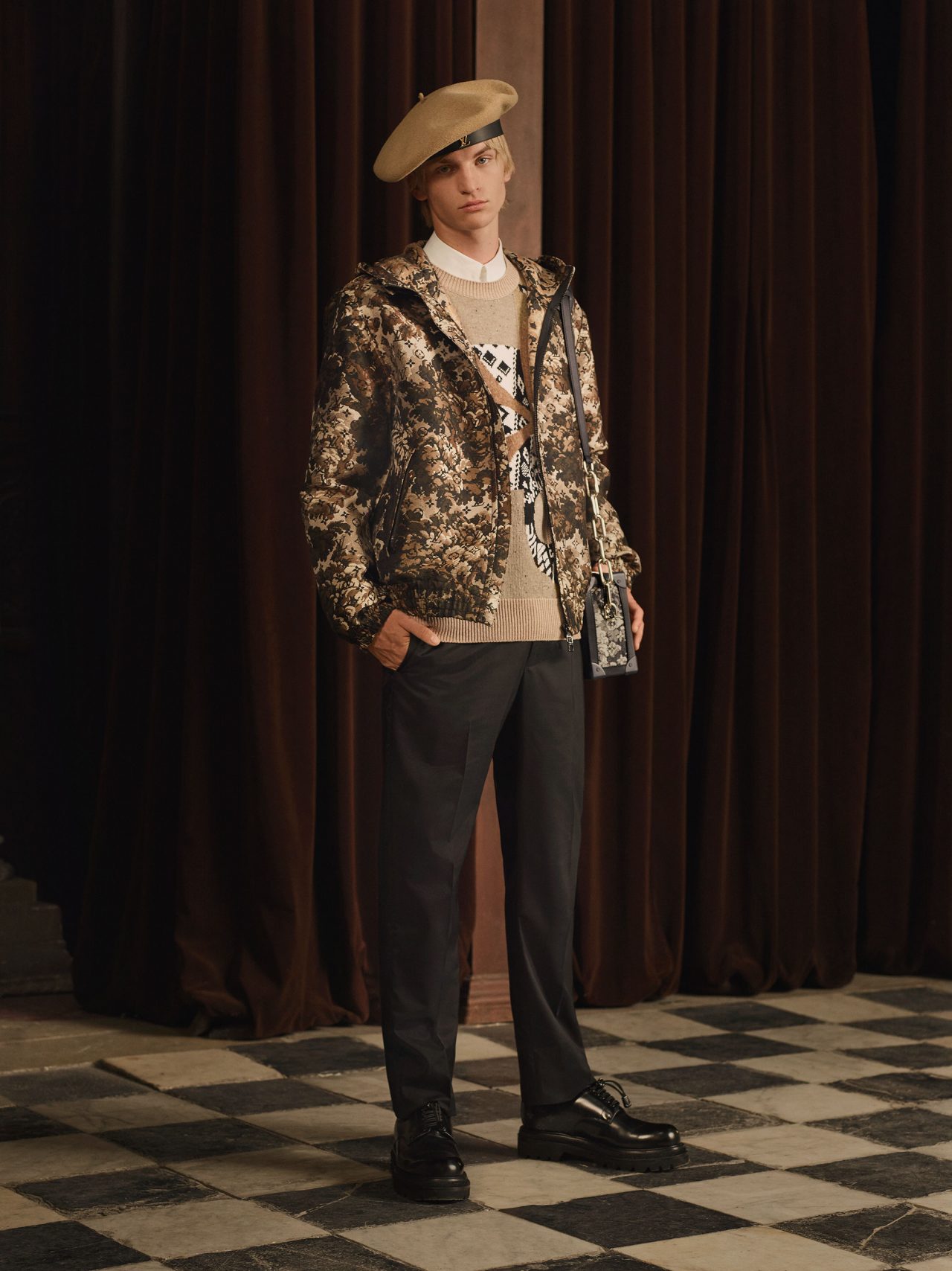 より幅広い層の心に響くことを出発点とした本プレコレクションは、日々のワードローブに求められる天候を意識した要素にフォーカス。寒い時期に発売されることを踏まえ、真冬を彷彿させるダークカラーのパレットを基調としている。加えて、メゾンを象徴するモノグラム・フラワーがコレクション全体を通して登場。カモフラージュを彷彿せさるモノグラム・リーフも取り入れられている。