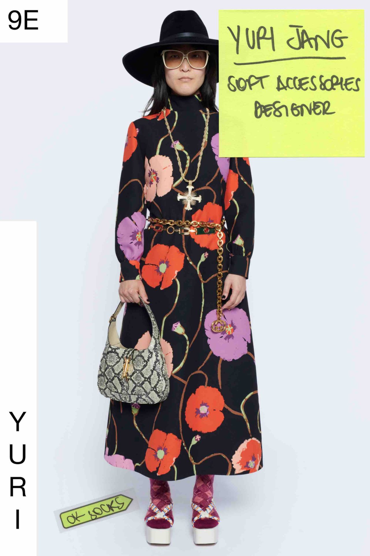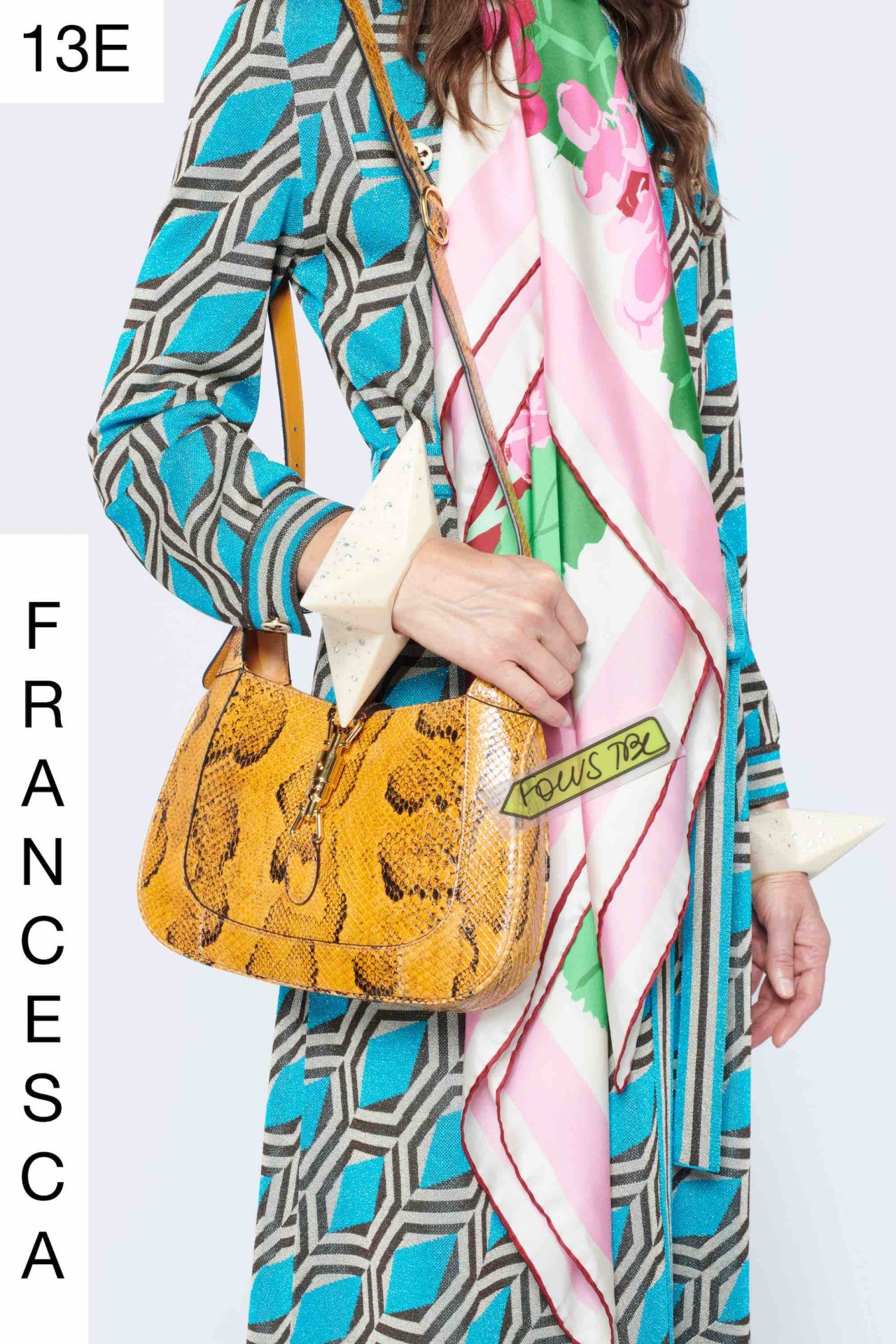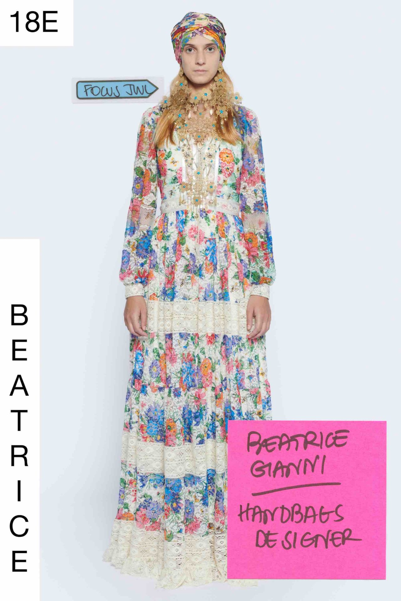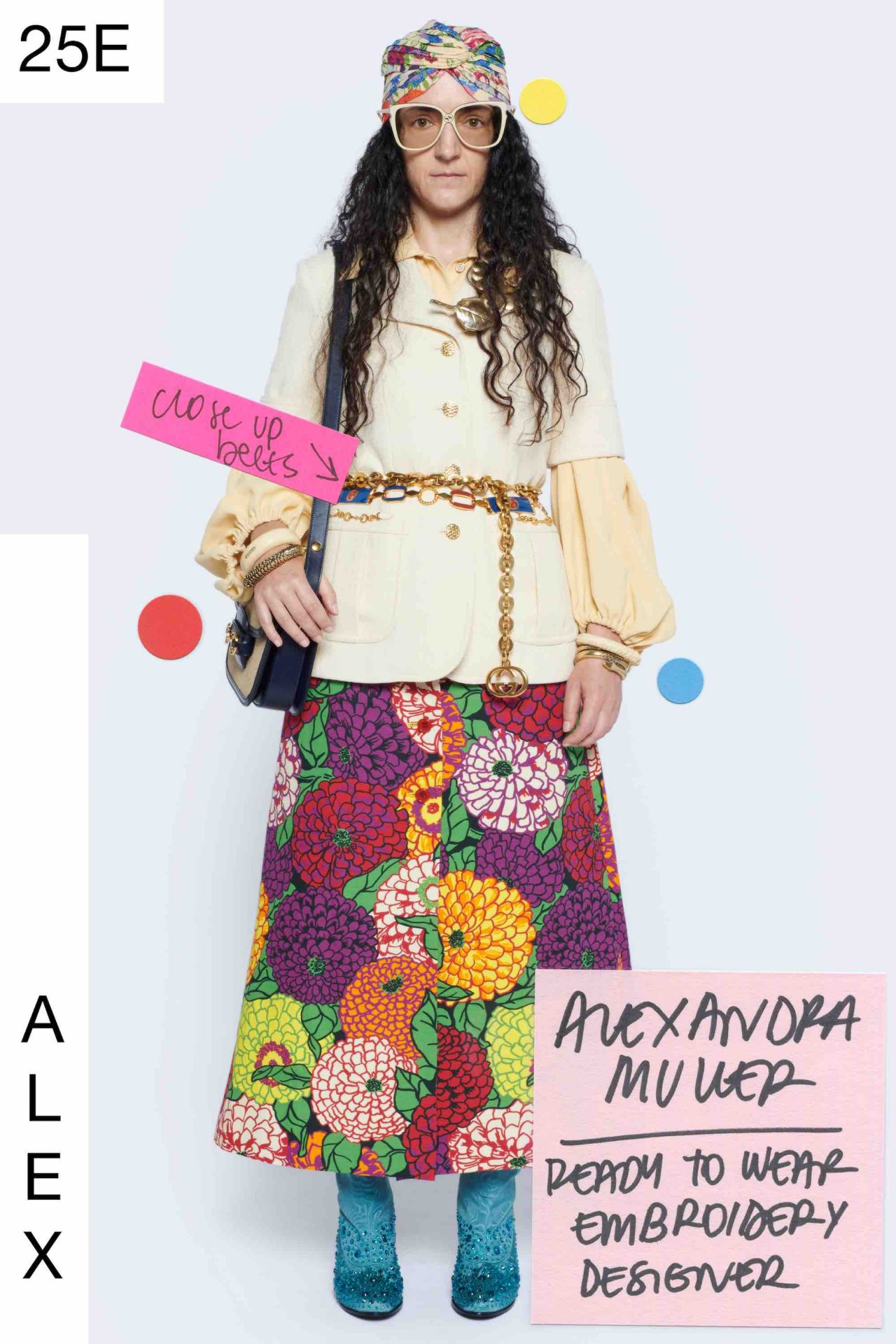「Epilogue」と銘打たれた本コレクションは、ファッションショーそのものに着眼し、バックステージにもスポットライトを当てた2020-21年秋冬コレクション「An Unrepeatable Ritual」からスタートし、同コレクションの広告キャンペーンが第二幕として続いた三部作の最終幕(エピローグ)という立ち位置となる。ファッションショーという魔法のような儀式を賛美しつつ、ファッションの世界を深く掘り下げ、問いかけを出し尽くした Alessandro Michele は今後、ファッションショー開催を年2回にすることを発表している。