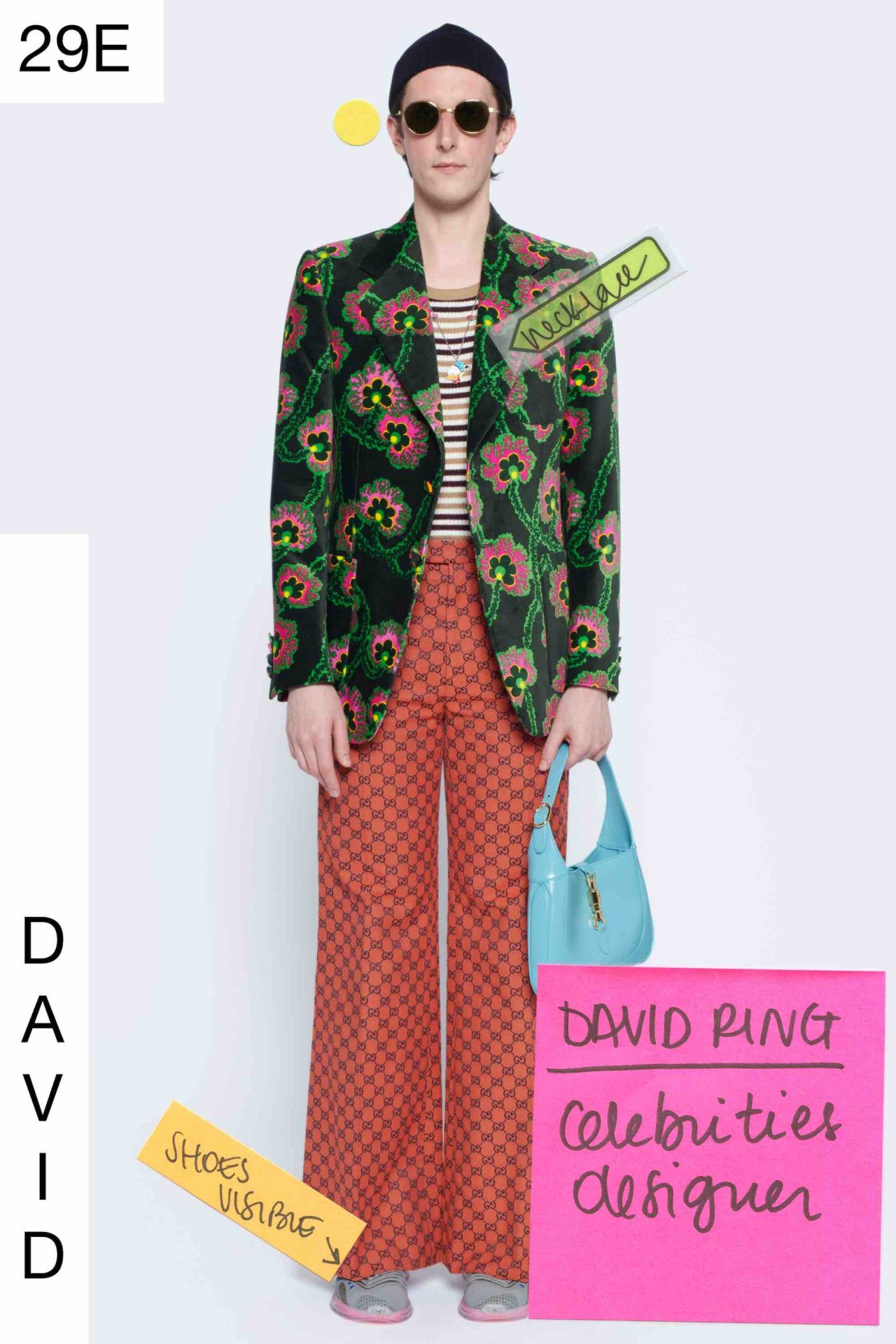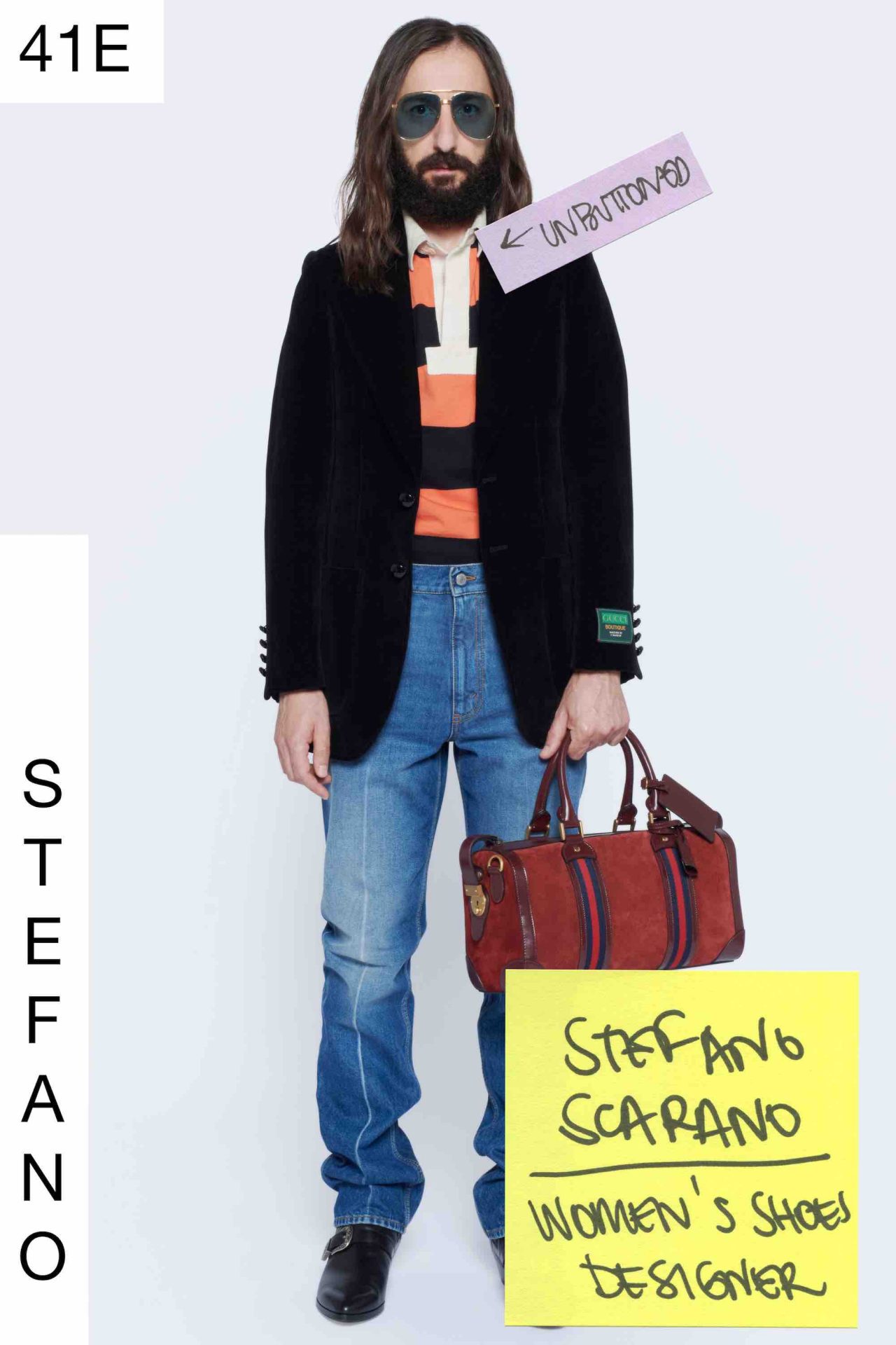 コレクション発表当日、イタリア・ローマの重要文化財 Palazzo Sacchetti (パラッツォ・サケッティ) から Gucci は12時間にわたってライブ配信を敢行。Alessandro Michele のデザインオフィスのメンバーをモデルにしたキャンペーン撮影の舞台裏が映し出された。今回発表されたルックブックのアートディレクターは Christopher Simmonds (クリストファー・シモンズ)、フォトグラファーは Mark Peckmezian (マーク・ペクメジアン) がつとめている。