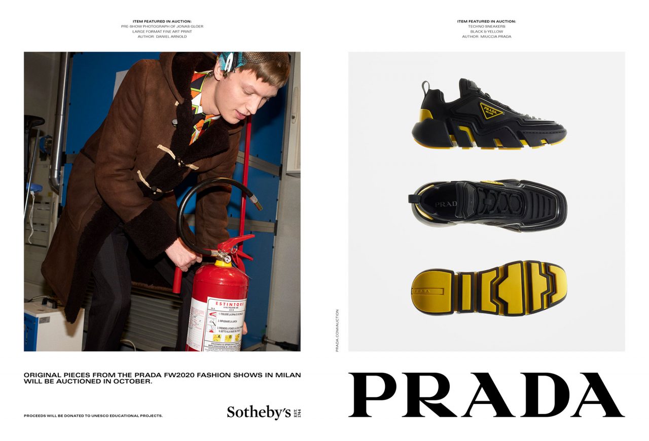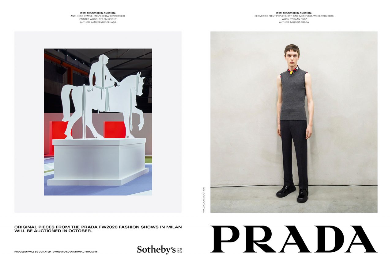 新型コロナウイルスのパンデミックおよびロックダウンに見舞われ、大きな影響を受けたファッション業界。ファッションは時代を反映するだけでなく、時代を形作る一助となる義務があると考える Prada は、これまでとは趣向の異なるキャンペーンを発表。静止したビジュアルではなく、2020年秋に Sotheby’s (サザビーズ) とのコラボレーションによって開催されるオンラインオークションという行動を通して2020年秋冬シーズンのキャンペーンを展開する。