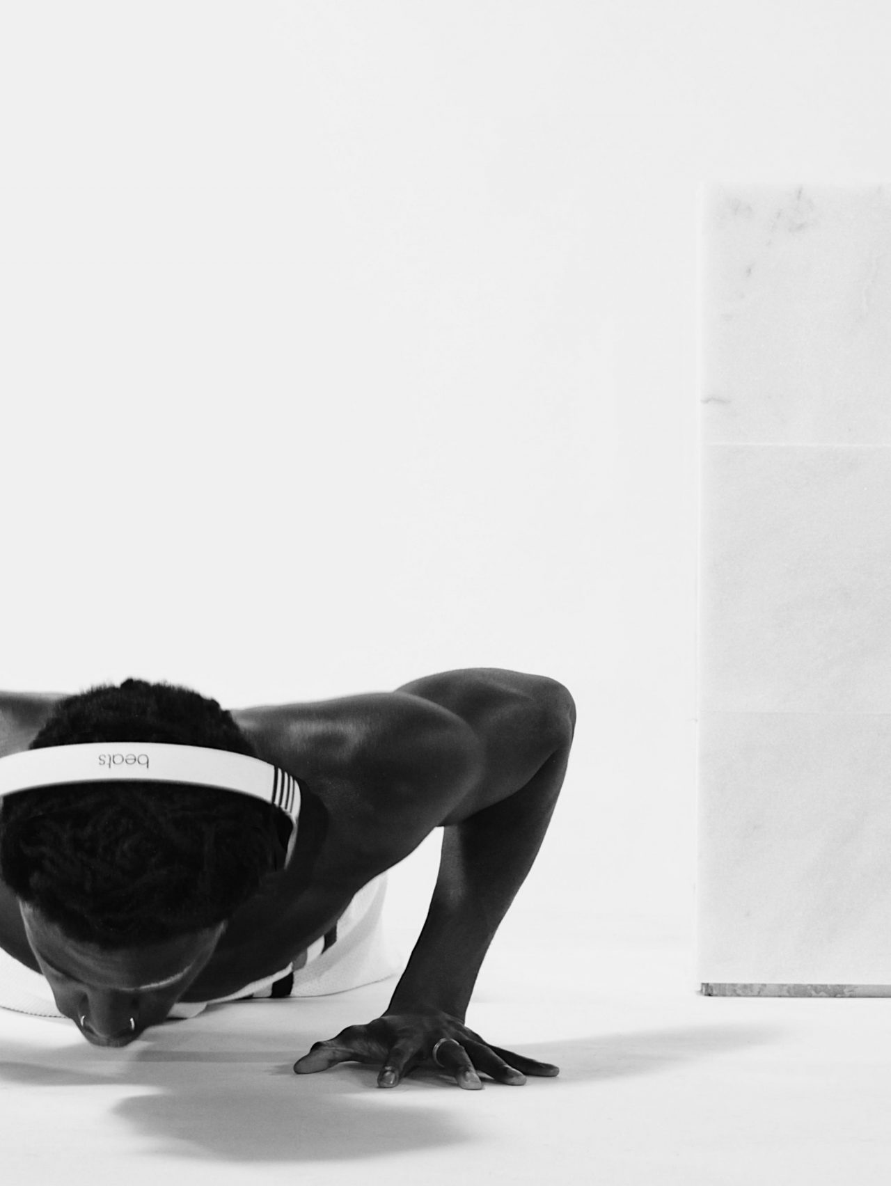 オリンピックというテーマ、真の身体能力という考えと物づくりにおいて際立ち続ける Moses Sumney が一致すると考えた THOM BROWNE は、まるでミュージックビデオのようなモノクロの映像を制作。音楽は、現在もセレモニーで使用されている1896年に登場したオリンピック賛歌を軸にしており、コレクションのテーマと今の時代において重要なメッセージを表現している。