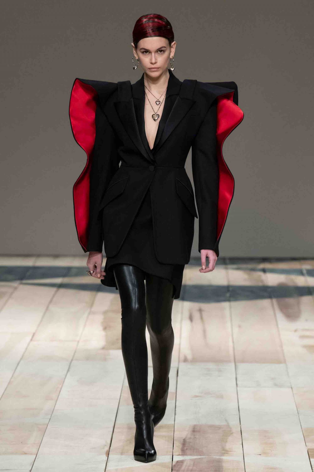 旗艦店のオープンを記念して、ここでしか手に入らない限定商品も登場。Kaia Gerber (カイア・ガーバー) がランウェイで着用していた大胆なドレープがスリーブに施されたジャケットやスカート、チェックとレザーの切り替えが美しいドレス、エレガントなスタッズ使いが印象的なショルダーバッグなどがラインナップされている。