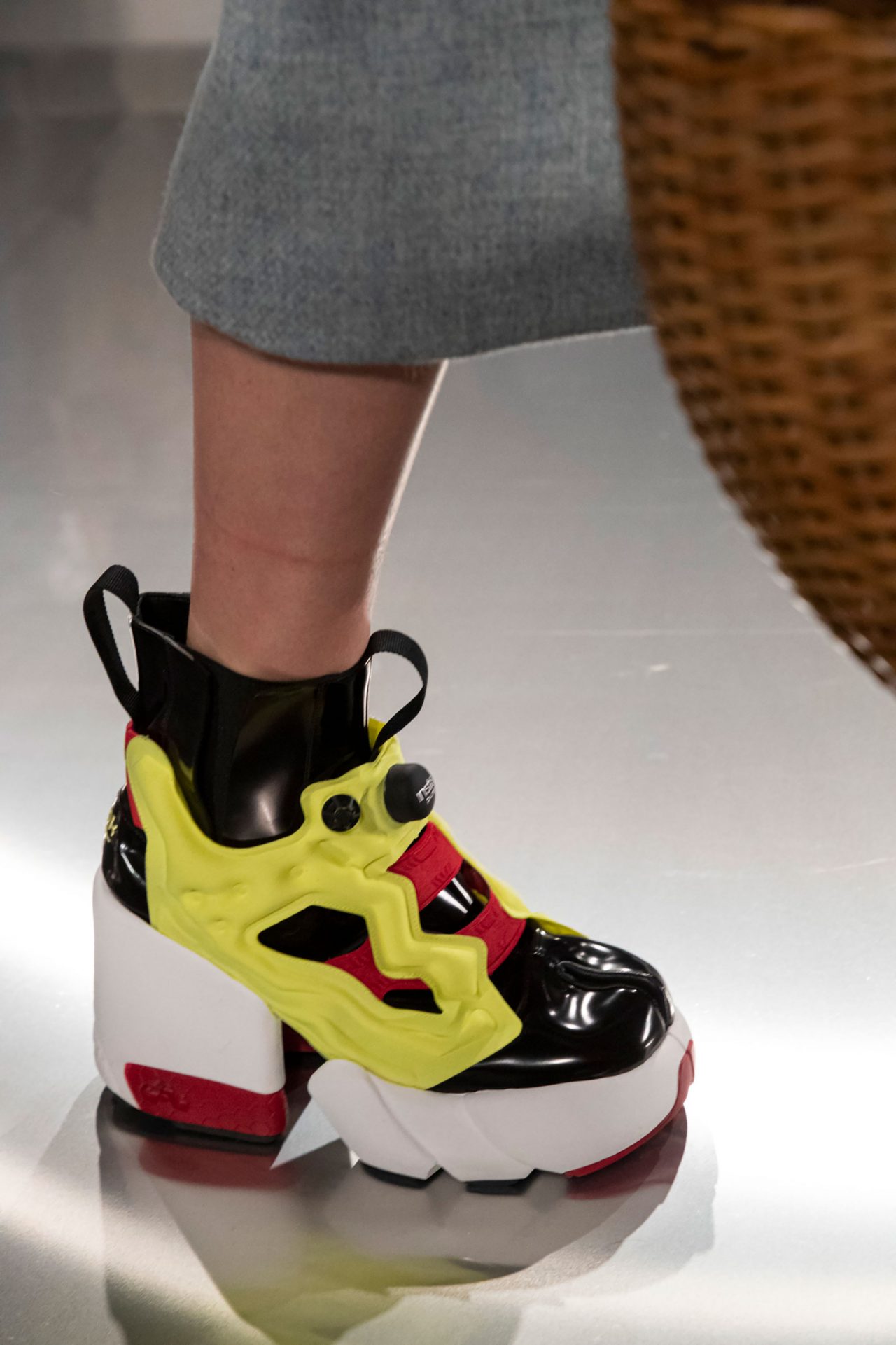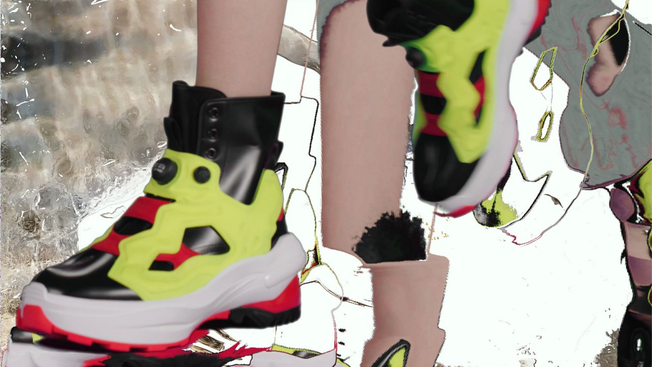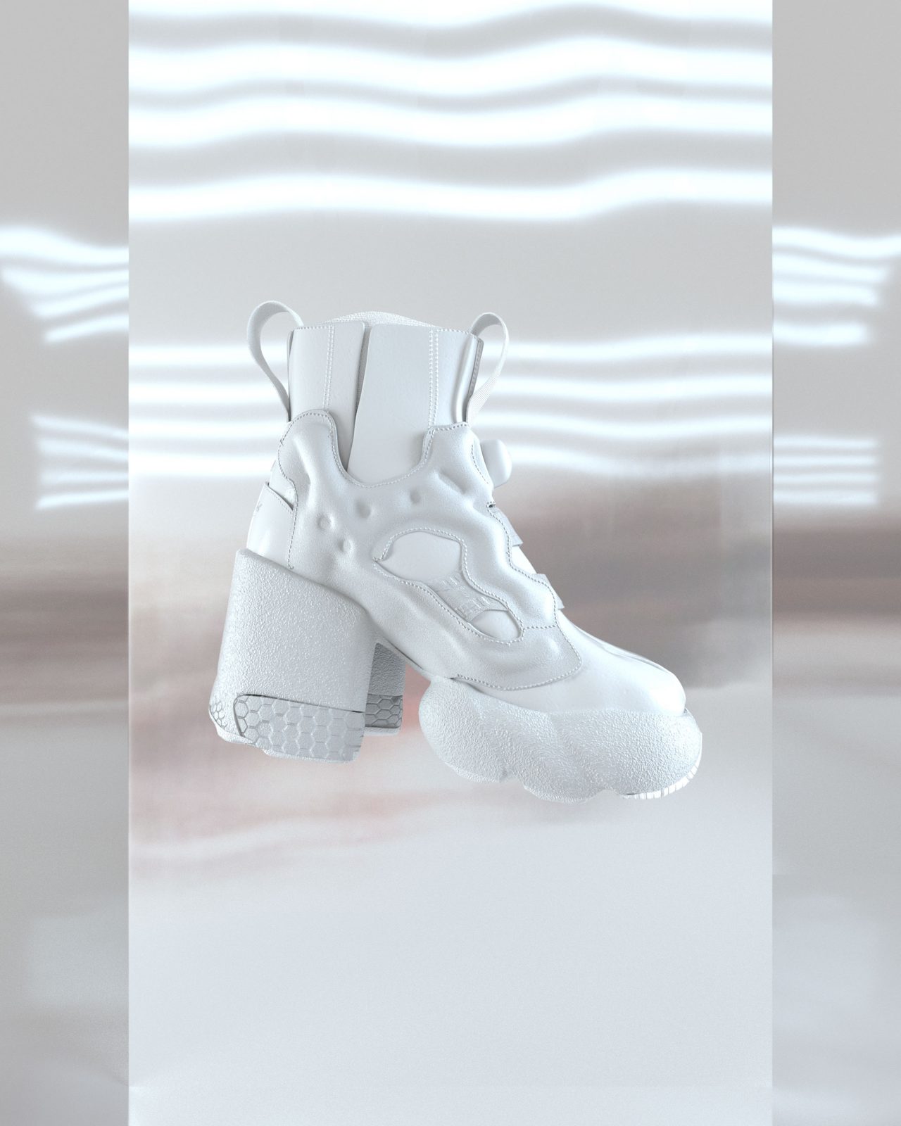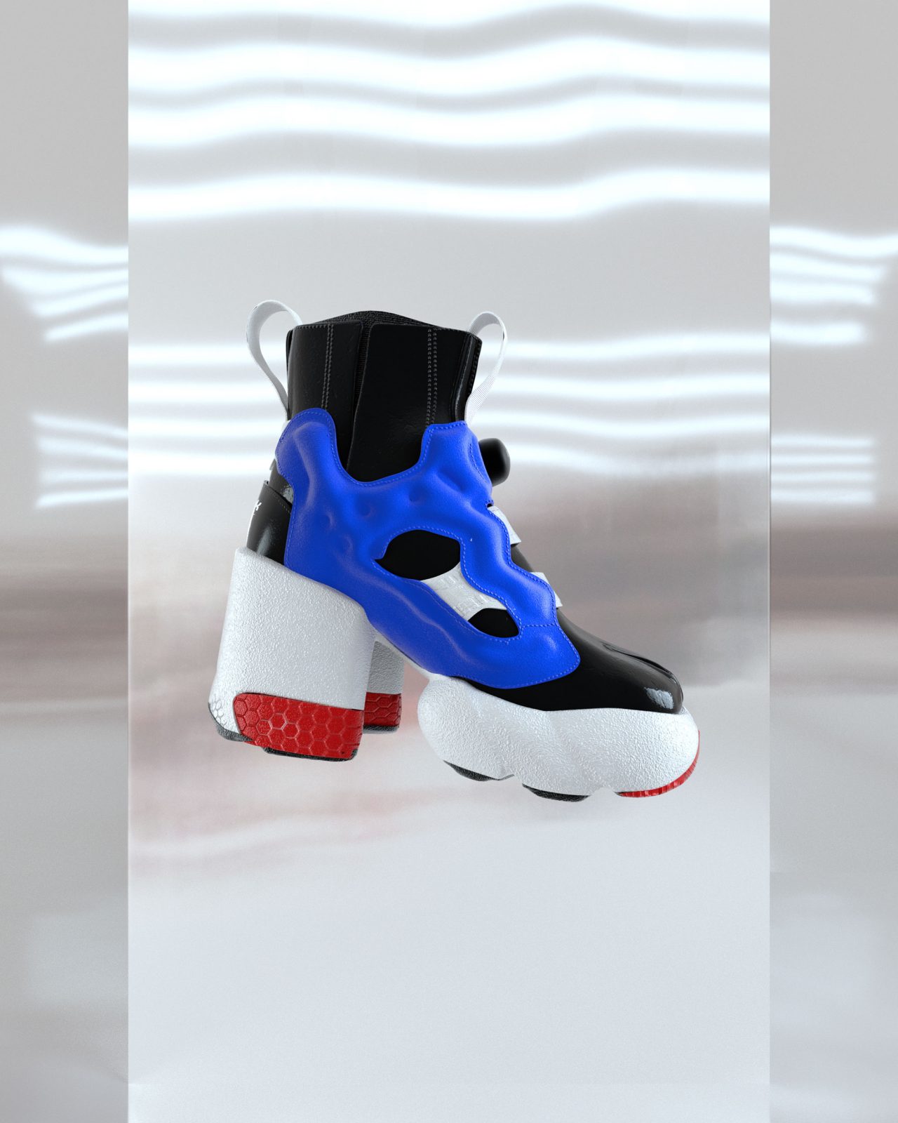 話題の Maison Margiela と Reebok のコラボレーションシューズは、2020年春夏「アーティザナル」Co-ed ショーで初披露され、2020年秋冬「デフィレ」Co-ed ショーでは様々なカラーコンビネーションがお目見えした。Maison Margiela のアイコンシューズである「Tabi (タビ)」と Reebok の定番モデル「Instapump Fury (インスタポンプ フューリー)」を融合したこのシューズは、フラットとヒールの2型で展開される。