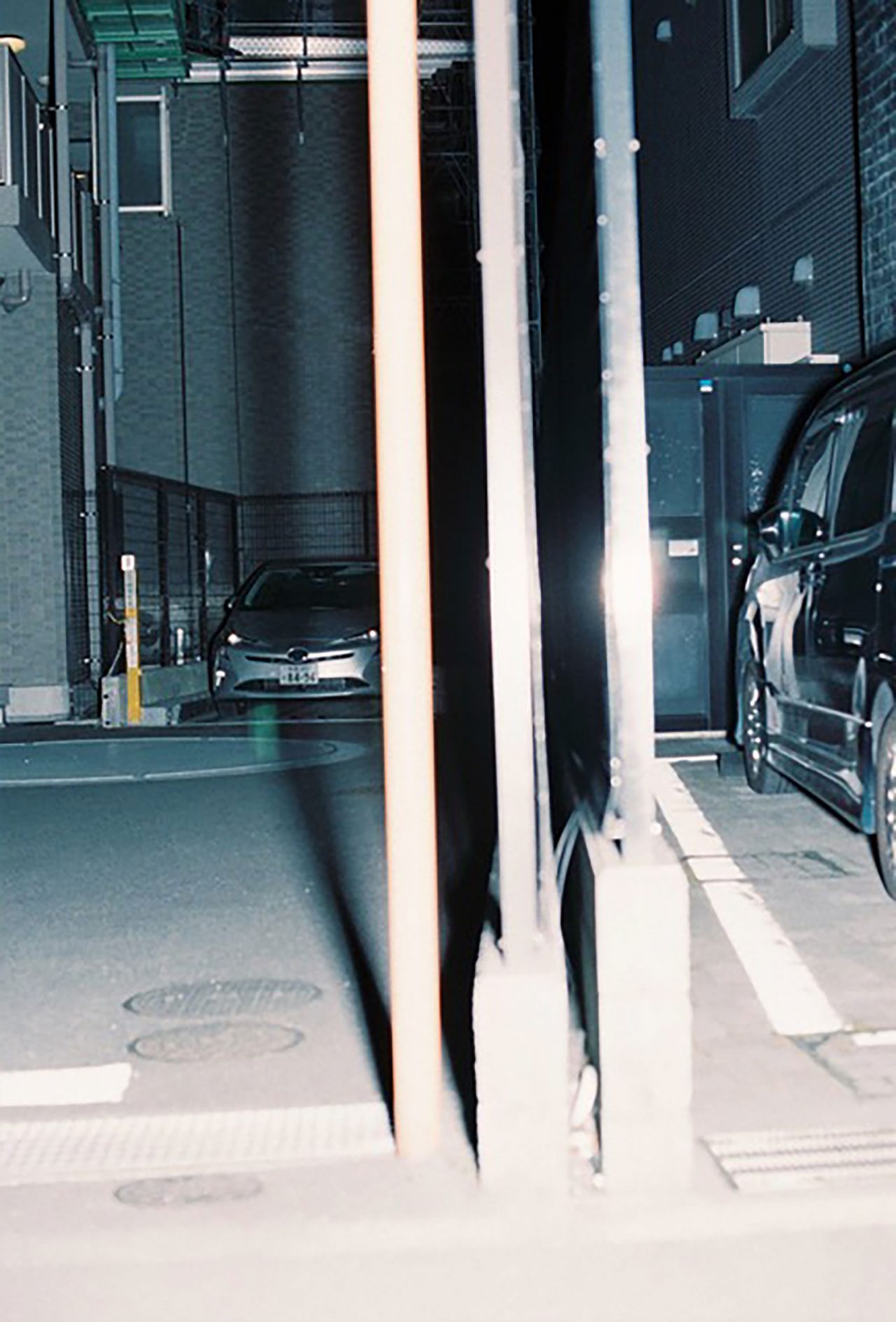 「TOKYO BY CAR」はその名の通り、車から東京の街並みを撮影した作品群。車の後部座席にカメラとストロボを設置し、山谷が運転しながらレリーズを用いて撮影をするという現在進行中の実験的シリーズだ。