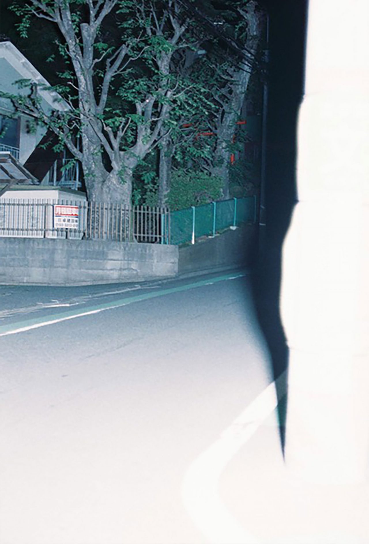 車で常に前進していることにより、斜め前の景色を見て山谷がシャッターを押しても、写真に写っているのは作家本人が想定していない風景。シャッターを押そうという意識を与えたものの真横にある風景が映し出された写真群は、私たちが意識して見ているそれぞれの事物を構成する全体ではなく、その真横に存在している部分たちを捉える試みとなっている。