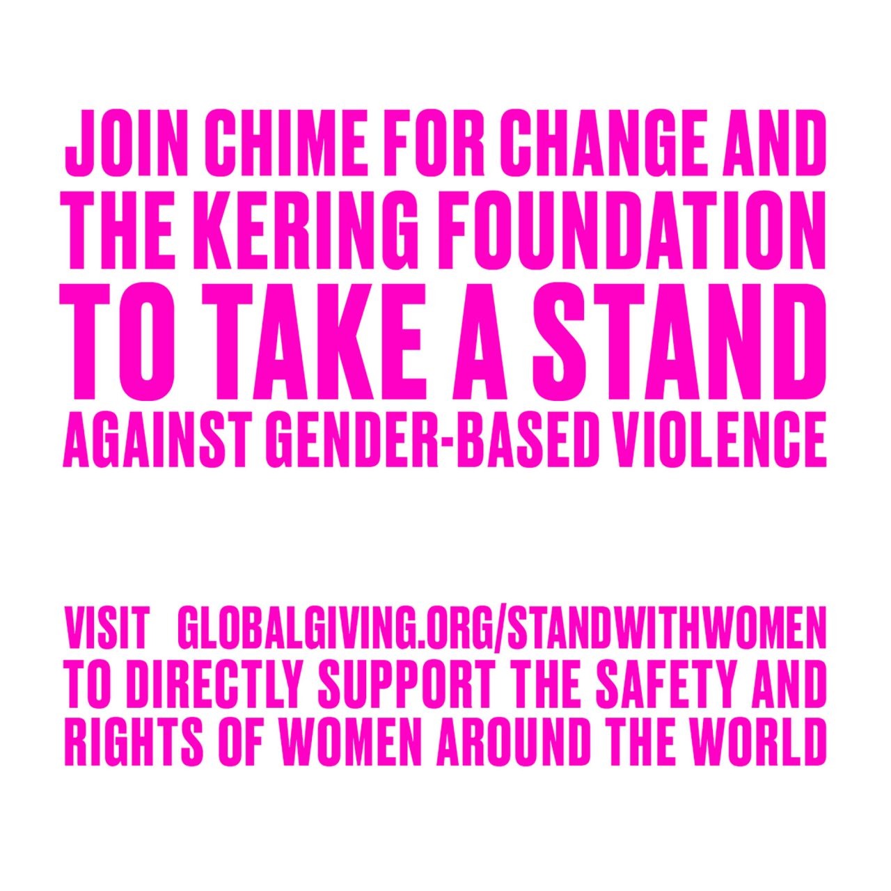 また、「CHIME FOR CHANGE」は Kering Foundation (ケリング・ファンデーション) とともに新型コロナウィルスのパンデミック下で発生しているジェンダーに起因する暴力や差別に立ち向かうキャンペーン「#StandWithWomen」をサポート。2020年5月に始動したこのキャンペーンは、有色人種、トランスジェンダー、先住民族、障害のある人を含む世界中の女性と少女たちの健康、安全、人権を支援し擁護する草の根団体と協働している非営利パートナーに活動資金を提供している。「#StandWithWomen」については、コチラから確認してほしい。