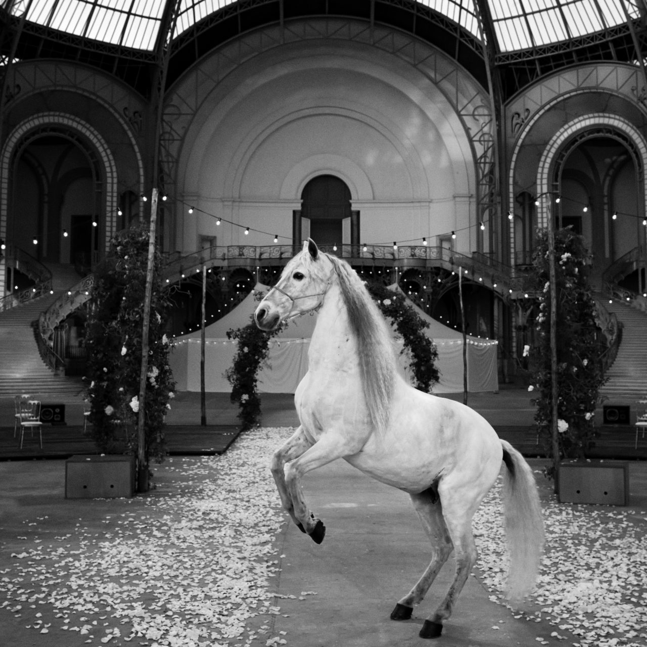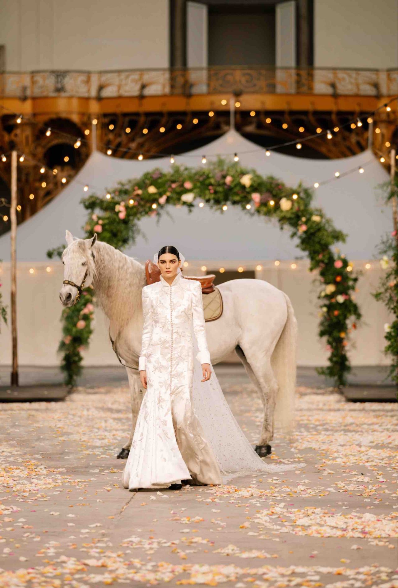 「大々的なショーを開催することはができないので、何か他に策がないかと感じていました。そこで私は、 少人数が列を成してグラン パレの階段を降り、花のアーチをくぐるアイデアを思いつきました。家族が集う セレブレーション、例えば結婚式のように・・・」