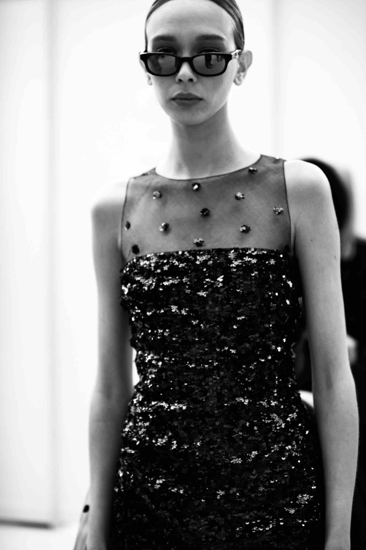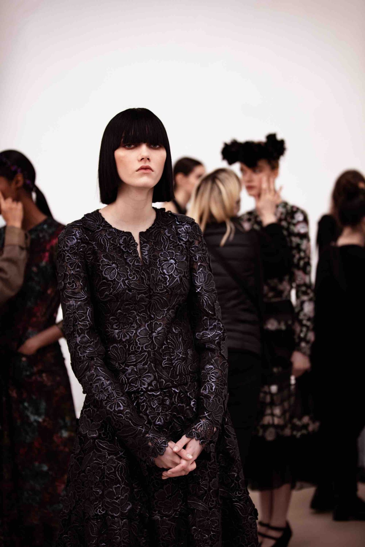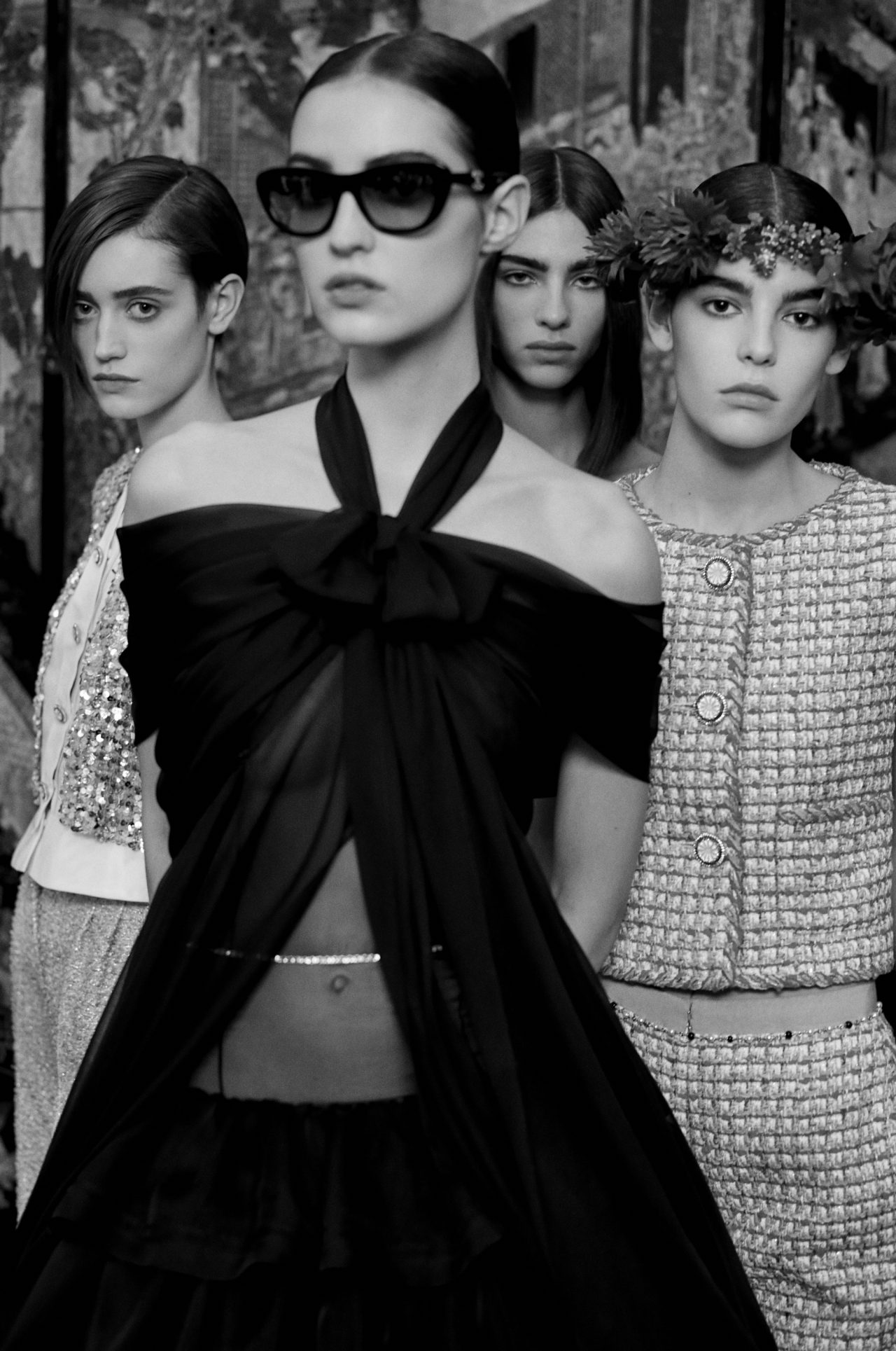 同氏は、リニューアルされたばかりのカンボン通り31番地のオートクチュール サロンを舞台に、本コレクションを撮影。このサロンの新たな内装は Jacques Grange (ジャック・グランジ) が手がけており、マドモアゼル シャネルがコロマンデル屏風や、ゴッサンスによる麦の穂のデザインのテーブルを飾っていた 当時のサロンのフェミニンな魅力にインスパイアされたデザイン。「モデルたちを集めて、フォトアルバムで見るような家族写真を撮りたいと考えました」 という Virginie Viard の希望のもと、家族のポートレートのようなスタイルを採用したフォトシリーズが誕生した。
