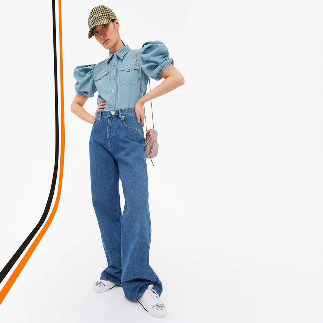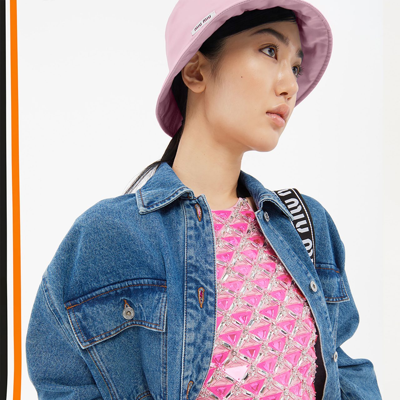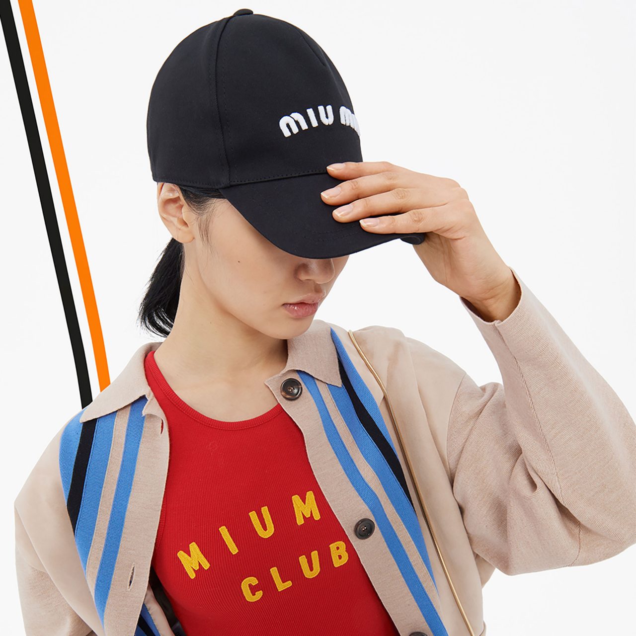 今回のポップアップストアでは、2021年春夏コレクションが多数取り揃えられる。50年代のアメリカンムードにインスパイアされ、デニムウェアを取り入れた MIU MIU らしいスポーティスタイルをバリエーション豊富に展開。2021年春夏コレクションのショースペースを再現した店内は、スポーツアリーナをイメージしたダイナミックなマーキングデザインが広がる空間に仕上げられ、レトロなヴィンテージカーも登場。アメリカンなスウェットルックやキャップにはアイコニックなロゴデザインを、デニムウェアやスポーティなピースには輝くビジューをあしらい、MIU MIU ならではのラグジュアリーなアクティブウェアを提案する。
