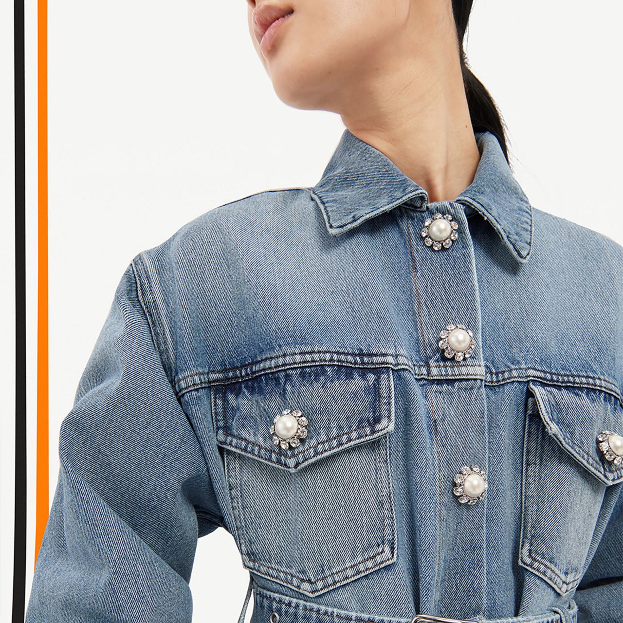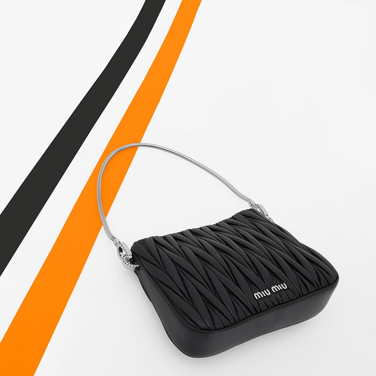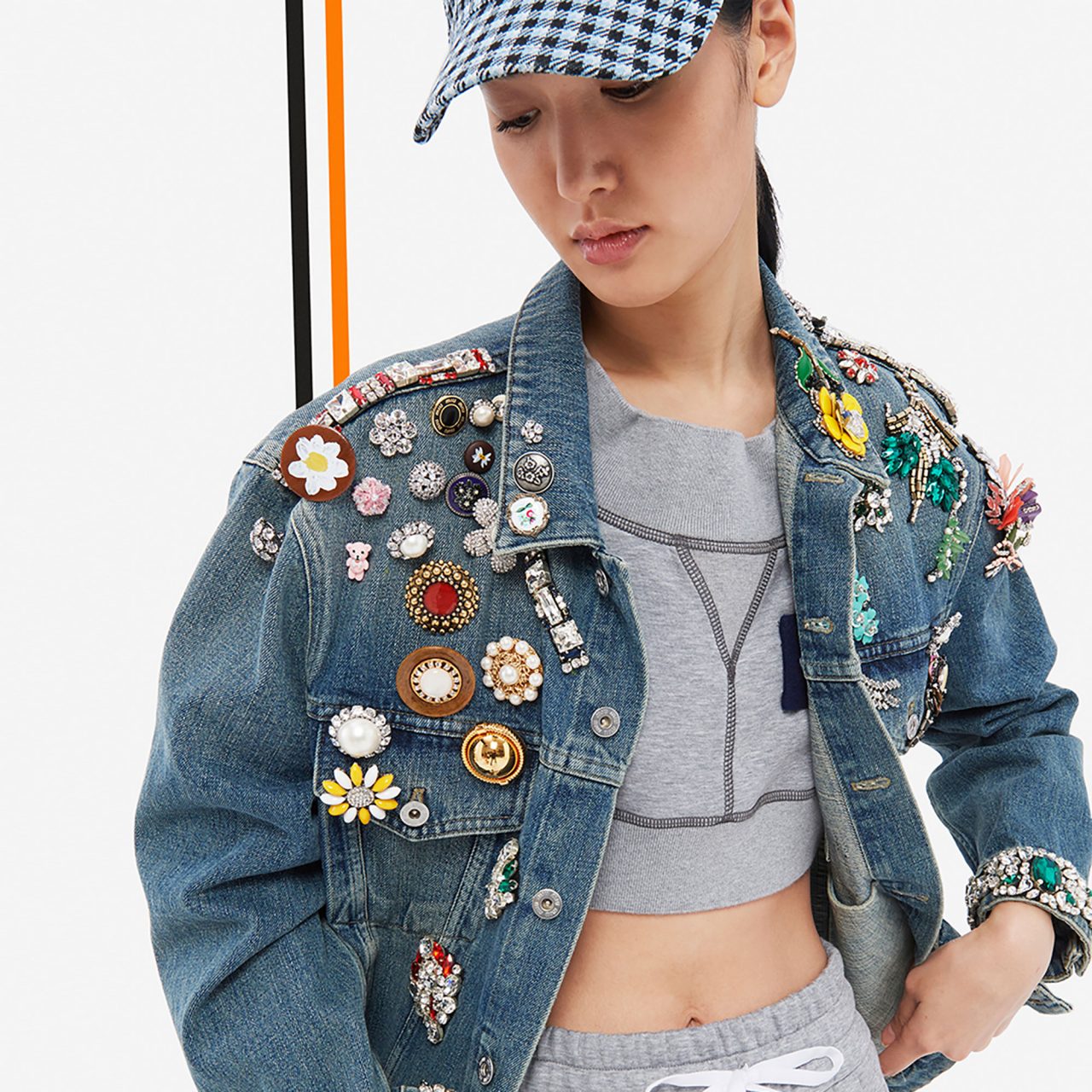 今回のポップアップストアでは、2021年春夏コレクションが多数取り揃えられる。50年代のアメリカンムードにインスパイアされ、デニムウェアを取り入れた MIU MIU らしいスポーティスタイルをバリエーション豊富に展開。2021年春夏コレクションのショースペースを再現した店内は、スポーツアリーナをイメージしたダイナミックなマーキングデザインが広がる空間に仕上げられ、レトロなヴィンテージカーも登場。アメリカンなスウェットルックやキャップにはアイコニックなロゴデザインを、デニムウェアやスポーティなピースには輝くビジューをあしらい、MIU MIU ならではのラグジュアリーなアクティブウェアを提案する。