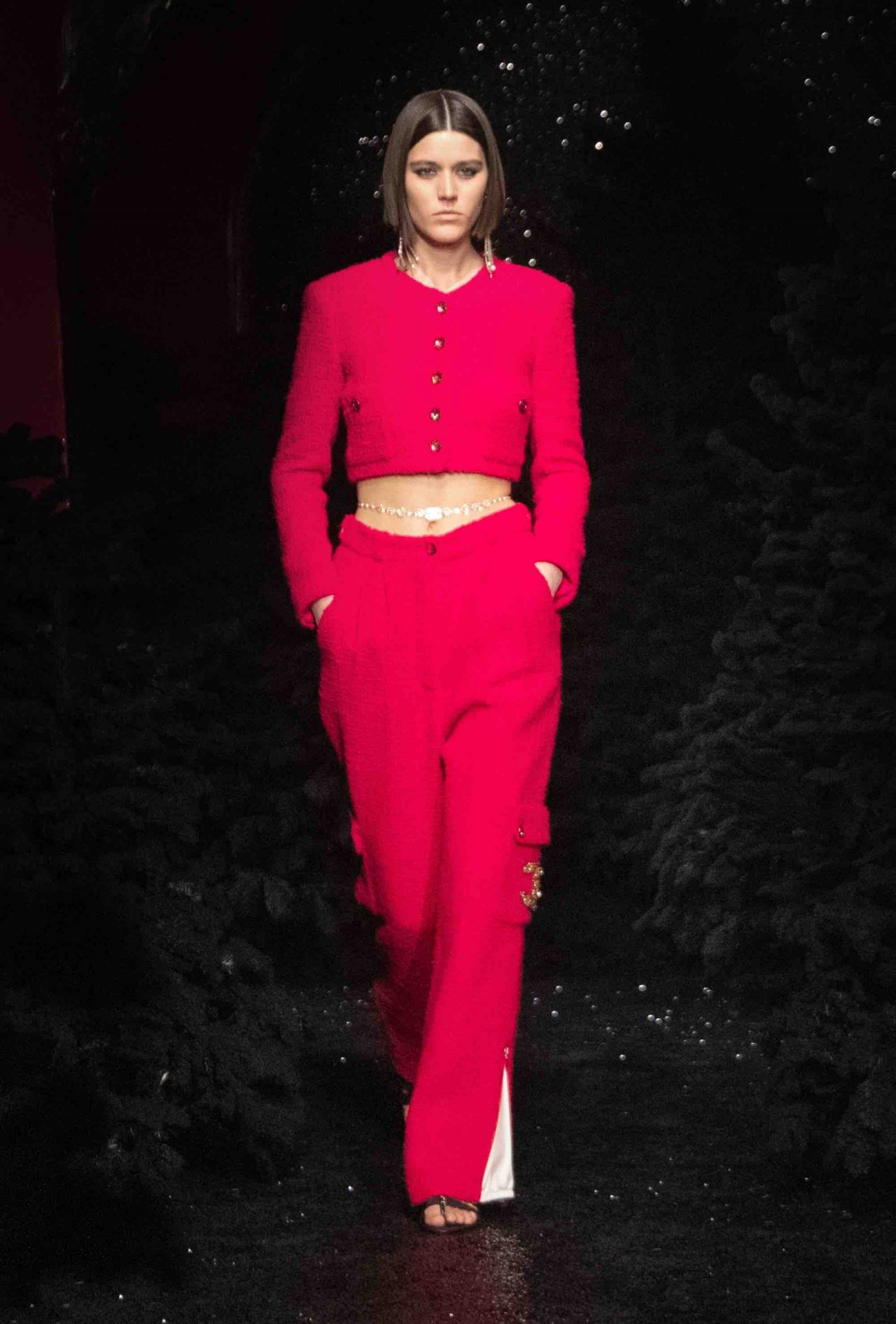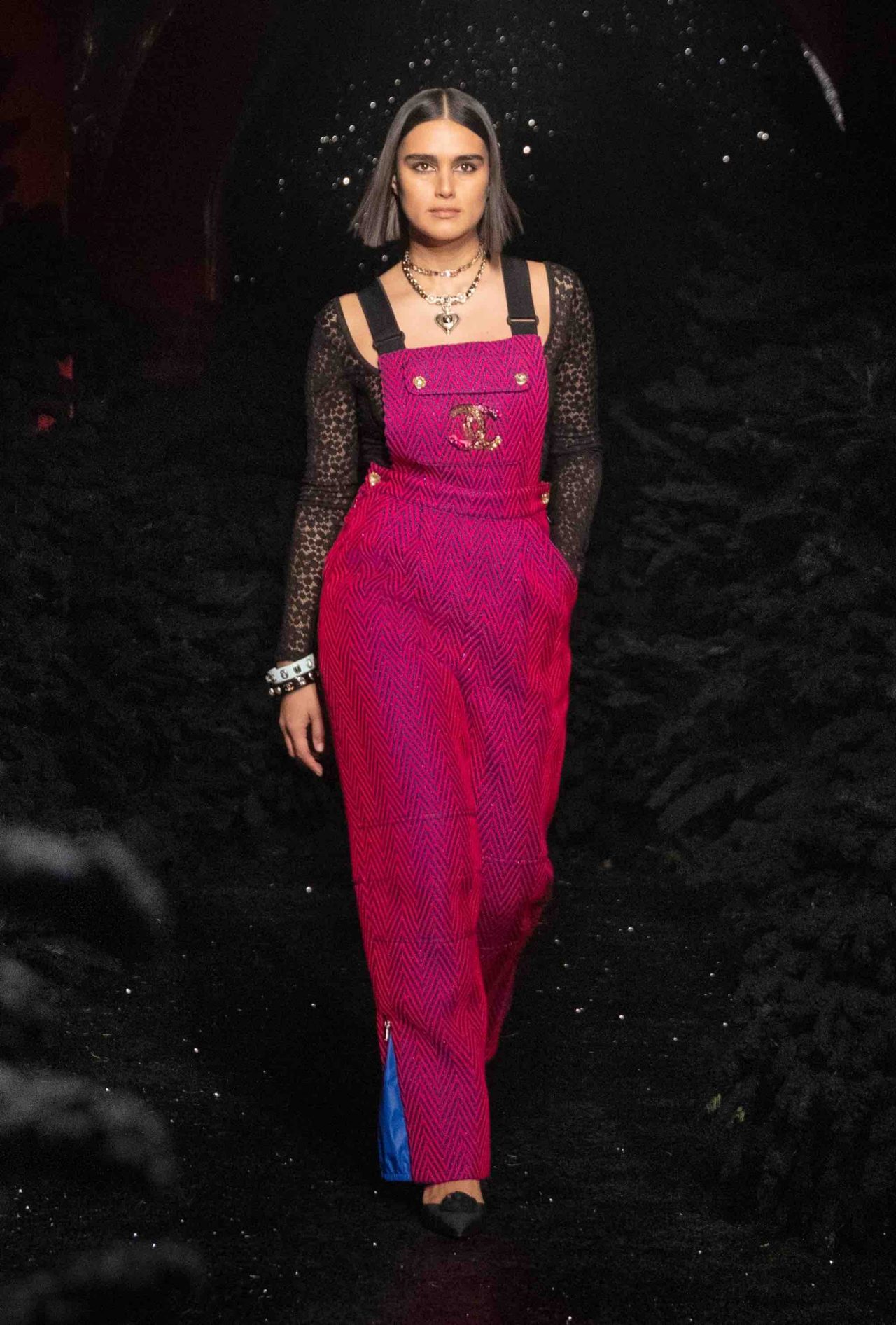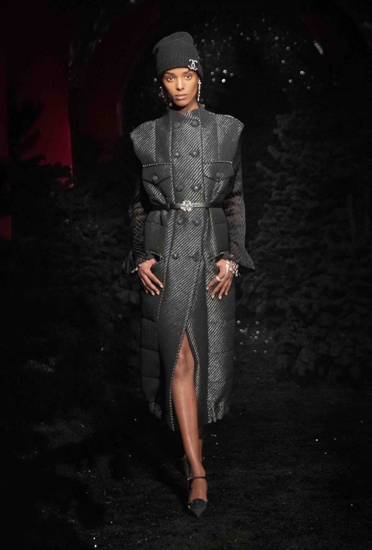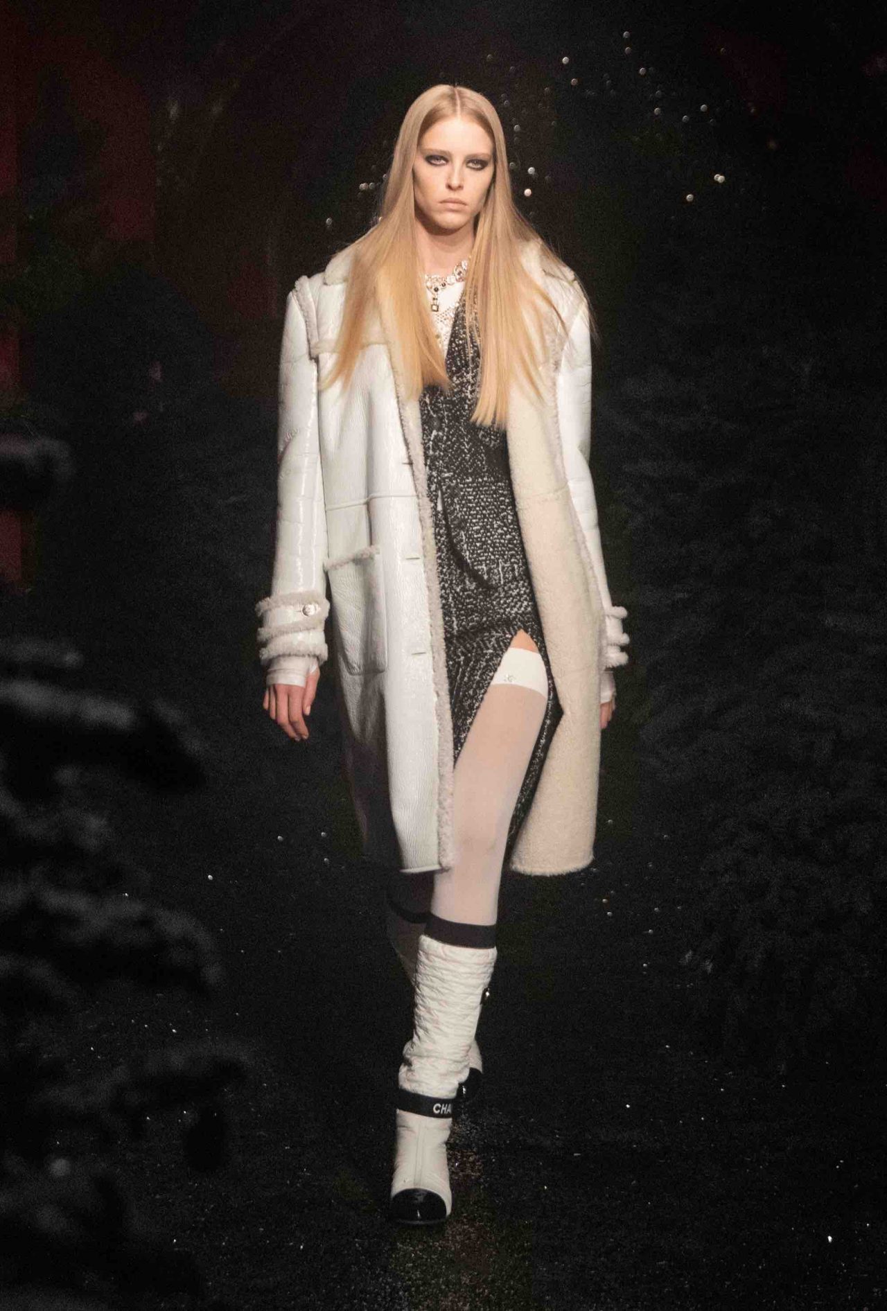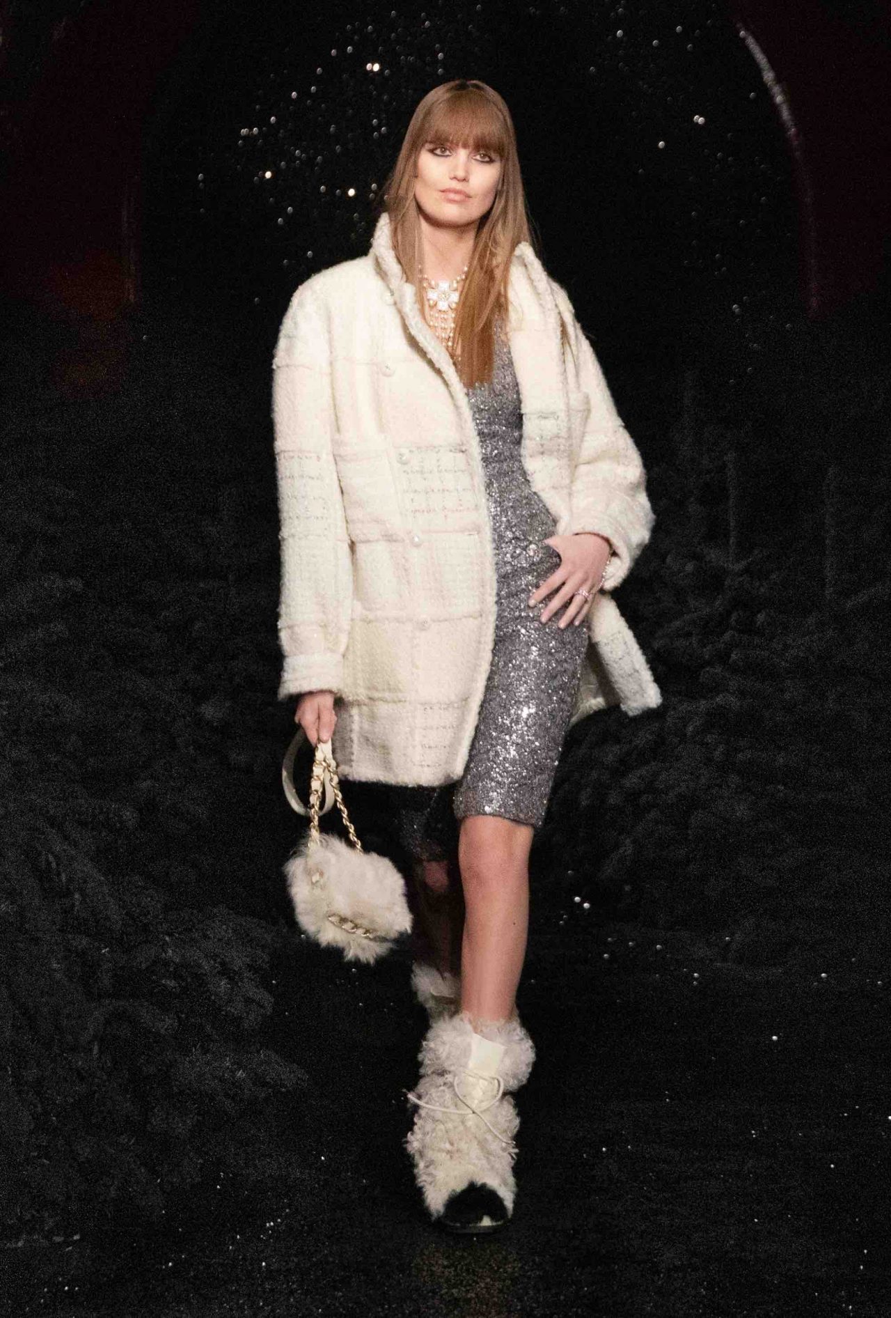 また、Virginie Viard は本コレクションを語る上で、去年の12月に急逝したスーパーモデルの Stella Tennant の名前を挙げている。シルバーラメのバレリーナシューズや、ネックレスのように首から掛けられたミノディエール、ラメ糸で仕立てられたプレシャスなスーツと白襟とカフス付きのメンズシャツ、玉虫色の糸で装飾されたニットのジャンプスーツに重ねたツイードのキルトスカート…いずれもそのアンドロジナスな魅力で自由にファッションを楽しんだ彼女の姿を確かに彷彿とさせる。「これらのシルエットを見ていると、ステラ・テナントのアリュールを思い出さずにはいられません。彼女独自の着こなし。それはとてもシャネルらしいものでした」