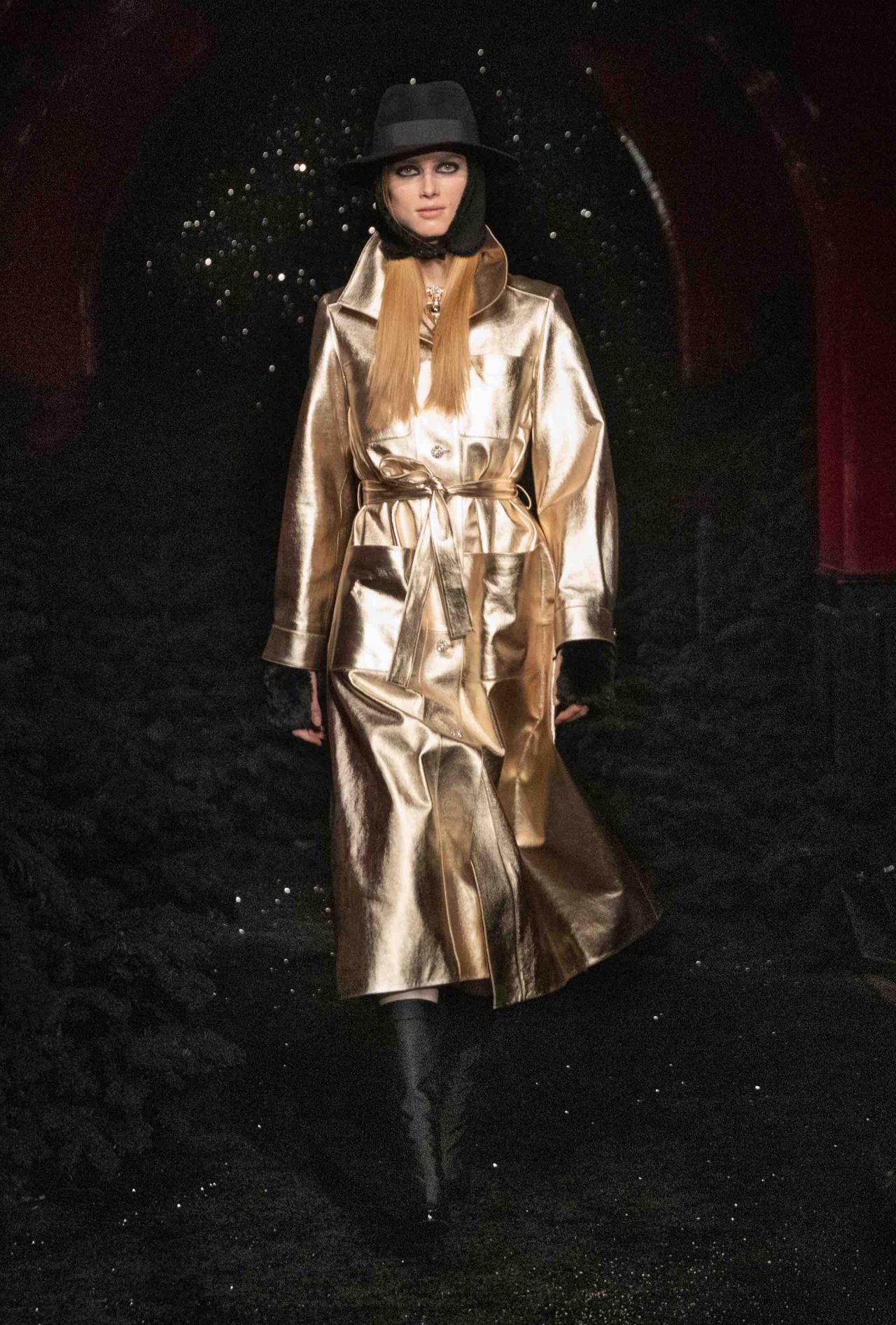 ショーのラストを飾ったのは、ゴールドに輝くトレンチコート。襟を立てて、肩で風を切れば、ガールズナイトに今すぐ乗り込みたくなってしまうようなヒロインルックだ。様々な女性像を描きながら、Virginie Viard の CHANEL はファッションの楽しさやポジティブなエネルギーを伝える。