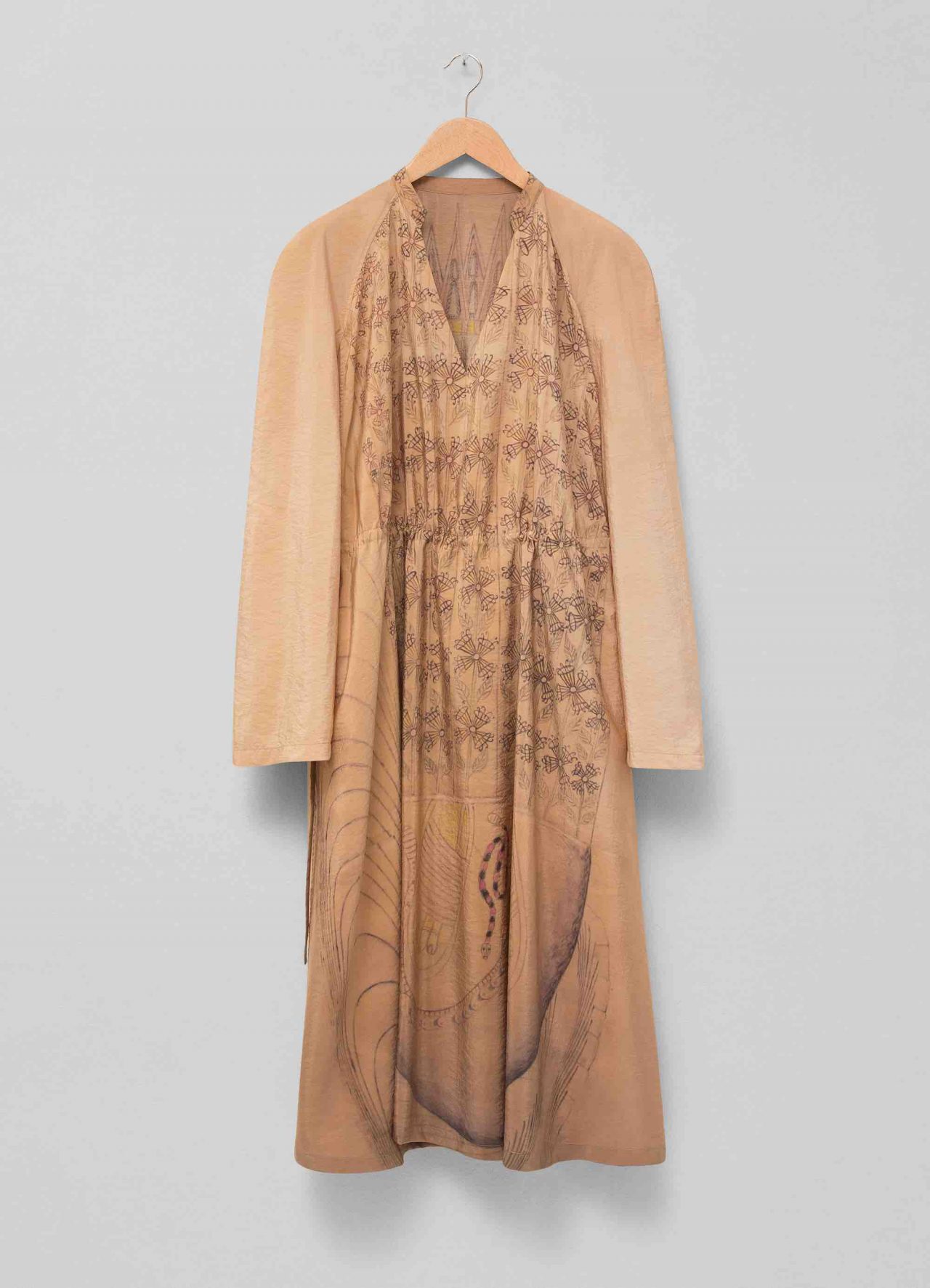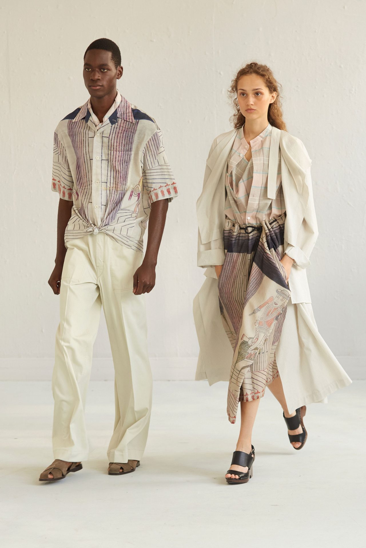 LEMAIRE は誰もが自由と変化を求める現代の空気と共鳴するとして、同氏のドローイング作品「Madonna」、「Boat and Canal」、「Landscape」、「Horse and Rider」、「Horserider」からインスピレーションを得たコレクションを制作。ファブリックのサイズに合わせて原画を忠実に配置したコレクションは、ユニセックスのシャツ、トップス、スカート、ドレス、スカーフ、バッグといった豊富なラインナップで展開される。