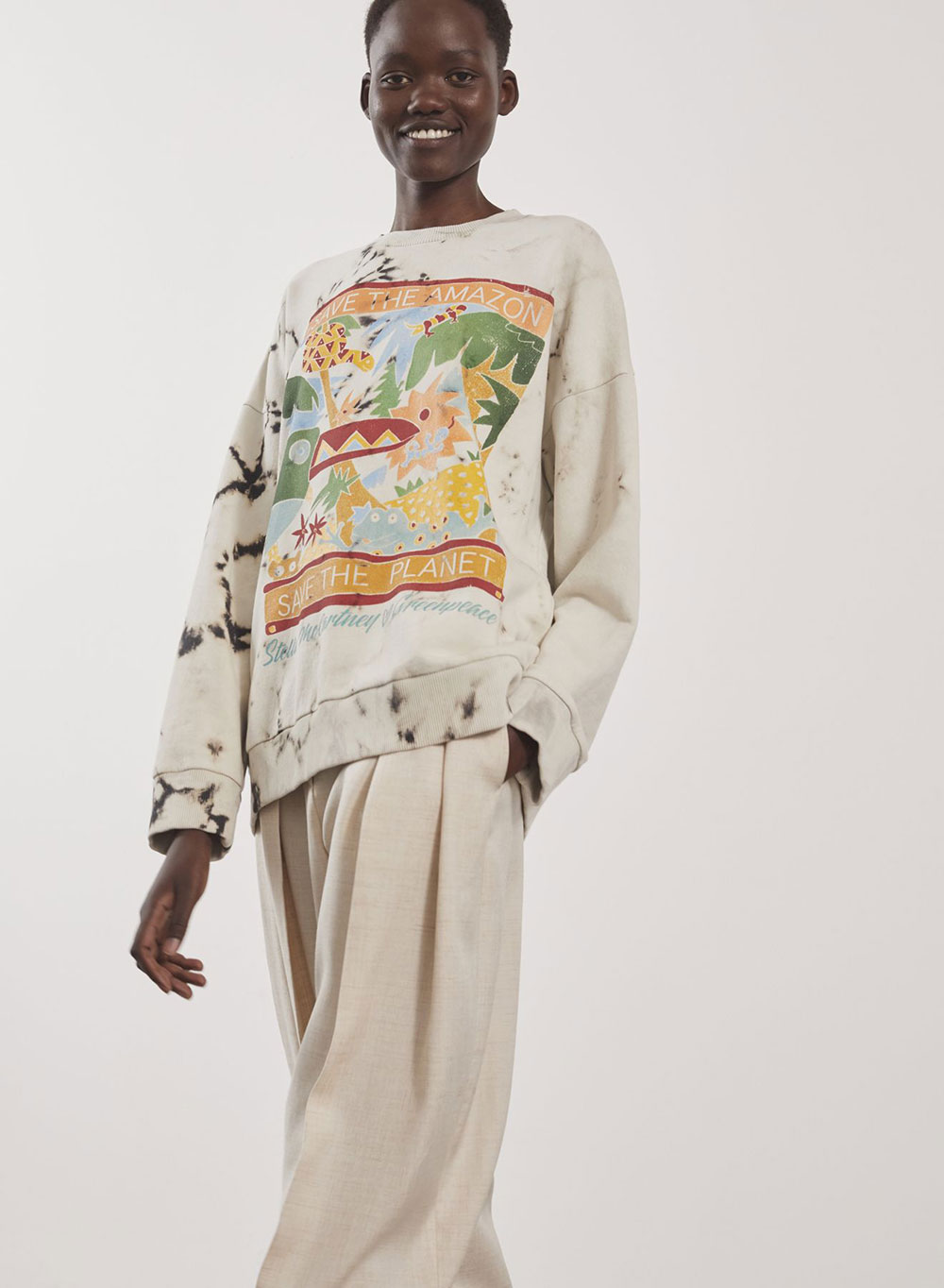 2021年サマーコレクションの一部として展開されるカプセルコレクション「Stella x Greenpeace (ステラ×グリーンピース)」は Stella McCartney の20周年と Greenpeace の50周年という大きな節目を記念して誕生。ラインナップは、ペールブルーやホワイトマーブルカラーのソフトなオーガニックコットンのTシャツ2種類とスウェットシャツ。いずれも、ヴィンテージのエコアクティビストTシャツから着想を得たグラフィックがデザインされている。2021年4月より一部店舗とオンラインストアにて発売中だ。