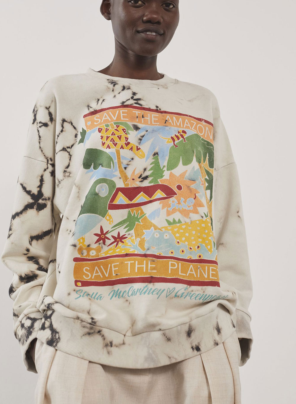「ステラ マッカートニーは、設立当初からベジタリアンブランドであり続けています。ブランドのアニバーサリーを祝すと同時に、私たちが直面している重要な課題への意識向上のため、グリーンピースのような素晴らしい団体をサポートできることは、このうえない誇りです。2021年には、物事がこれまでの日常に戻るのではなく、さらにマインドフルな生活に戻ることを願っています。特に、私たちの決断においてはなおさらです。アマゾンをはじめとする大切な森林は、世界中で販売される食肉や乳製品の生産のために破壊されるべきではありません。日々の食事で摂取する肉を削減することは、アマゾンの森林破壊を防ぎ、生命維持に不可欠なエコシステム、そして地球の気候を未来の世代のために守ることにつながるのです。」