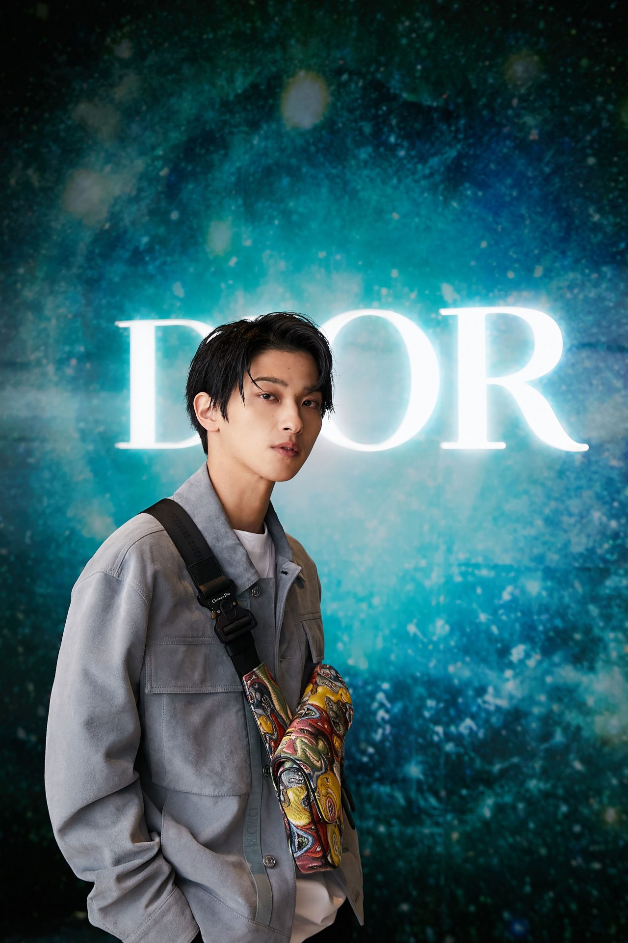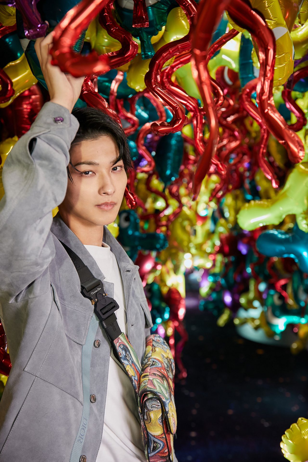 横浜流星はこれからの季節にピッタリなTシャツにスエードのジャケット、アートワークが大胆に描かれた「サドル」バッグをコーディネート。コレクションには、Kenny Scharf の遊び心あふれるキャラクターを落とし込んだエンブロイダリーの「ソフト サドル」バッグの他にも、「ディオール オブリーク」仕立ての「ローラー」バッグ、「B27」スニーカーなどがお目見え。是非ともオンラインで一足先にショッピングを楽しんでほしい。