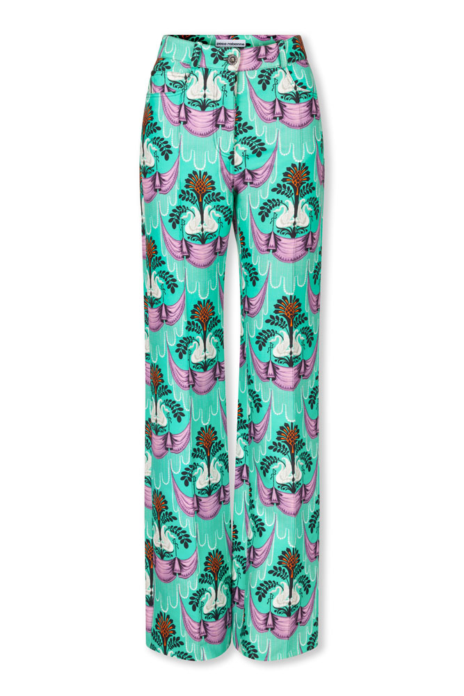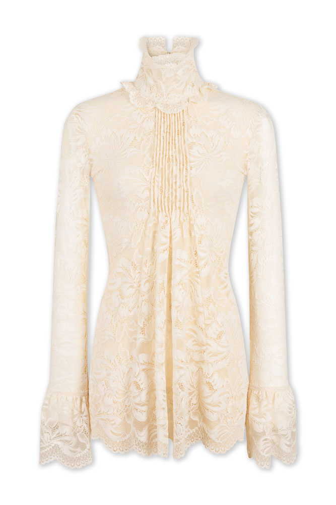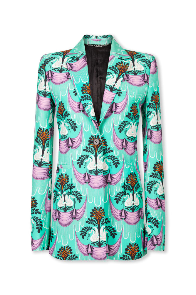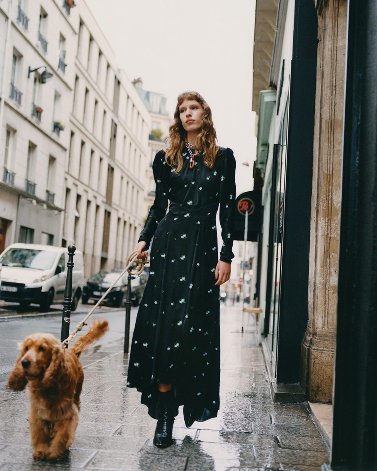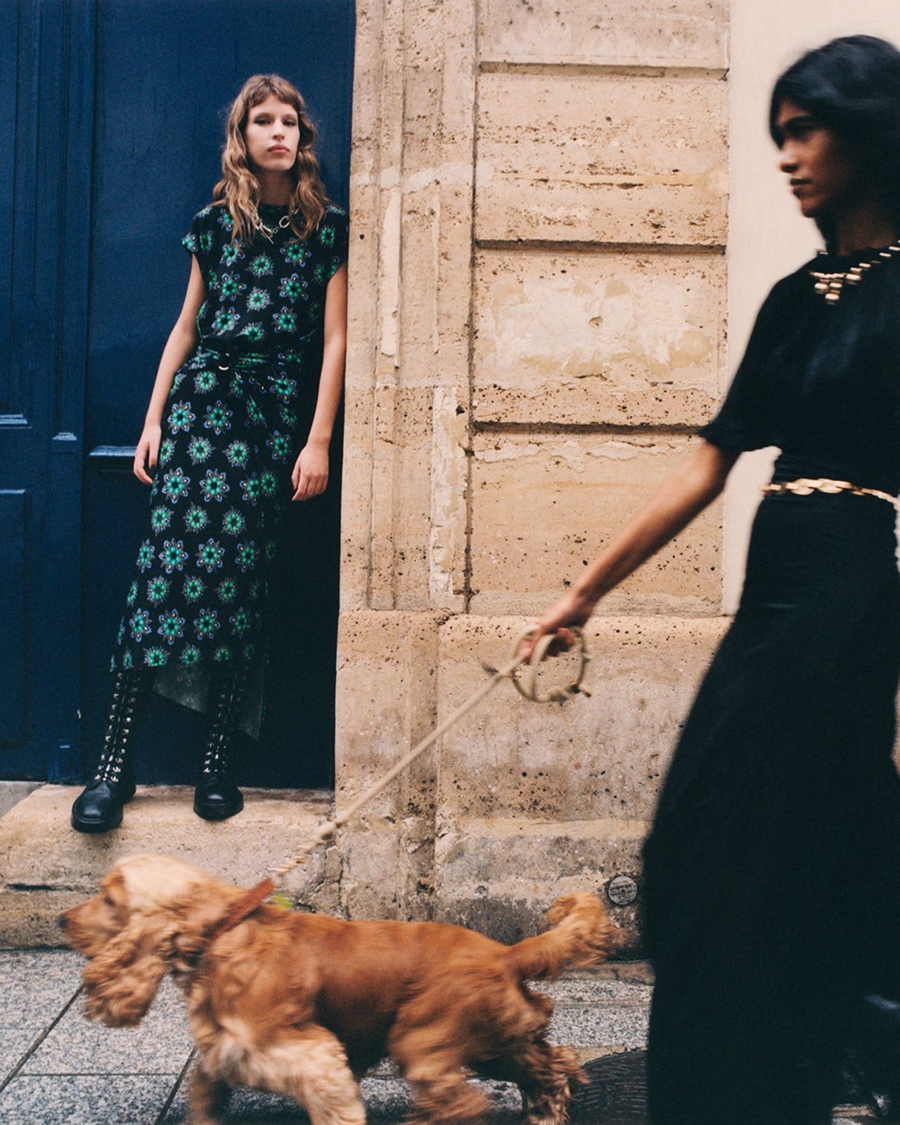 ダイナミックなビジュアルで注目したいのは、Julien Dossena (ジュリアン・ドッセーナ) が、1989年夏にヴェネツィアで開催されたイングランド出身バンド Pink Floyd (ピンク・フロイド) のコンサートからインスピレーションを得たというワードローブの数々。印象的なメタルアクセサリーのレイヤードや飾り気のない着こなしを提案している。ロックなスタイリングと混ざり合ったデコラティブな痕跡が、それぞれのバリエーションで個性を主張し、シルキーな素材とレースのドレスから、パターンスーツのコーディネートまで、印象的でありながら気軽に楽しめる可能性を生み出している。