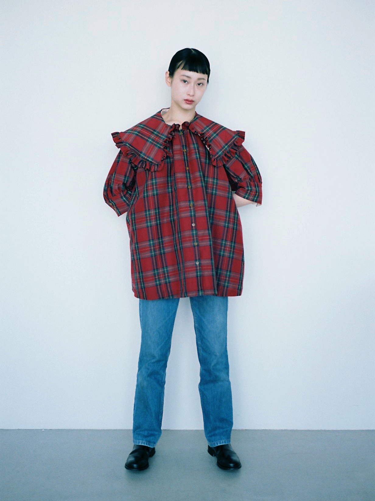 デザイナーの山縣良和が今回デザインイメージとしたのは、昔のチャーチスモックや古い子供用のケープ、ドレスなど。洋服に用いる生地は、本イベントのためだけに山梨産地の生地を特別に用意した。世界から高い評価を得ている生地工房が残る山梨県富士吉田市を訪ね、新たに生地を製作するのではなく、工房で眠ったままいつしか捨てられてしまう生地にもう一度、命を宿す。今の時代だからこそ大切にしたい1着1着に込められた想いを感じる洋服が、本イベントではラインアップされている。