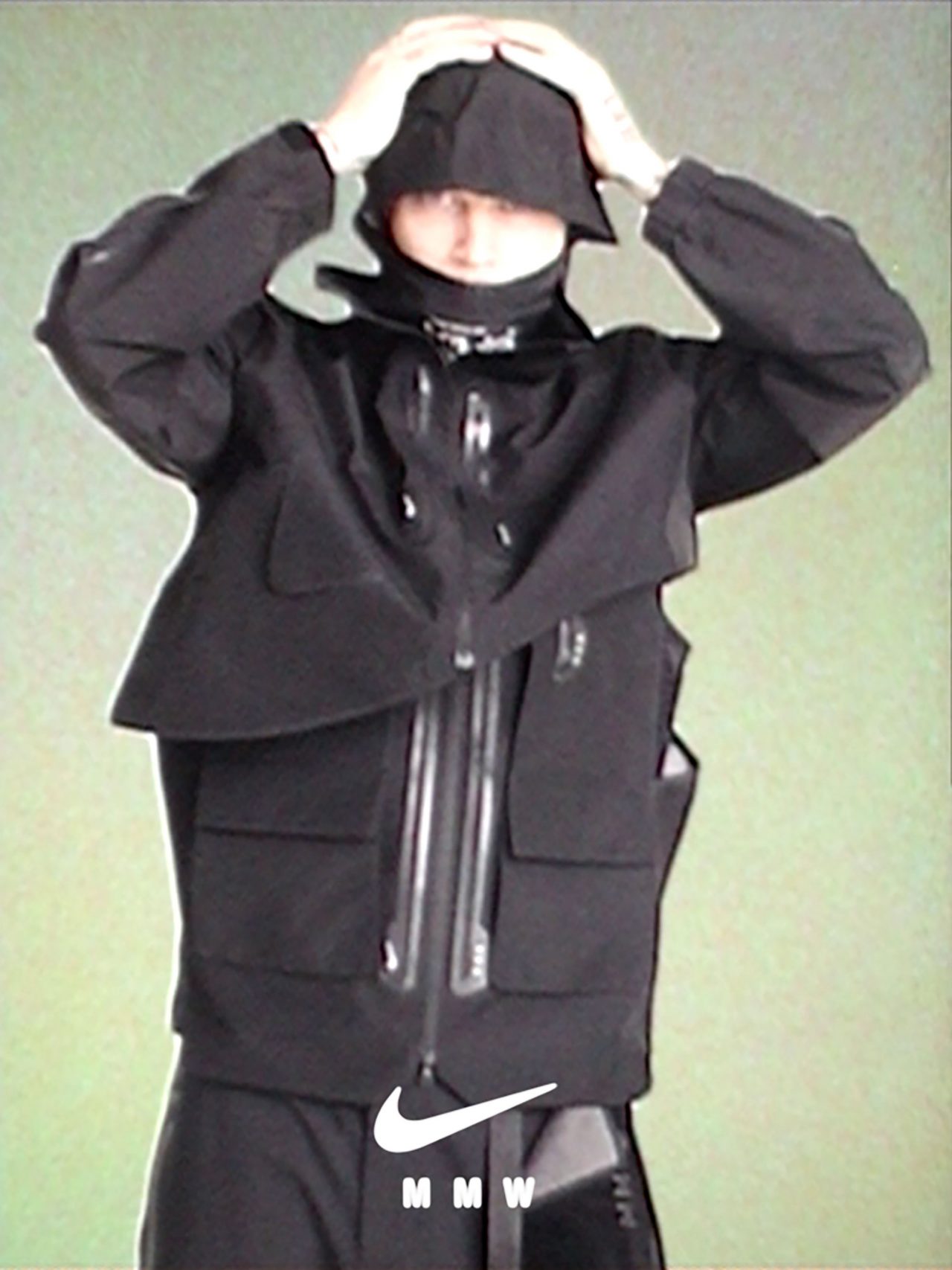 はい!これらは少しこれまでとは異なる感覚の、エキサイティングな印象に仕上がっています。「MMW2.0」では、ジェネラティブ・カモ・ボディスーツを作りました。「MMW4.0」ではそれを復刻しつつも、最初のものは⻑袖だったので今回はショート スリーブにしようと考えました。モジュラージャケットは、本当に汎⽤性に優れています!ジャケットにも、ベストにも、アクセサリーにもなります。Nike「PreCool」の知識を活⽤しつつ、⽔を使った冷却パックをベストの内側に配置しました。様々な気象環境でのトレーニングのために使うことができます。このアイテムが多⽤途に使えるとてもユニークなものであることをとても気に⼊っています。