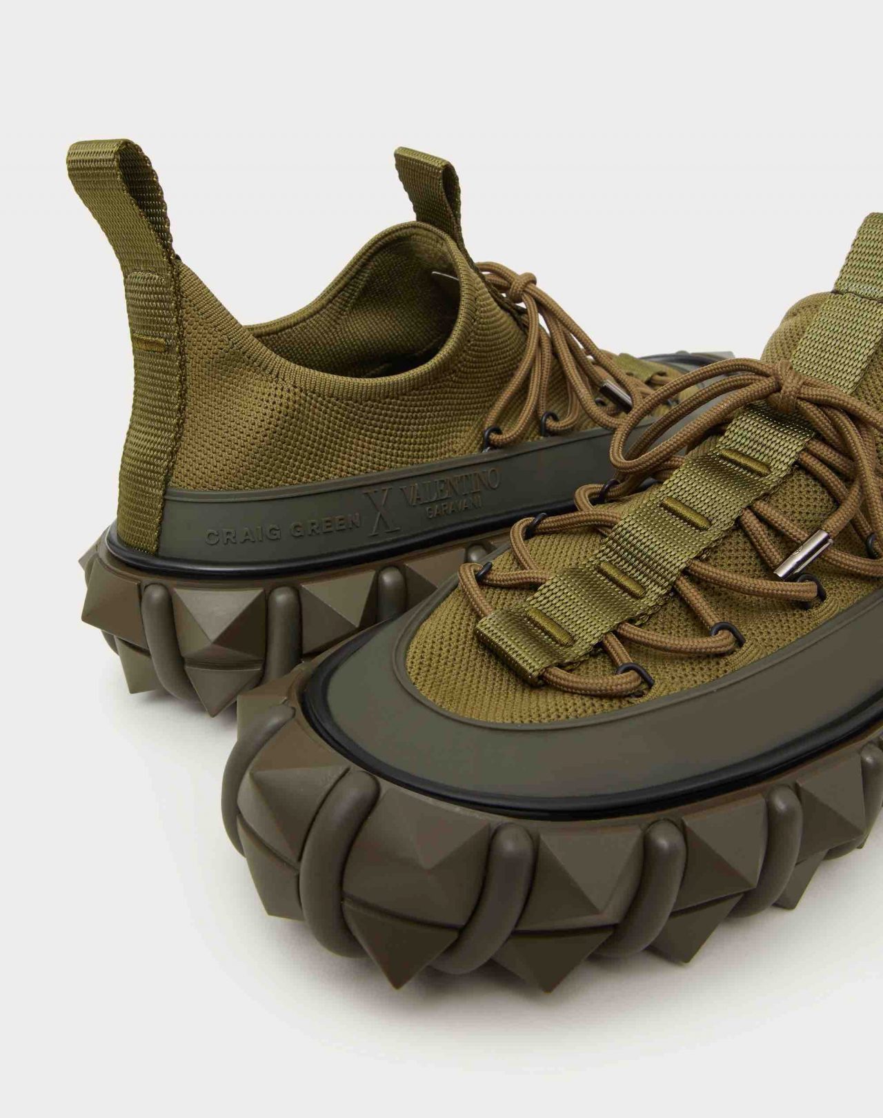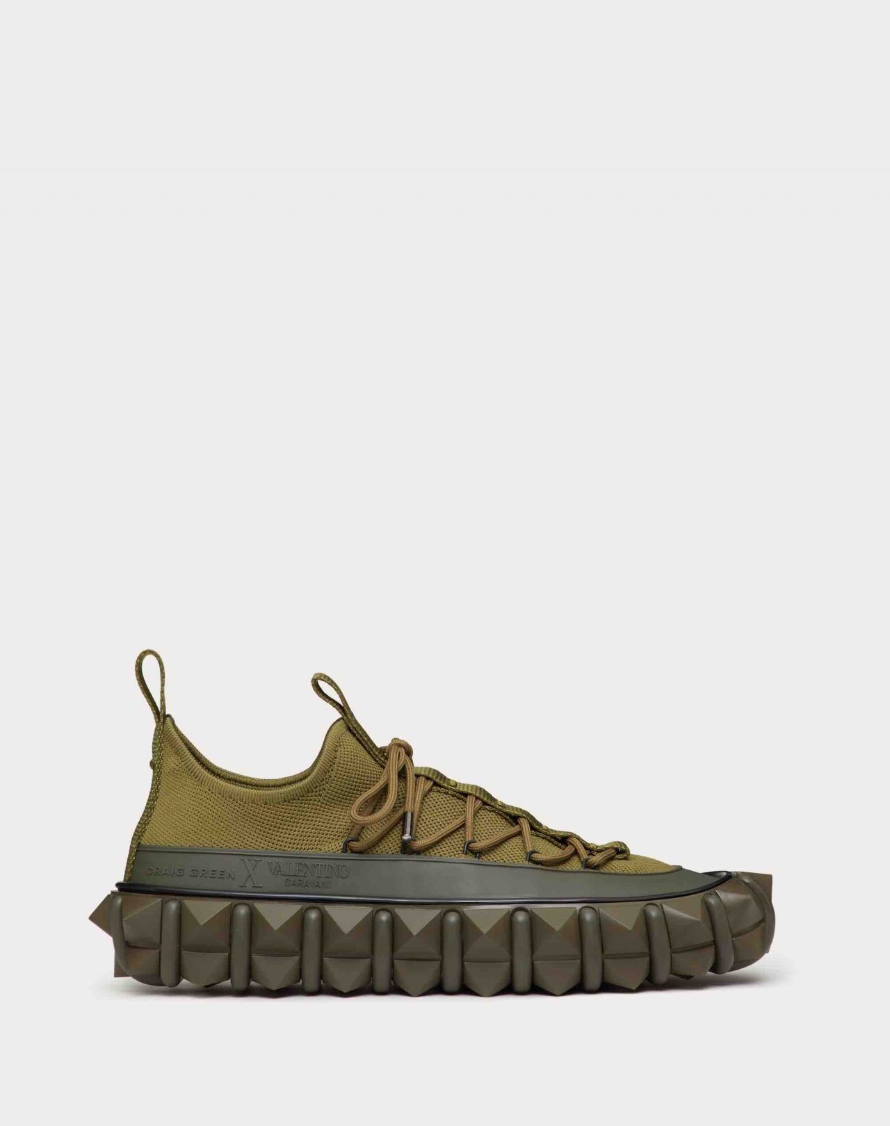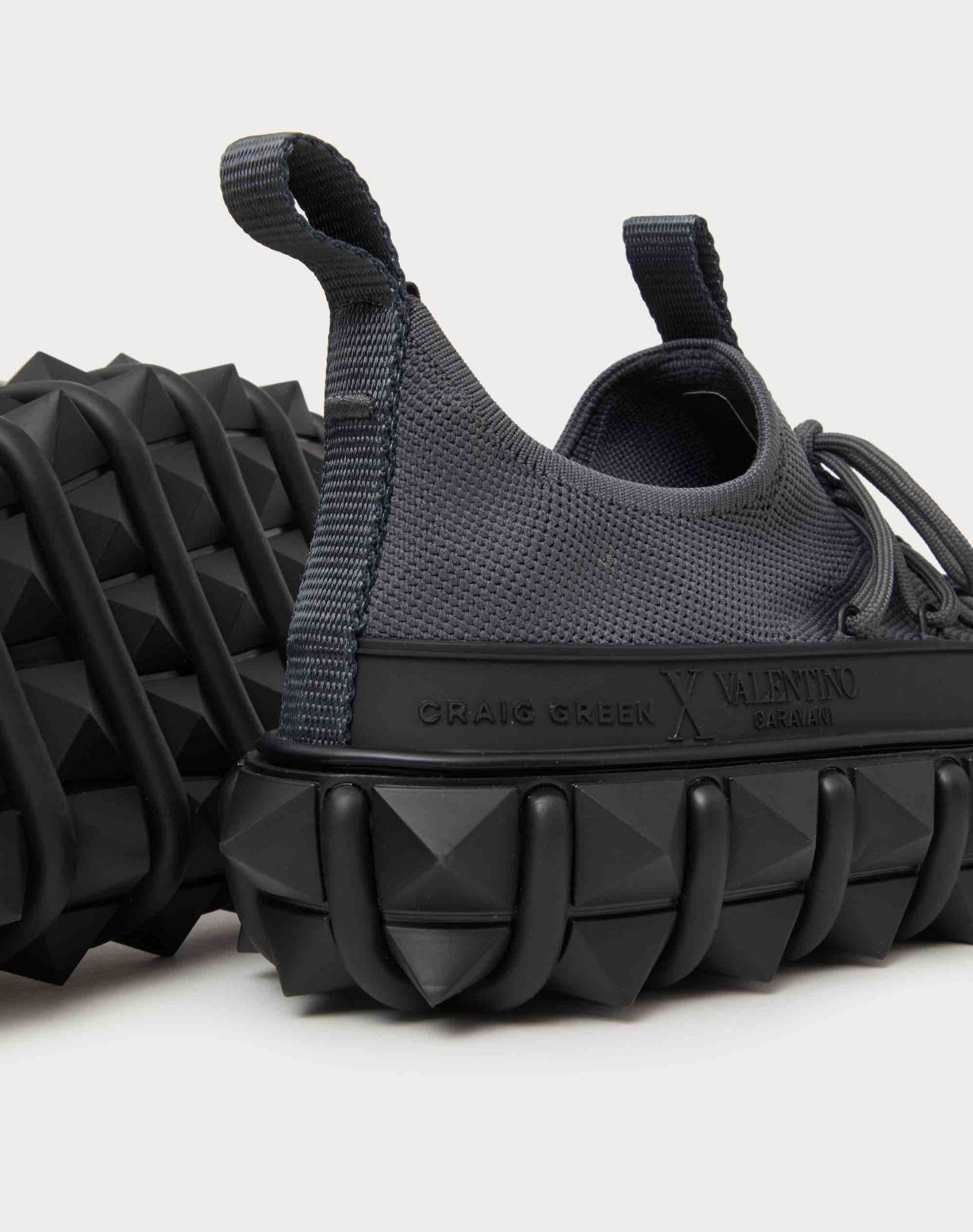 同プロジェクトの幕開けを飾るのが、英国人デザイナー Craig Green とタッグを組んだメンズの限定スニーカー。Pierpaolo Piccioli と Craig Green はスタッズにユニークな解釈を加え、マキシサイズのロックスタッズを採用。まるで彫刻作品かのような存在感を放つソールが完成した。装飾的な側面だけでなく、機能的な側面をあわせ持つこのスニーカーは、ブラック、ライトアイボリー、アーミーグリーン、ディープグレーの4色で展開される。日本国内では、DSMG の実店舗とオンラインショップ「DSMG E-SHOP」のほか、阪急メンズ大阪にて開催中のメンズスニーカー ポップアップストア(6/15まで)にて先行発売。6月14日より Valentino 表参道、Valentino 伊勢丹新宿店メンズ館、Valentino の公式サイトでも発売がスタートする予定だ。