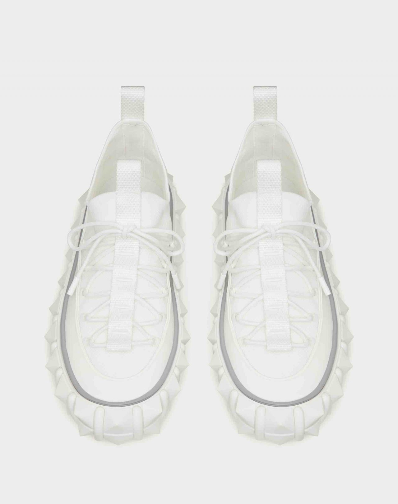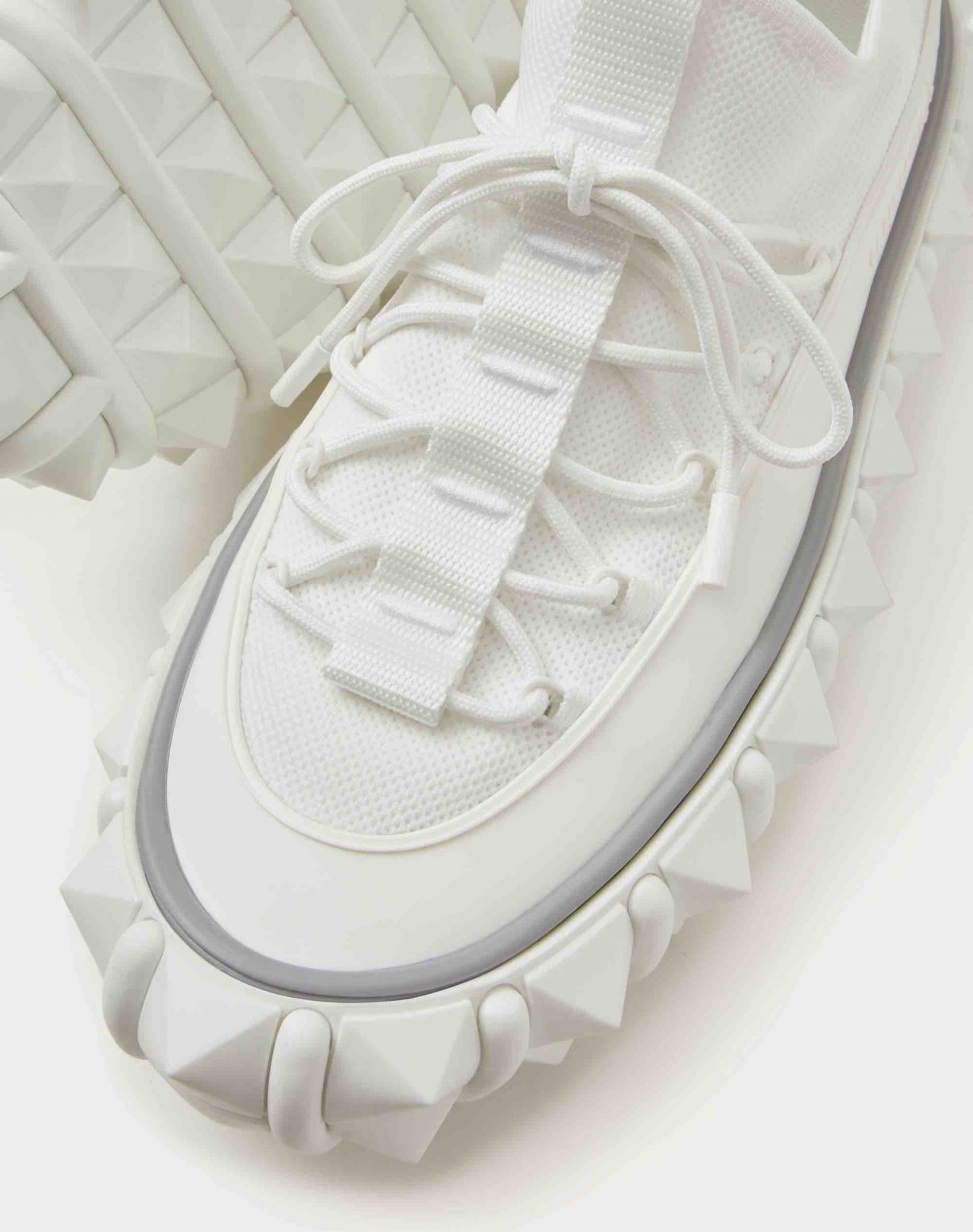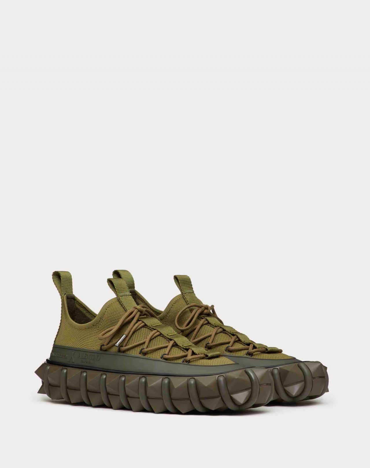 同プロジェクトの幕開けを飾るのが、英国人デザイナー Craig Green とタッグを組んだメンズの限定スニーカー。Pierpaolo Piccioli と Craig Green はスタッズにユニークな解釈を加え、マキシサイズのロックスタッズを採用。まるで彫刻作品かのような存在感を放つソールが完成した。装飾的な側面だけでなく、機能的な側面をあわせ持つこのスニーカーは、ブラック、ライトアイボリー、アーミーグリーン、ディープグレーの4色で展開される。日本国内では、DSMG の実店舗とオンラインショップ「DSMG E-SHOP」のほか、阪急メンズ大阪にて開催中のメンズスニーカー ポップアップストア(6/15まで)にて先行発売。6月14日より Valentino 表参道、Valentino 伊勢丹新宿店メンズ館、Valentino の公式サイトでも発売がスタートする予定だ。