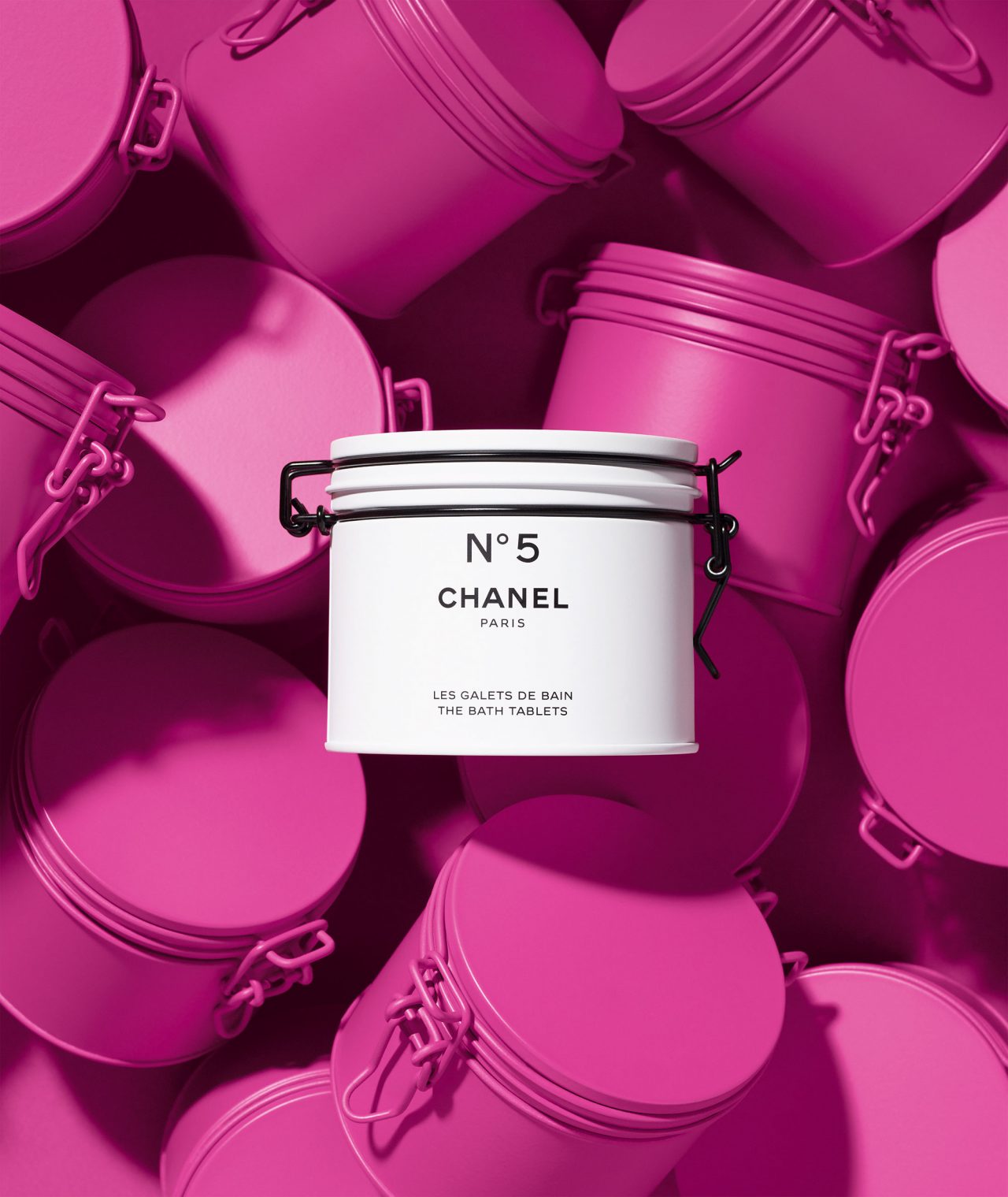 ラインアップは全17種。オイル缶に入ったボディ オイル、絵の具のチューブのような形をしたボディ クリーム、紅茶の保存缶入りバス タブレットなど、日々の暮らしに寄り添う身近なアイテムが揃う。N°5 のオードゥ パルファムがブリスターパックの特別パッケージでお目見えするなど、ポップアートのアプローチを思わせる佇まいが CHANEL らしくも斬新だ。N°5 の変わらない美学を感じるラインアップは、コレクターズ アイテムとなること必至。