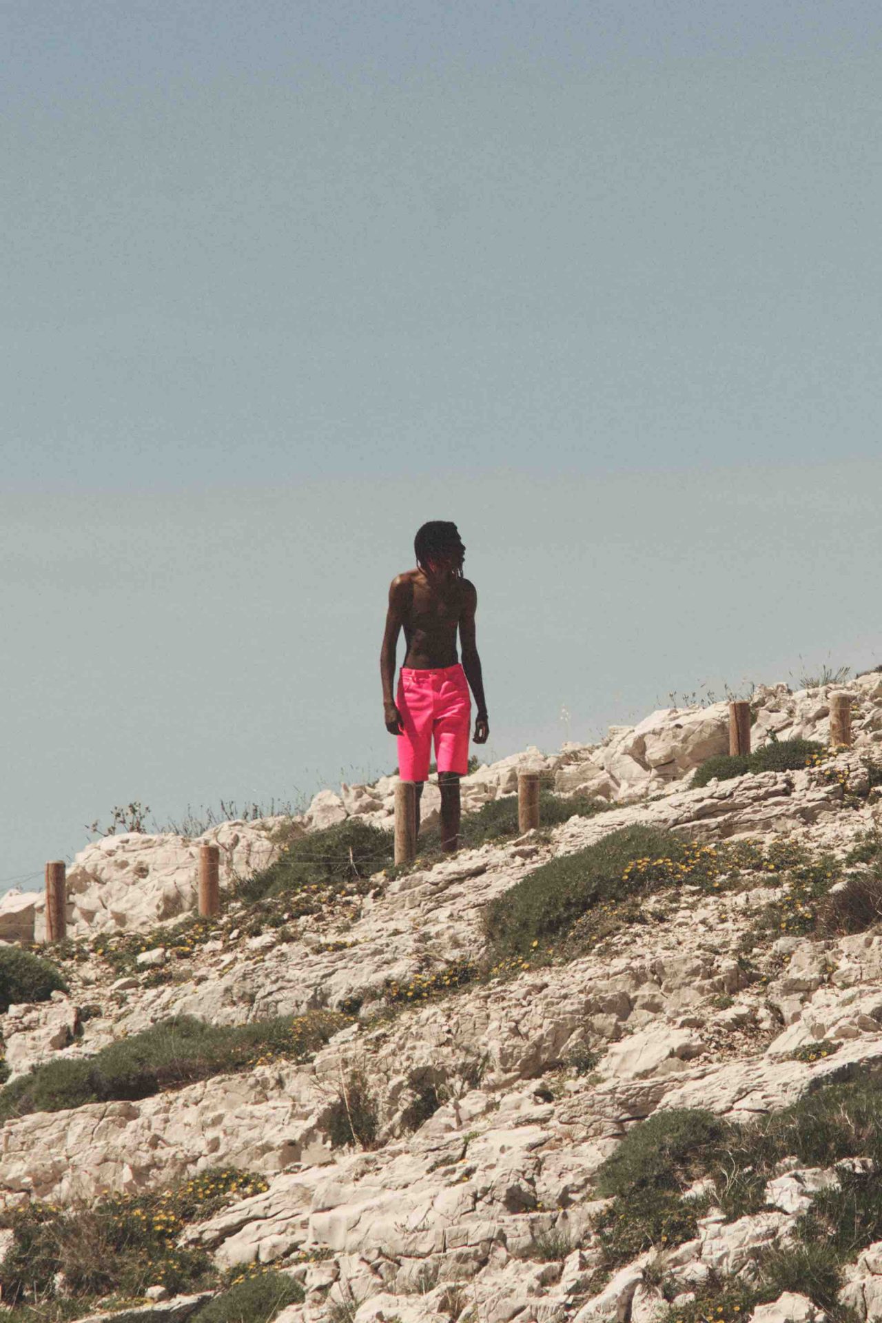 心躍るような現実逃避、希望、そして楽観主義をテーマにした LOEWE の2022年春夏メンズコレクション。常にポジティブなメッセージを発信してきた LOEWE だが、ようやくコロナ禍にも希望の兆しが見えてきた今、より自由かつ開放感に溢れたムードがコレクションを包み込んでいる。今回、Jonathan Anderson がその喜びを表現するためタッグを組んだのは、イギリスの写真家 David Sims (デヴィッド・シムズ)。バスケットボールコートや岩の上、倉庫内や家屋といった様々なシチュエーションで本コレクションを纏った個性豊かなキャラクターたちを撮影した抽象的なスナップショットと異なる視覚的要素を組み合わさることで、アバンギャルドかつインパクト抜群なビジュアルが完成した。