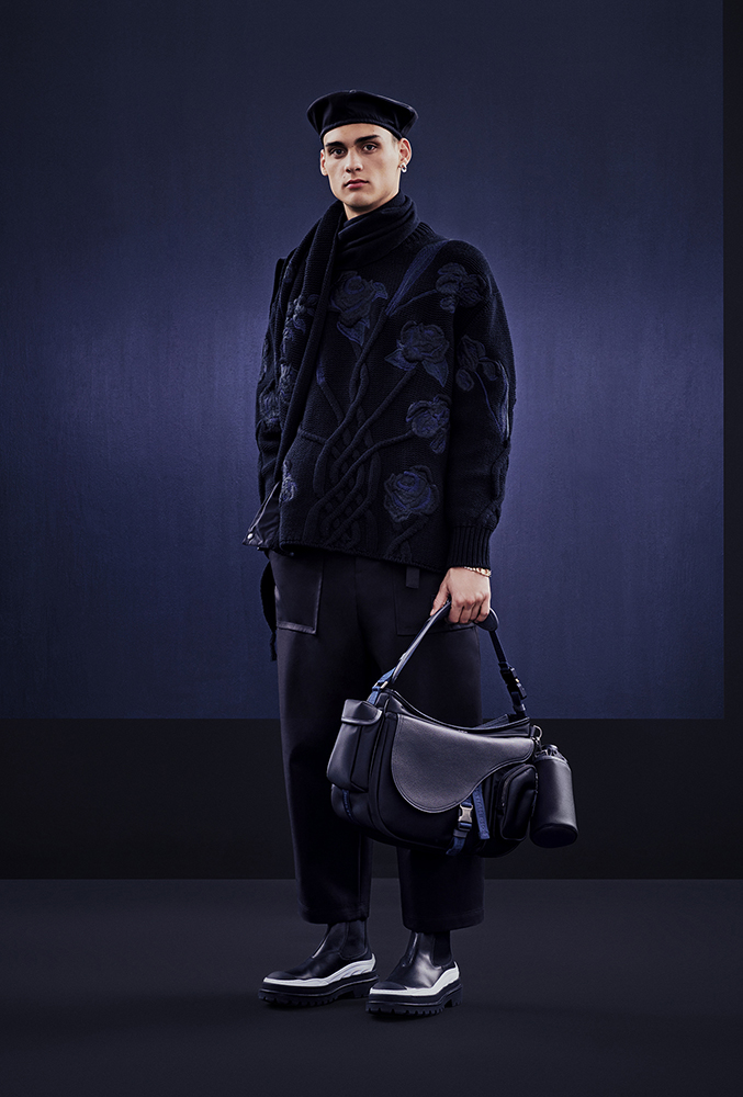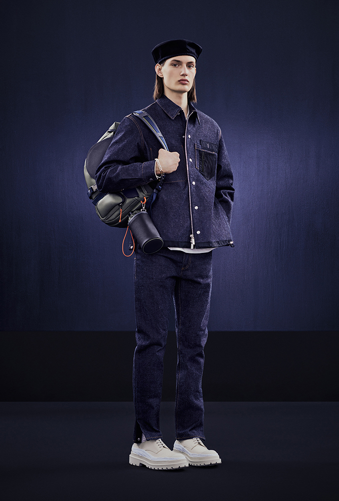オーバーコートや「テイラー オブリーク」といった DIOR らしいシルエットには、sacai の世界から取り入れた素材や技術が用いられ、日本製のデニムには、洗練されたクチュールのタッチを取り入れながらワークウェアのシルエットと実用的なディテールを採用。また DIOR のアイコニックな「サドル」バッグは、ポケットやドローストリングといった実用的な装飾が施され、ボンバージャケットを思わせるオリーブとオレンジの鮮やかなカラーで展開する。他にも、ソールを大胆にレイヤーした「ディオール スノー」と「ディオール エクスプローラー」ブーツや、sacai のシグネチャーでもあるパールをあしらった ”CD” アイコンロゴのジュエリーもラインナップ。