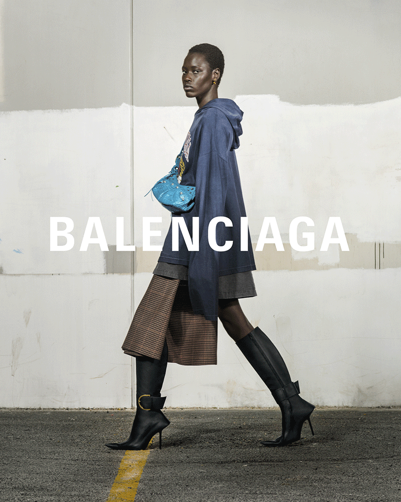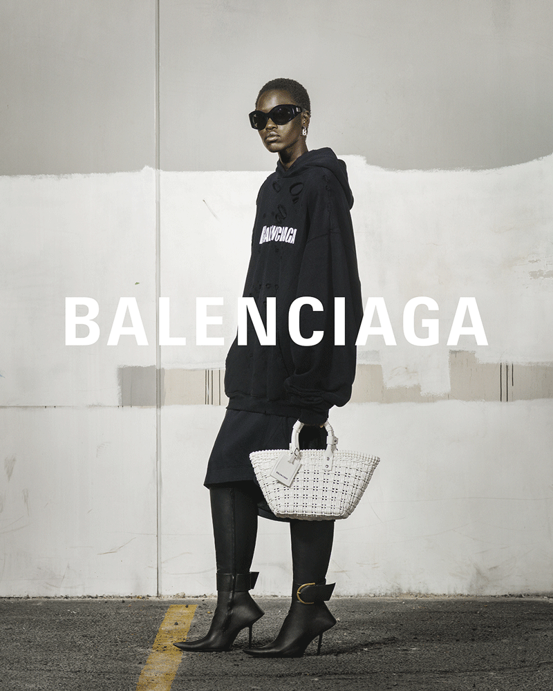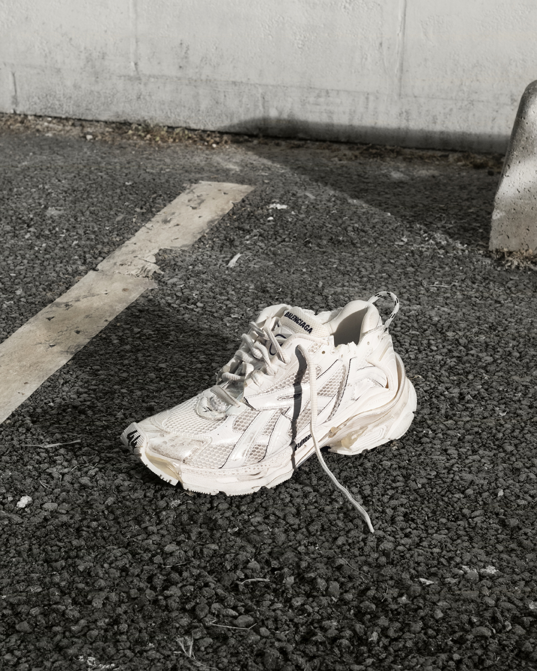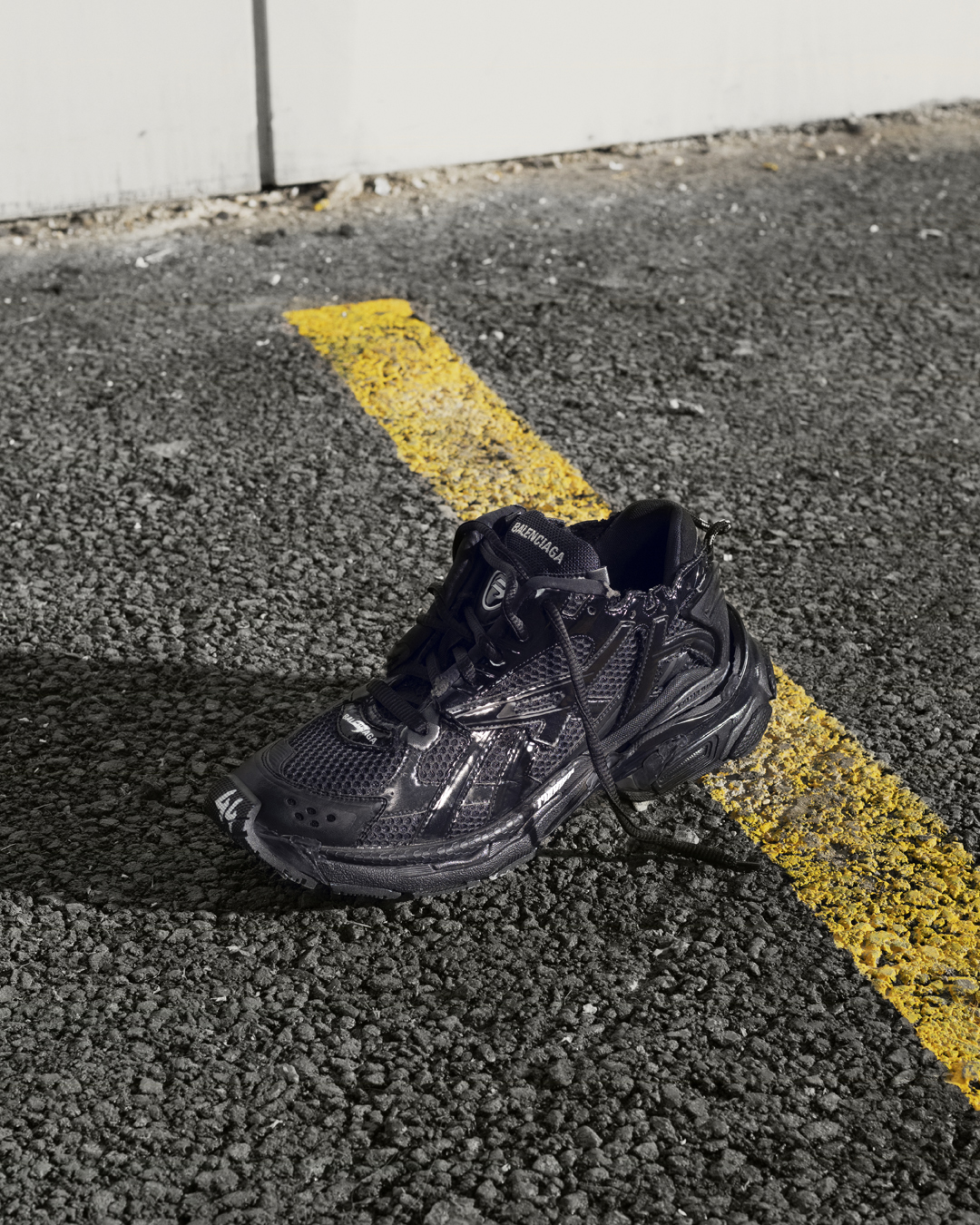 新たに BALENCIAGA のスニーカーファミリーに加わった新作「Runner (ランナー)」もビジュアル内に登場。注目したいのは、カットアンドペーストされ、接着剤の跡などがそのままデザインに組み込まれたハンドメイドのような外観。豊富なカラーバリエーションで展開される。現在、BALENCIAGA の直営店と一部取扱店舗および、公式オンラインストアにて発売中だ。