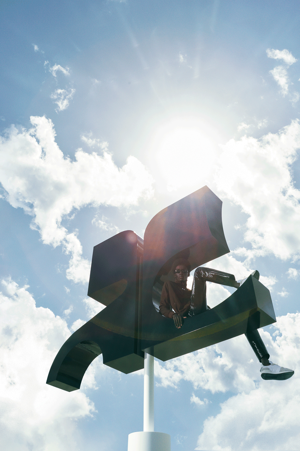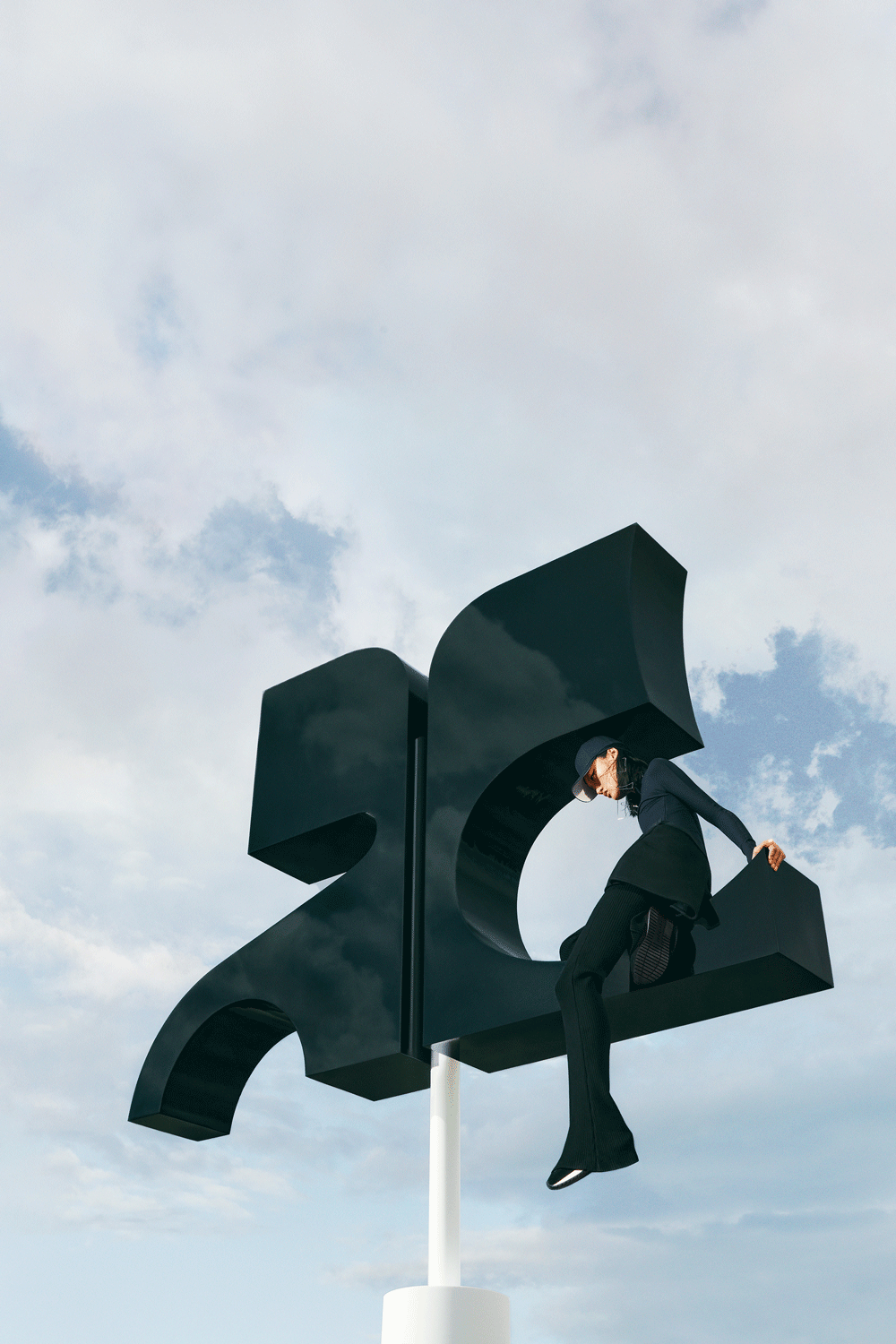 2021年3月、パリ郊外のオーベルヴィリエにあるカウンターカルチャーの中心地 La Station -Gare des Mines (ラ・スタッション・ガール・デ・ミネ) にて発表された2021-22年秋冬コレクション。Courrèges らしさを残しつつ、Nicolas Di Felice が解釈するモダンなテイストが加わり、ブランドを新たなチャプターへと導いた。会場となったのは、産業廃棄物の中に出現した白一色のキューブ。ブランドの歴史とニューウェイヴとが調和したウェアを身に纏ったモデルたちが白い壁面を歩いた。ショーのフィナーレでは、壁をよじ登ったり、ブランドロゴに登る演出が目を引いた。本キャンペーンにも、大空の中ブランドロゴに登る構図が採用。ランウェイを思い起こすビジュアルに仕上げられている。