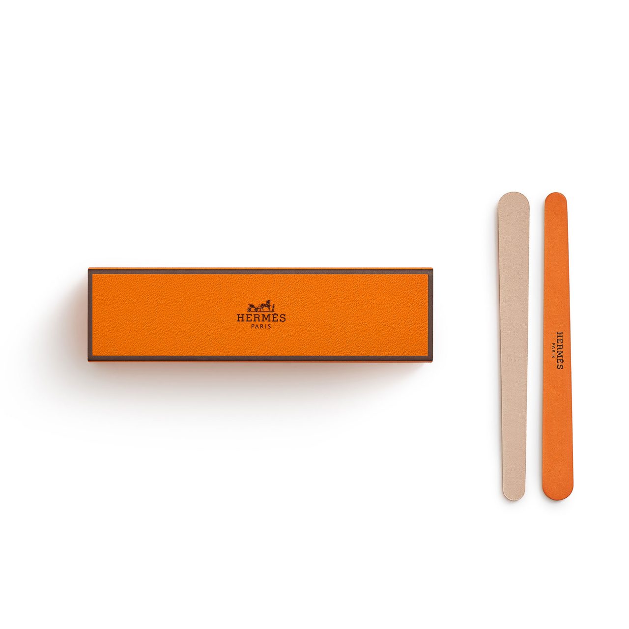 ハンドクリームはまず塗布した瞬間、これまでにない香りの美しさに唸らされる。HERMÈS のキー成分となっているホワイトマルベリーエキスをはじめ、サンダルウッド・アルニカ、ローズウォーター、ウッディパチョリを調香しており、落ち着いて上品な香りが男性にも好まれそう。オーガニック シアバター配合の高保湿力がありながら、スーッと馴染んでベタつきを残さない。仕事中に使っても快適と、HERMÈS の革職人たちの間でも好評だとか。このほか、ポプラ材を使用したネイルファイルも用意。小回りの効くサイズで、思い通りの形に整えることができる。