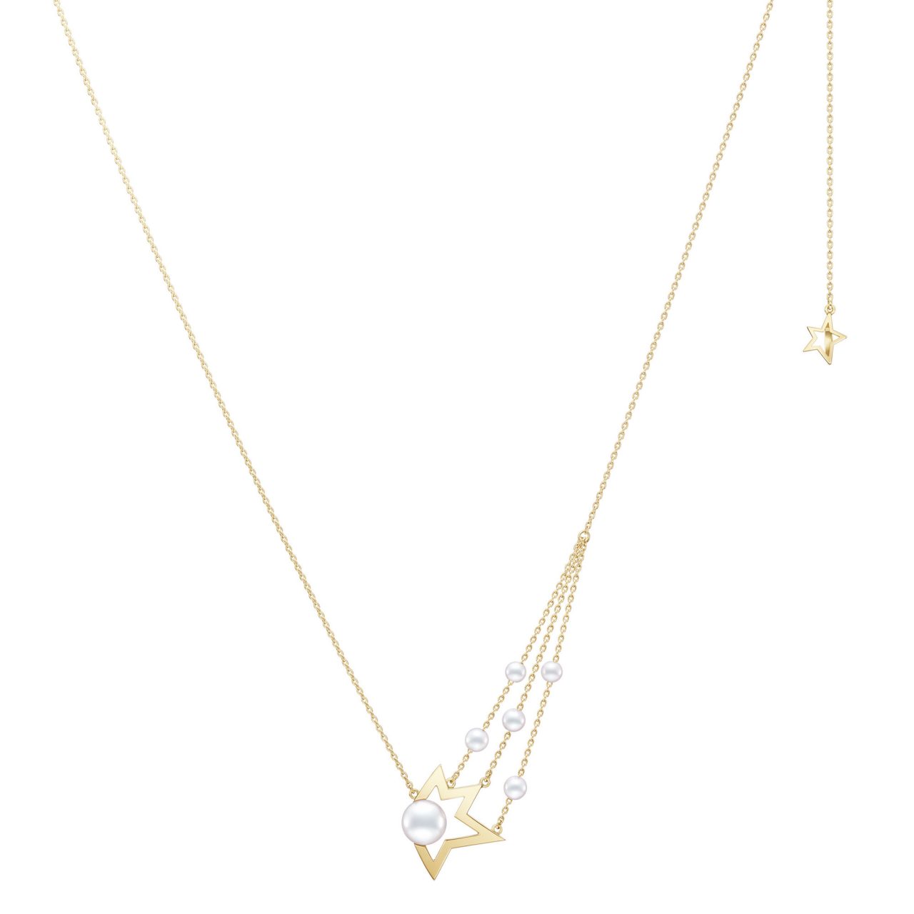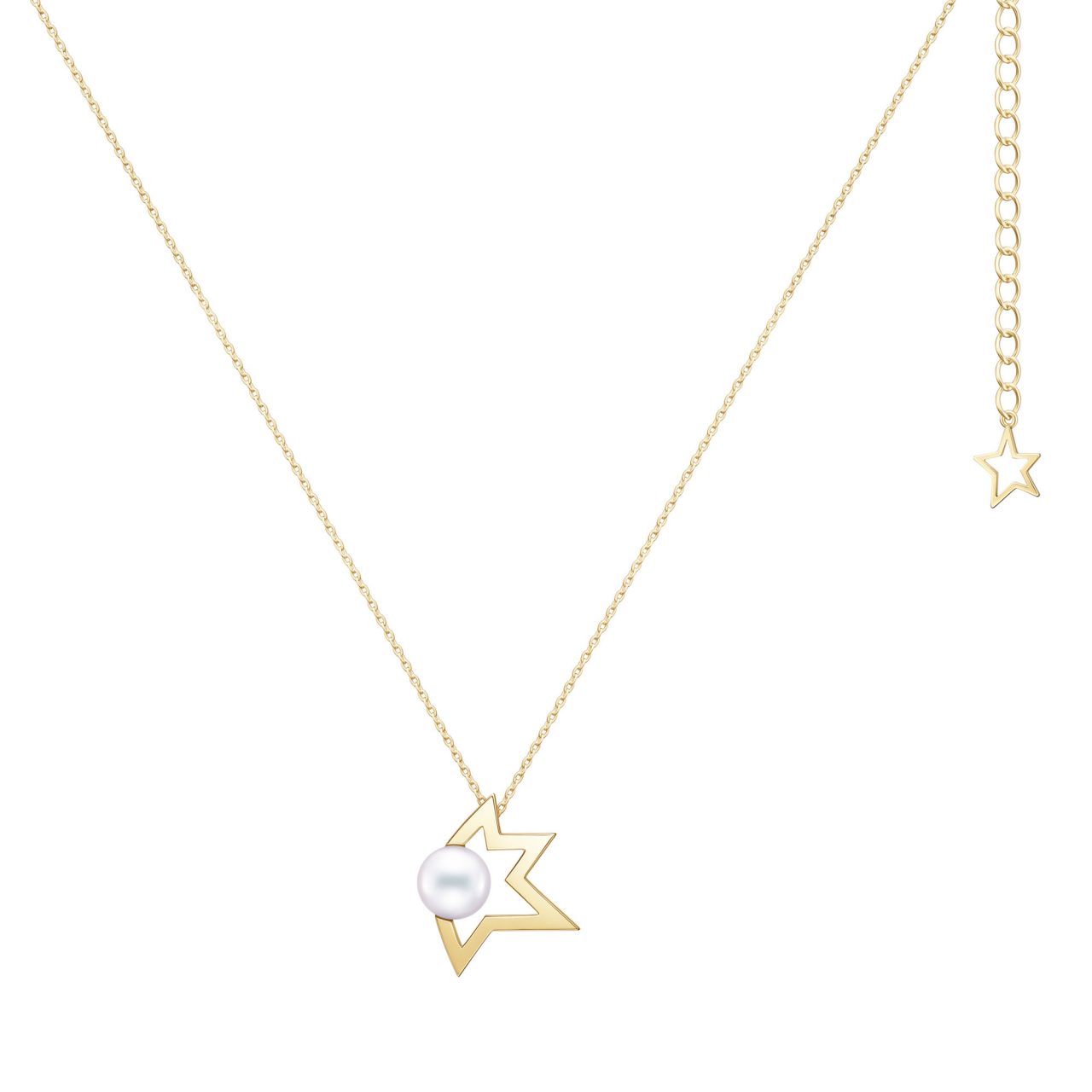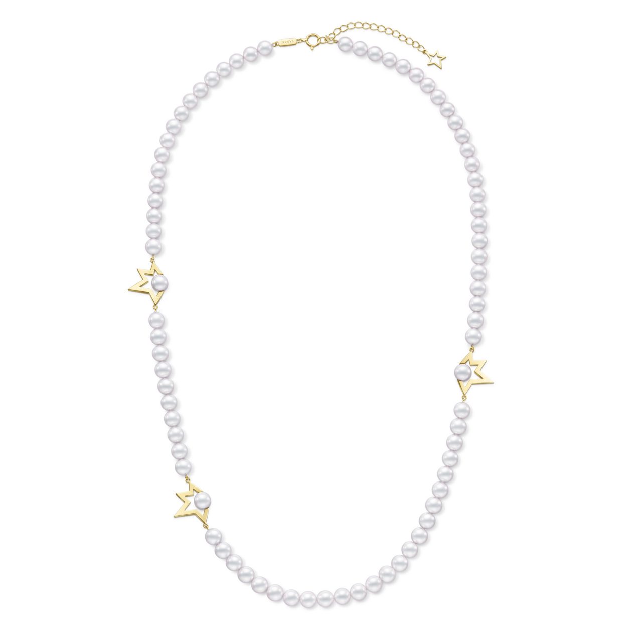 もうひとつ、シリーズ初となるのがパールネックレス(60㎝)。連の合間3箇所にパールを抱いた星のモチーフが入り、ミニマルでありながらプレイフルなスタイリングが楽しめそう。一方、ゴールドチェーンのネックレスは、流れる彗星の尾までデザインされていて、胸元で揺れるたびに繊細な煌めきを放つ。
