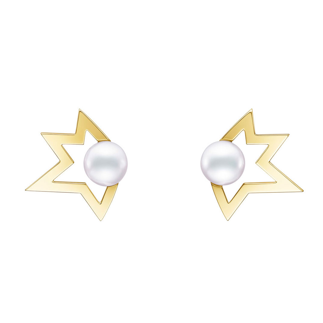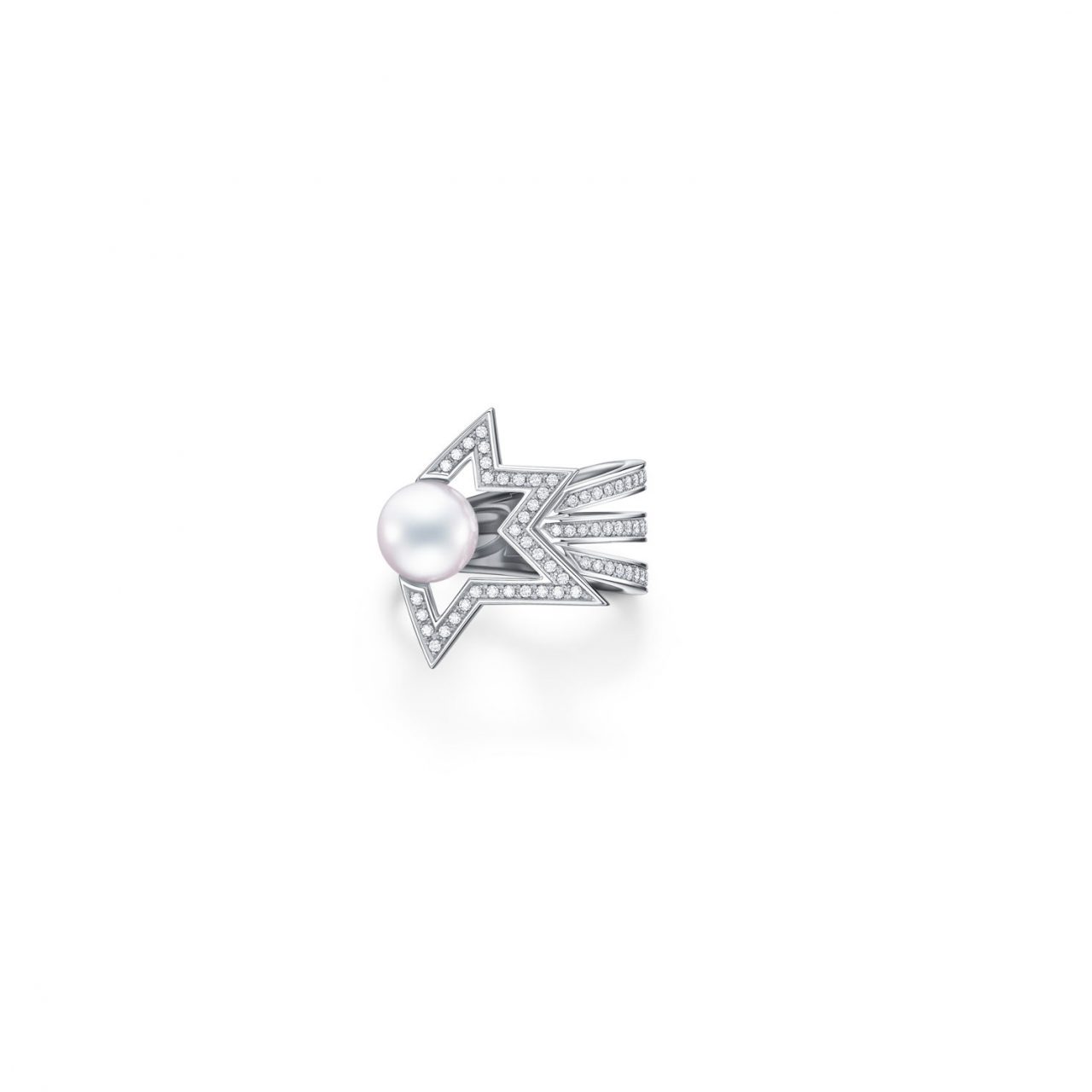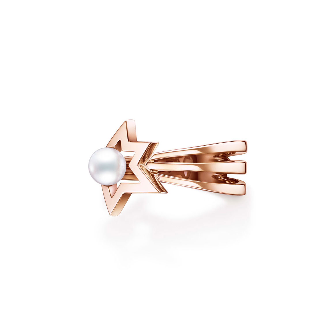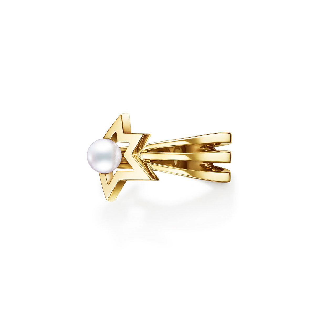 「comet plus(コメット プラス)」 は、広大な宇宙を流れる彗星がモチーフ。グラフィカルでミニマルなゴールドのデザインに、パールが優美に寄り添う。今年はシリーズ初となる SAKURAGOLD™ のジュエリーも登場。