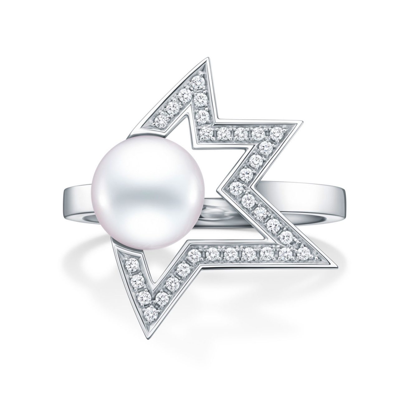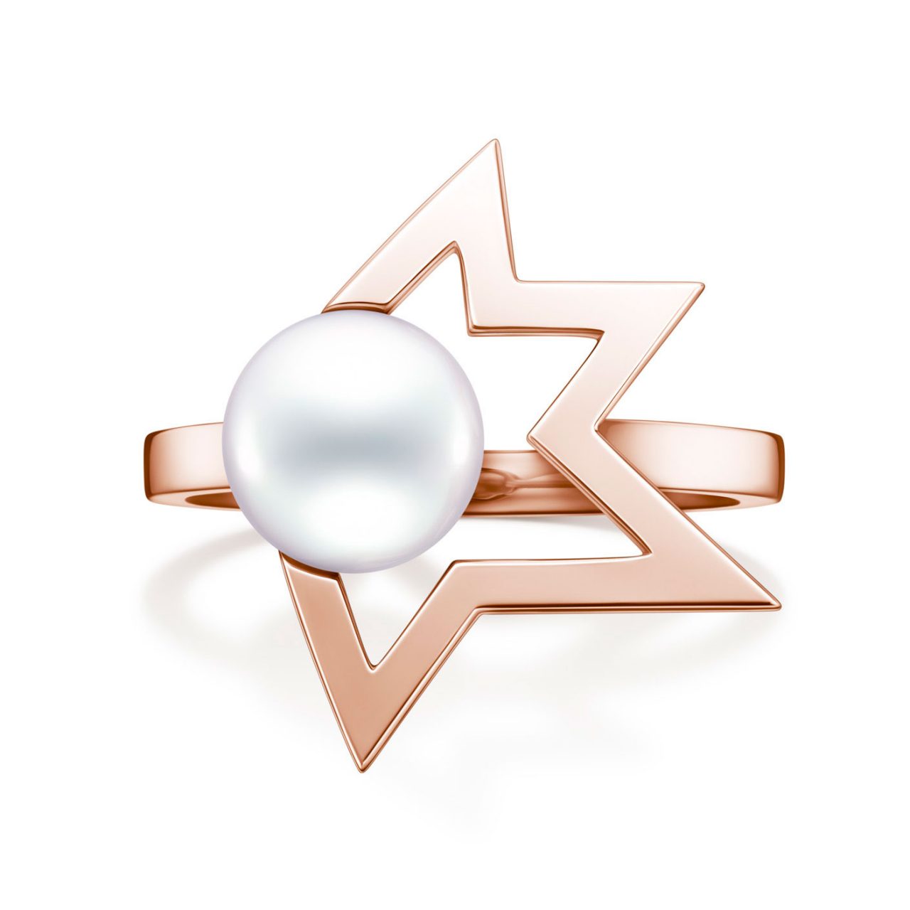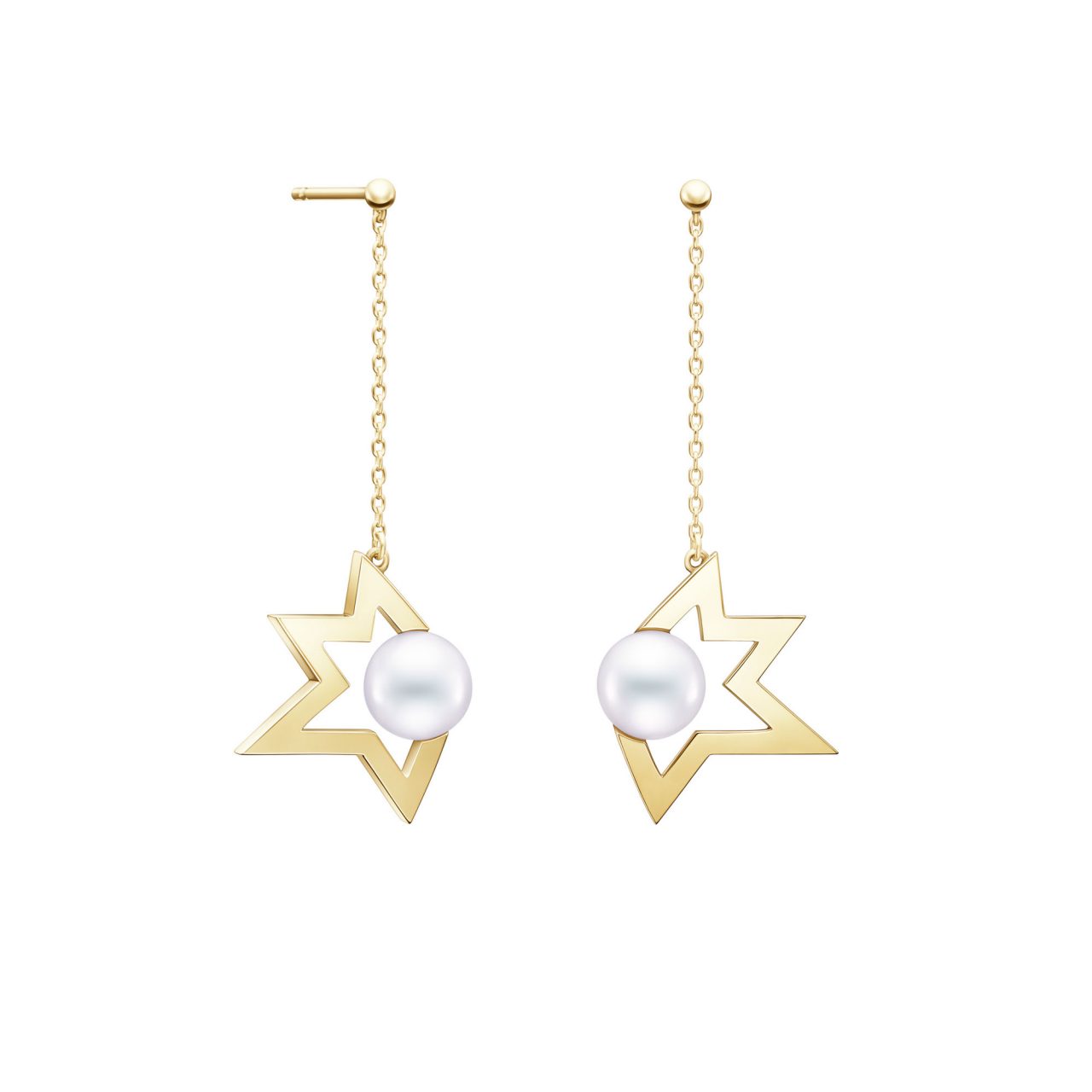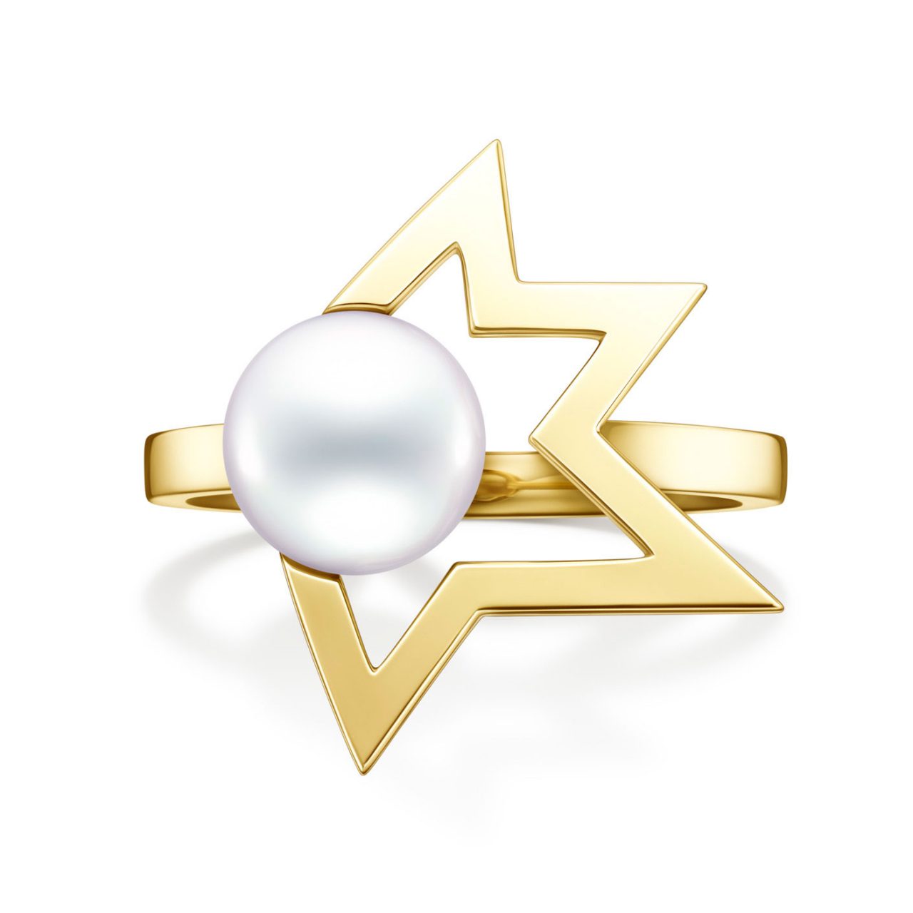 「comet plus(コメット プラス)」 は、広大な宇宙を流れる彗星がモチーフ。グラフィカルでミニマルなゴールドのデザインに、パールが優美に寄り添う。今年はシリーズ初となる SAKURAGOLD™ のジュエリーも登場。