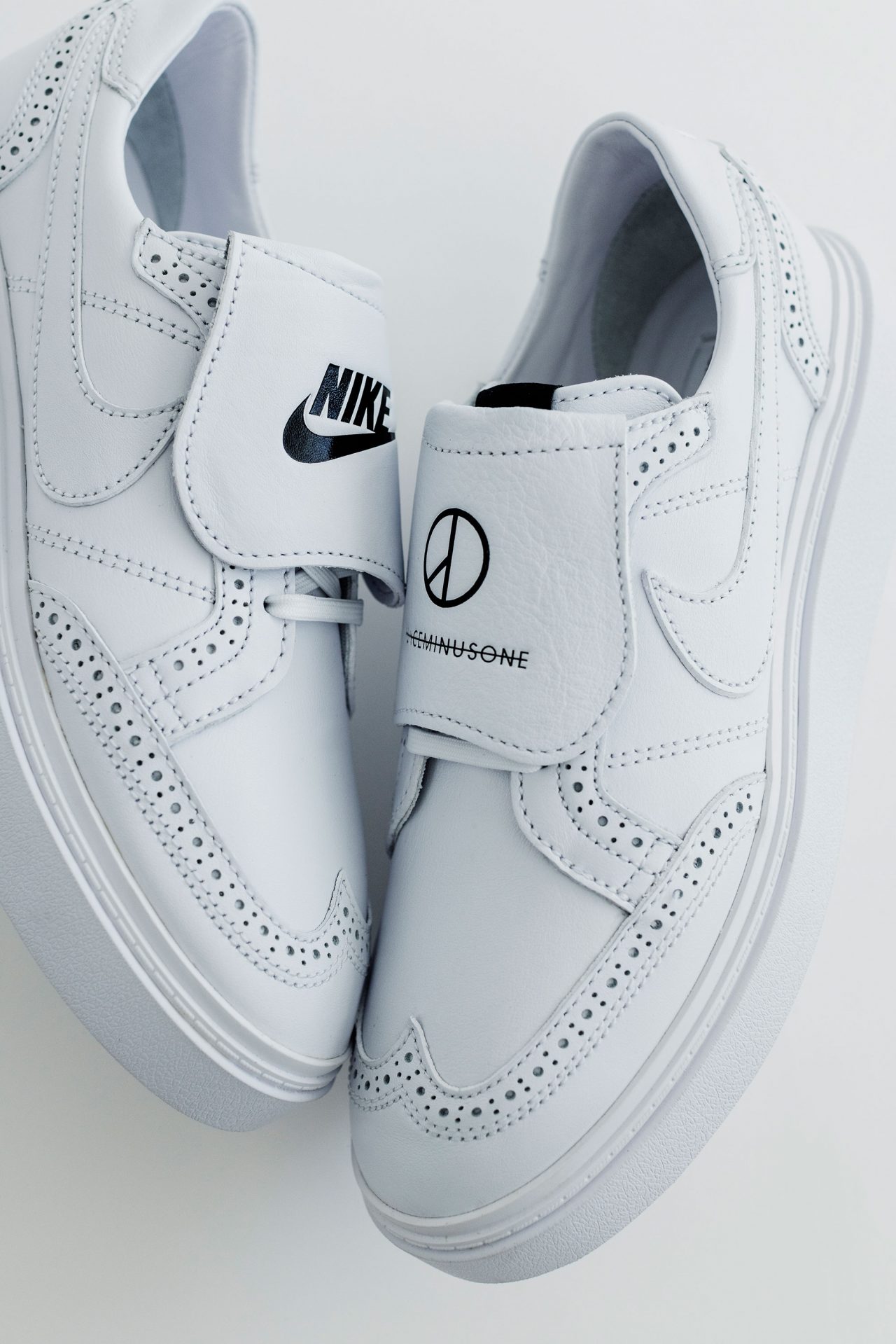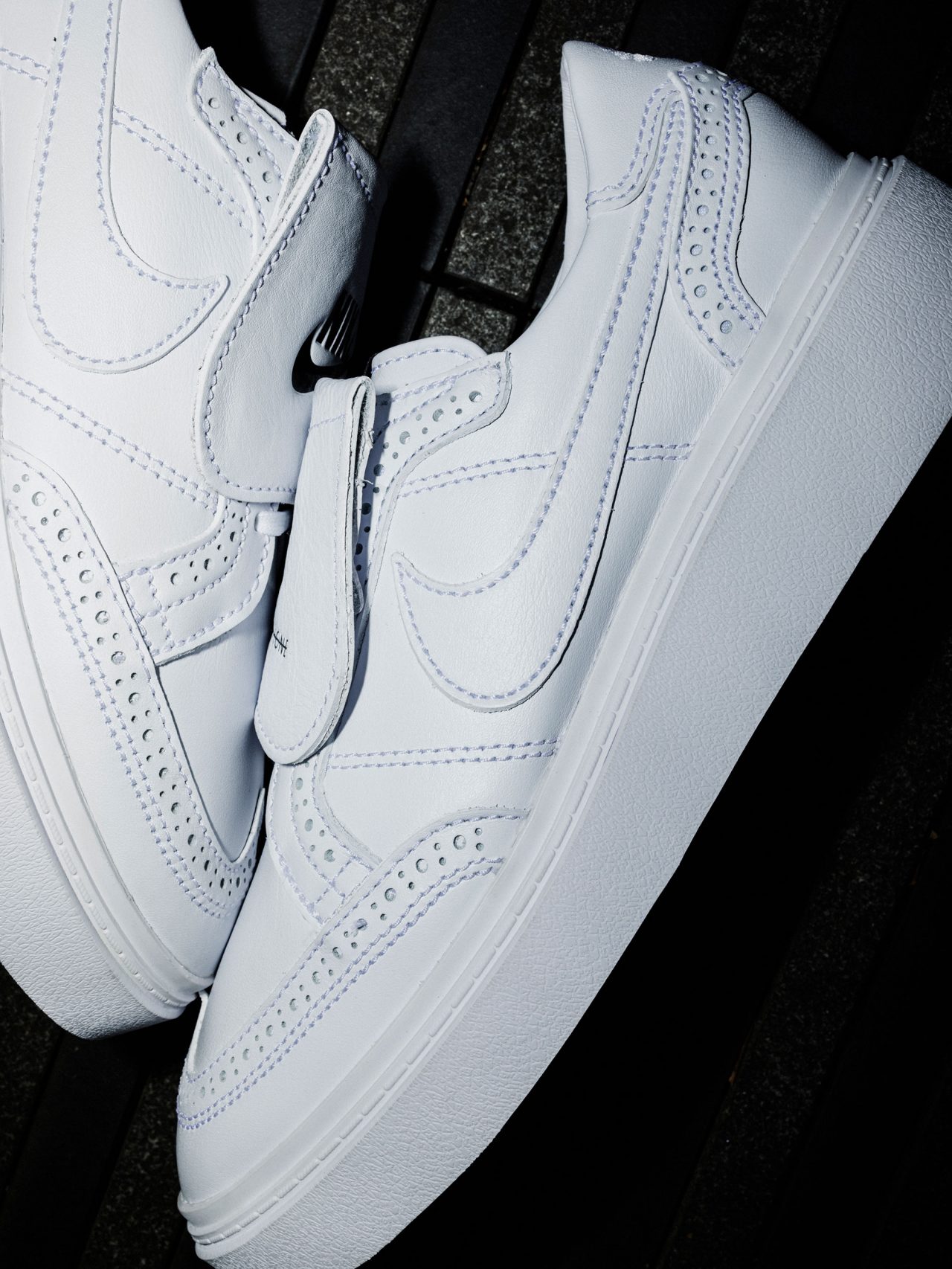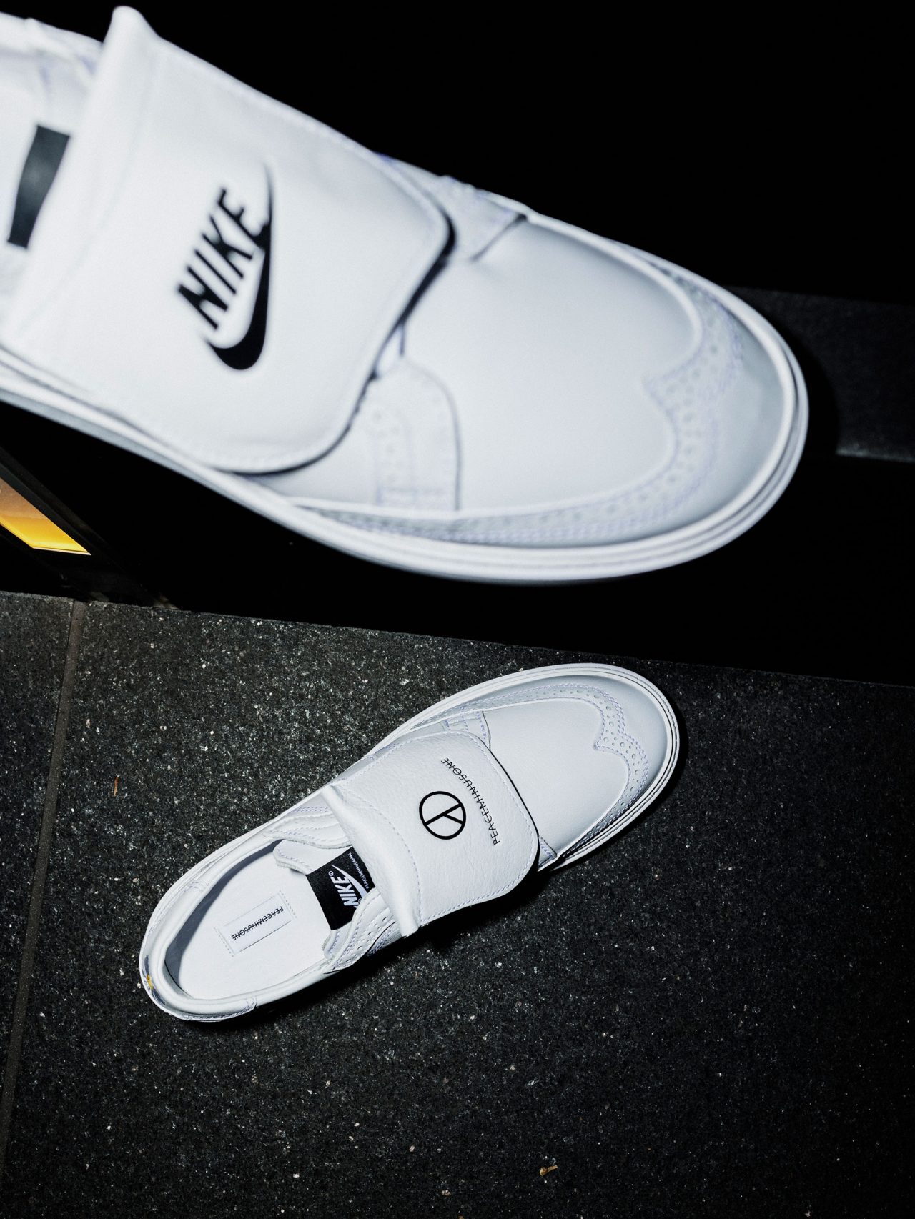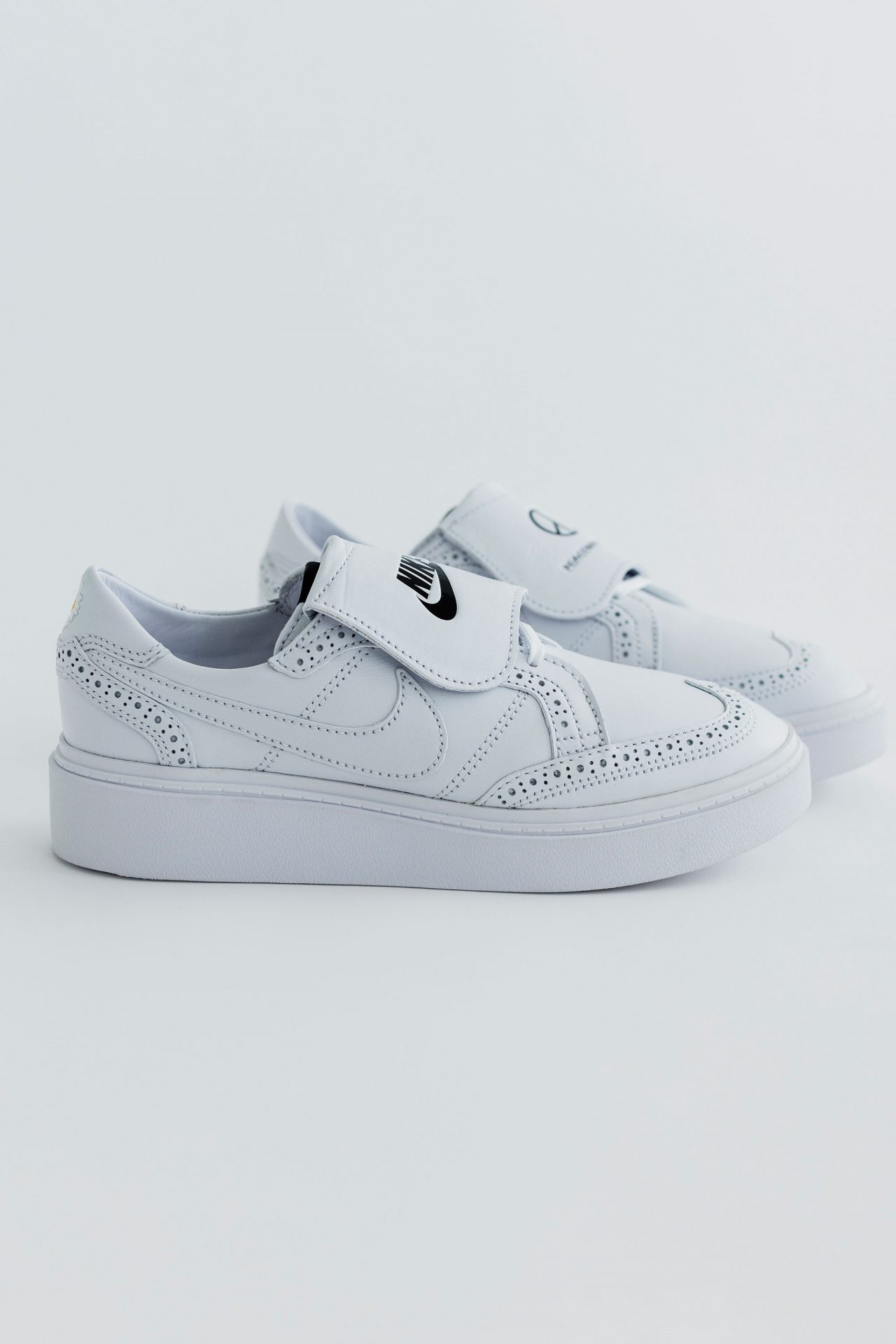 Nike と G-DRAGON が再びタッグを組んで生み出した 「ナイキ クウォンド 1」。サッカーシューズ 「ナイキ ティエンポ フットボール スパイク」 と、クラシックなゴルフシューズから着想を得たというレザーアッパーに、スタイリッシュなウイングチップ、取り外し可能なシュータン フラップを掛け合わせたスタイルが、G-DRAGON らしい既成概念に捉われないスタイルを体現する。オールホワイトでまとめることで、どんなスタイルにも対応する汎用性の高い1足に仕上げた。