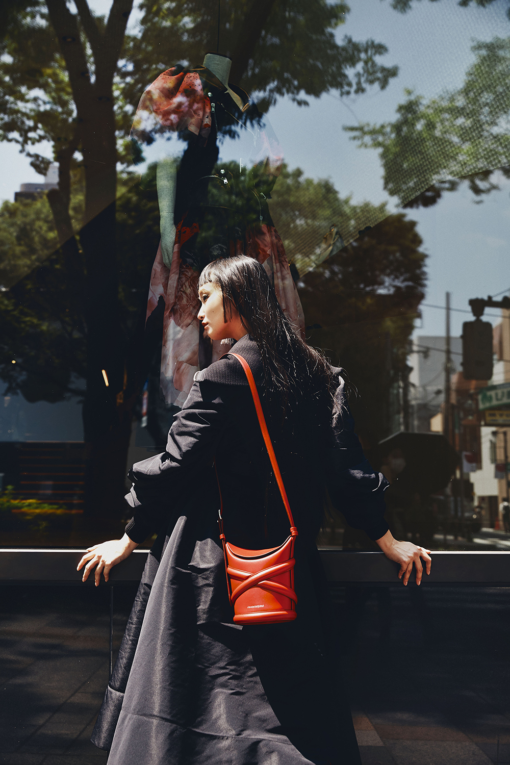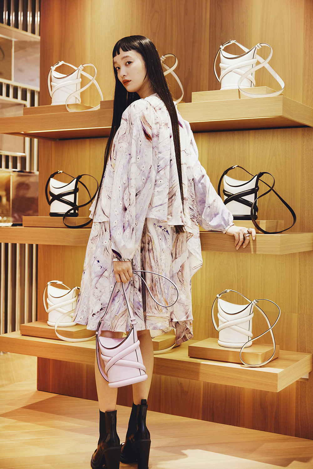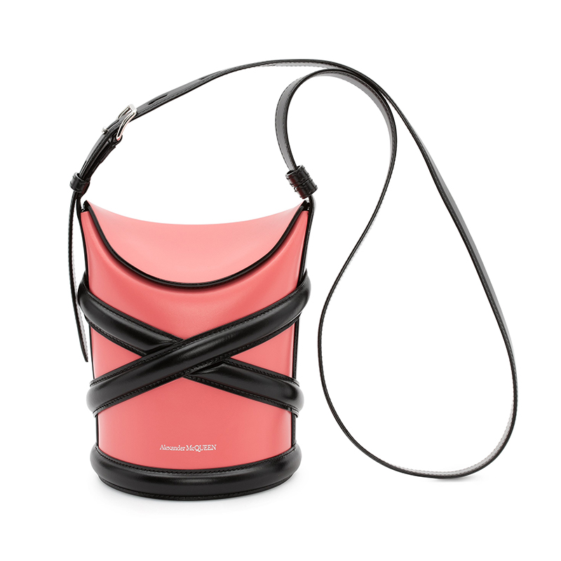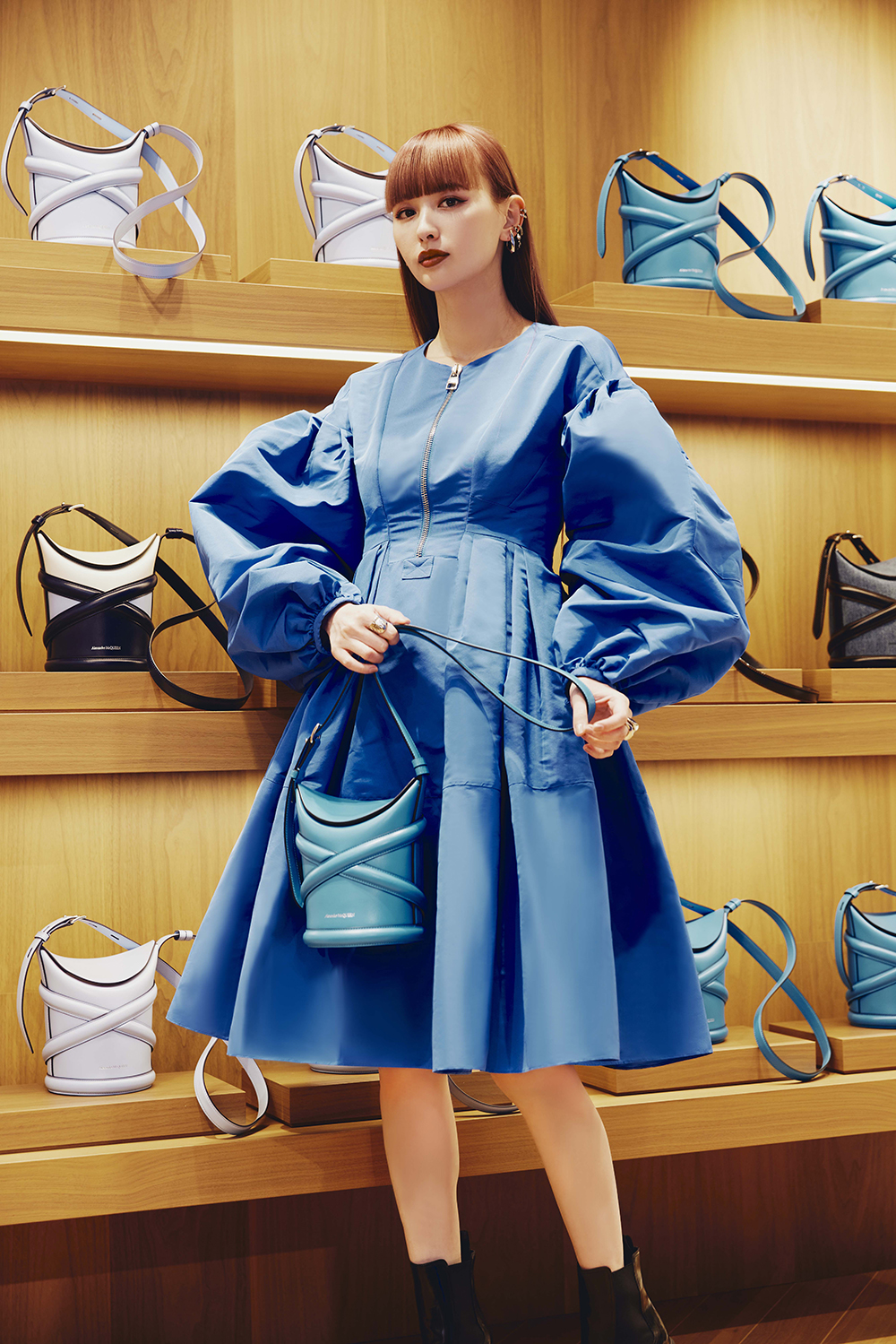 Alexander McQueen のアイコンバッグ 「カーブ」 は、ハーネスのディテールと力強くモダンなデザインが特徴。今回のポップアップストアでは定番カラーに加え、会場限定の3色が登場。新シーズンのカラーや、新しいサイズの「カーブ ミニ」など、いずれもタイムレスなデザインが魅力だ。