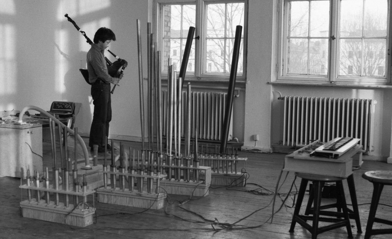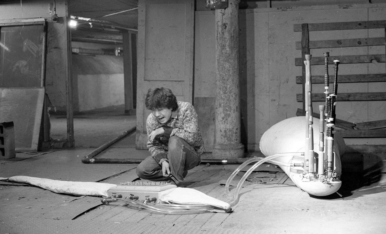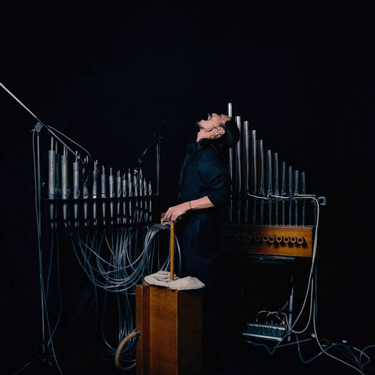 ヨシ・ワダは、1943年京都市生まれのアーティスト。京都市立美術大学(現・京都市立芸術大学)で彫刻を学んだ後、1967年に渡米。George Maciunas (ジョージ・マチューナス) との偶然の出会いから Fluxus (フルクサス) のコミュニティに参加し、活動を開始。70 年代初頭、歴史的なミニマル作曲家である La Monte Young (ラ・モンテ・ヤング) やインド古典声楽の師範である Pandit Pran Nath (パンディット・プラン・ナート) などに師事。一方、配管パイプにマウスピースをつけたパイプホルンをはじめとする楽器創作やそれらを用いた作曲に着手し、作曲と楽器創作の両輪で活動を展開。5メートルを超えるアースホルンと呼ばれる低音持続音発生機や改造バグパイプ、自作のパイプオルガンなどを用いたドローン音楽の作品は、コンサートとして発表されながらも、長時間演奏し続けることで時間の感覚を変調させていく実験的要素を含んだインスタレーションの側面も。