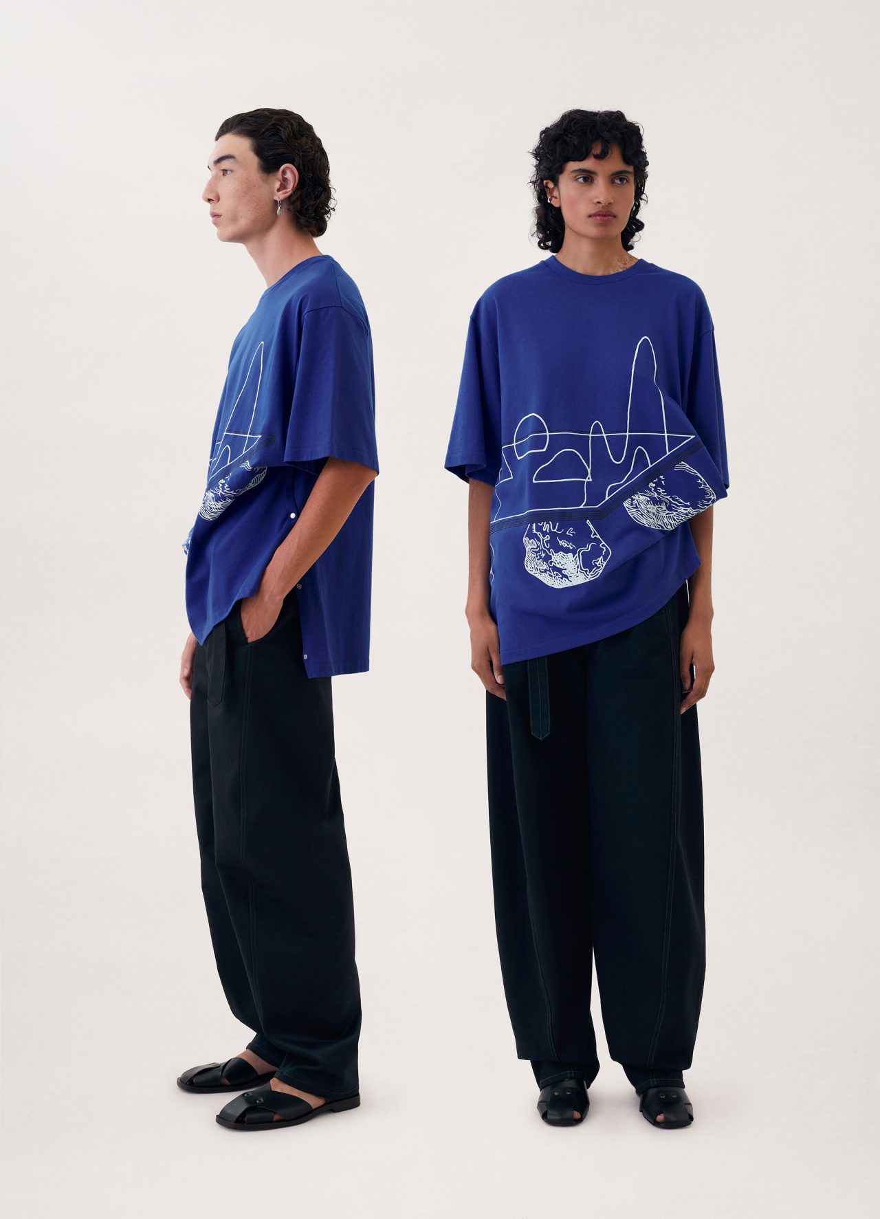 Tomaga の最新アルバム 「Intimate Immensity (インティメイト イメンシティ)」 のオーガニックなカバーアートにインスピレーションを得た、エクスクルーシブなTシャツをリリース。LEMAIRE は、ブランドの設立当初から音楽とのつながりを大切にしており、ここ数年はカルトバンドや米国レーベル Stones Throw Records (ストーンズ・スロウ・レコーズ) など、さまざまなアーティストとの独占コラボレーションを実現してきた。 今回の Tomaga とのコラボレーションで、LEMAIRE はそのつながりをさらに深めている。アートワークは、映画監督 Derek Jarman (デレク・ジャーマン) の1993年の映画 「BLUE」 に見られる美的な均一性と無限の青、そして Gaston Bachelard (ガストン・バシュラール) の作品や、特に彼の著書 「空間の詩学」 から引用されており、必要な親密さ、そして世界からの避難場所としての、殻という概念の探求を表現。また、フランスのDJ Pilooski (ピルースキ) が録音、制作した Tomaga のドラマーでパーカッショニストである、 Valentina Magaletti (ヴァレンティーナ・マガレッティ) のエクスクルーシブなポッドキャストを LEMAIRE の Spotify で聴くことができる。こちらも合わせてチェック。