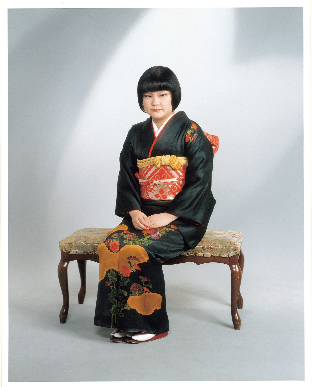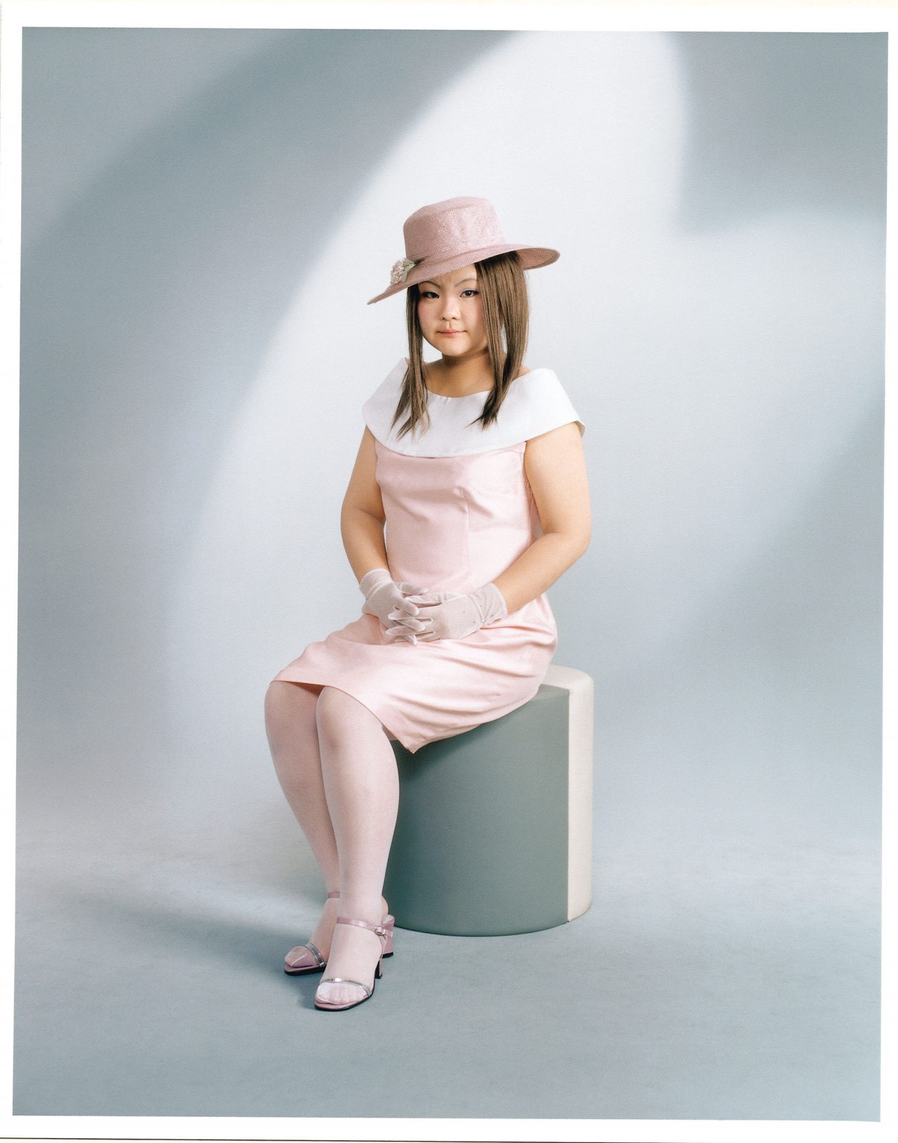 神戸市出身の澤田知子の写真作品 『OMIAI♡』(2001) は衣装、かつら、化粧、体重を増やすなどによって、30 人の異なるキャラクターに変身。これらのポートレート写真は、家族が我が子の写真を交換し、その子にふさわしい相手を見つけようとする、日本のお見合いという習慣や初顔合わせの際の写真を再現したという。