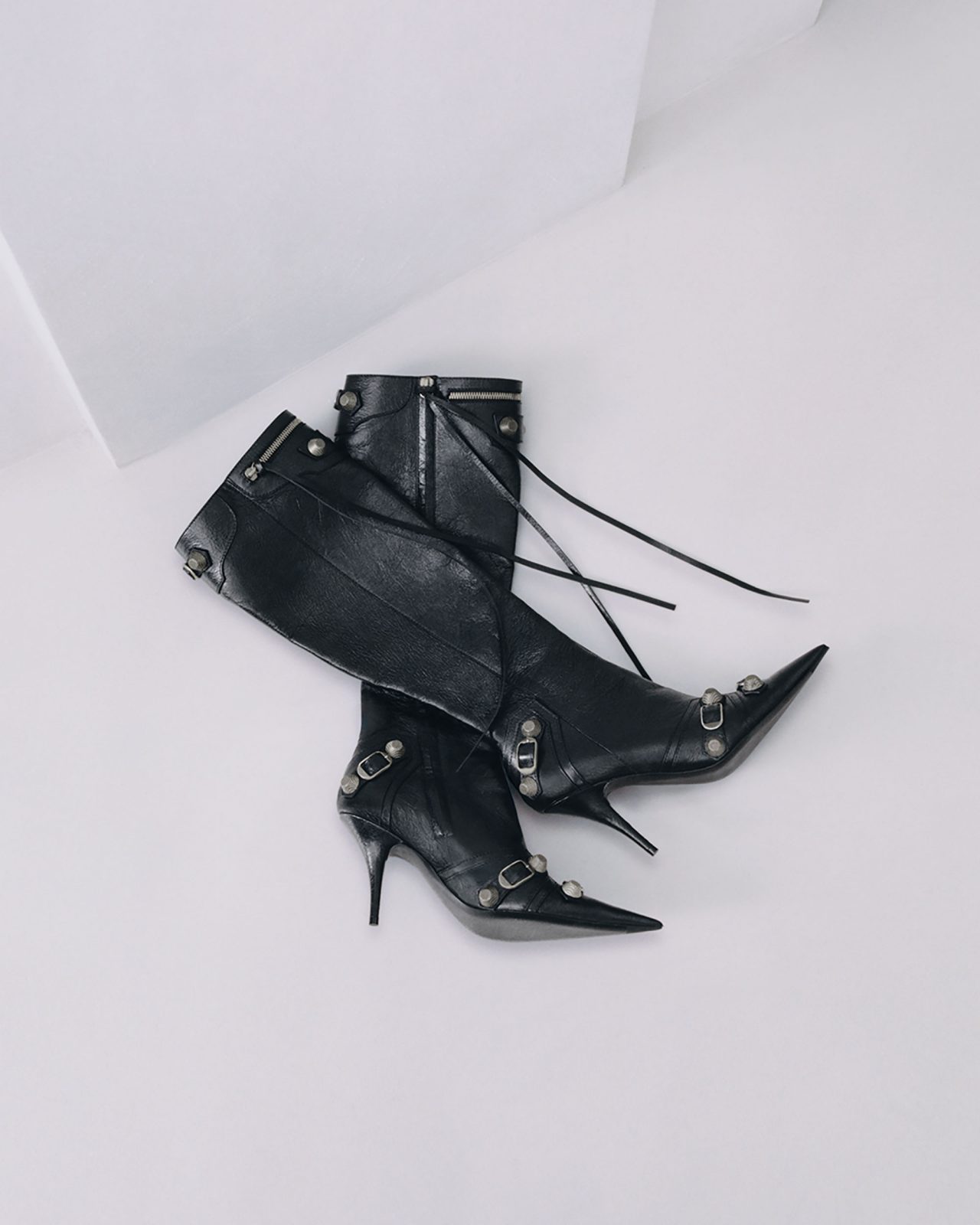 台形のアイコニックな 「Hourglass」 バッグのスタイリングやミニマムな印象の 「Le Cagole」 バッグ、今ではお馴染みのダッドシューズのトレンドを作り出した 「Triple S」 やハイテクスニーカーの 「Track」、 チャンキーソールが目を引く 「Defender」 スニーカーなどラインナップが豊富だ。新作のクラシックアイテムとして、ショッピングバスケットのようなデザインの 「Bistro」 やコットンキャンバスとカーフスキンの組み合わせで大容量の 「Jumbo」 トートバッグ、太めのフレームが非常にシックな 「Wrap」 サングラスが登場する。本キャンペーンはパリ中心部にある Théâtre de la Ville (パリ市立劇場) から始まり世界中の有名なファサードに大規模に展開されていく予定だ。