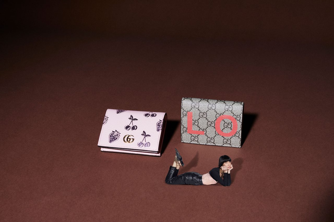 ZINE内に登場するポップなアイテムの数々は、クリエイティブ・ディレクター Alessandro Michele による、バレンタインに向けてデザインされたスペシャルコレクションのもの。「LOVE」とプリントされたハート型チェーンストラップバッグや、ポップコーンカップを思い出させるフォルムのバッグなど、愛をテーマにデザインされた遊び心溢れるアイテムが、Ariana の作品をより一層盛り上げる。