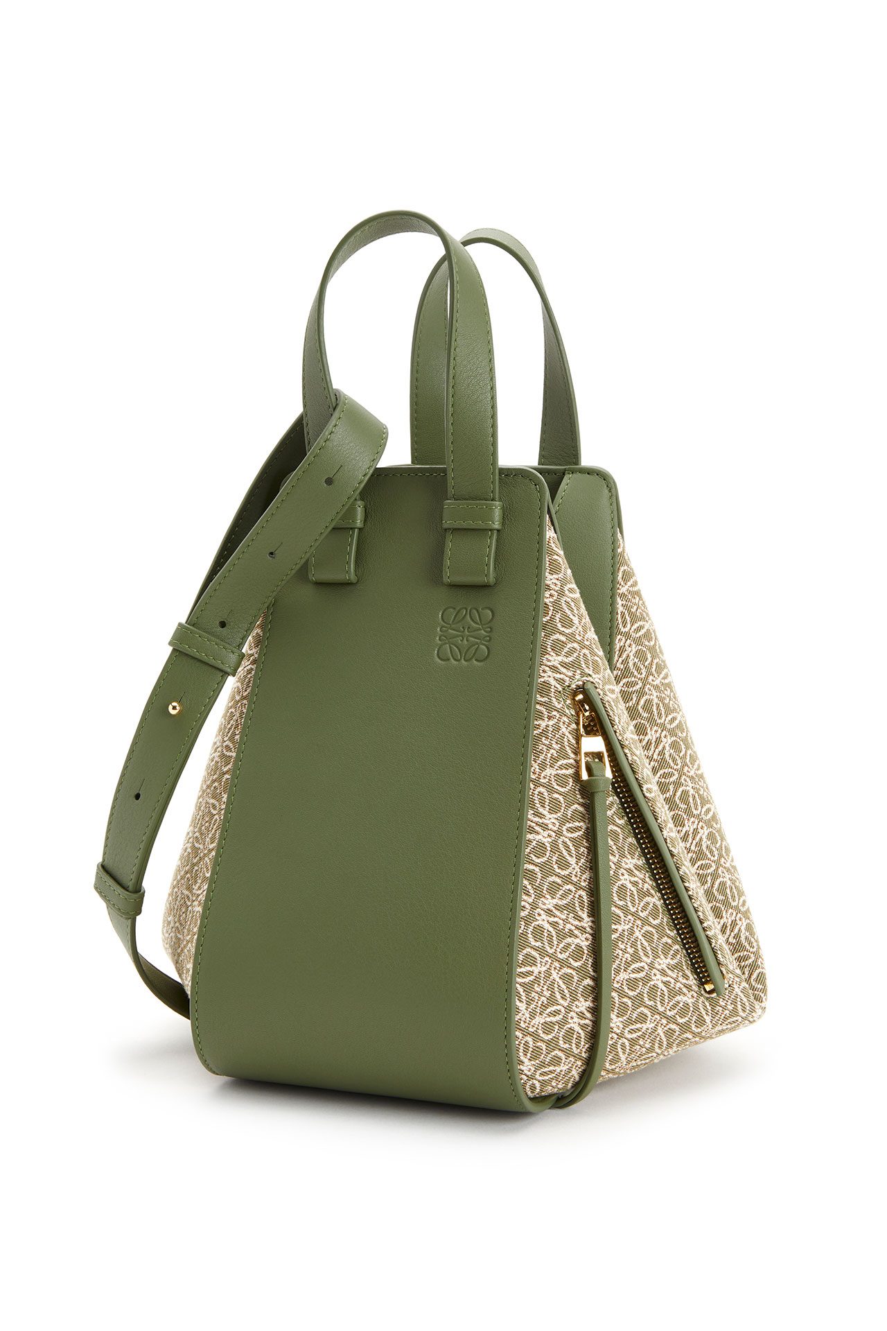 また、同じくハンモックシリーズのハンモックスモールには、新たな配色 「グリーン アボカドグリーン」と「ネイビー ブラック」が登場。 ロエベ・アナグラムが立体的に織り込まれたジャカードキャンバスとクラシックなカーフスキンレザーが融合したアナグラムジャガードの新たな 2 色が登場。